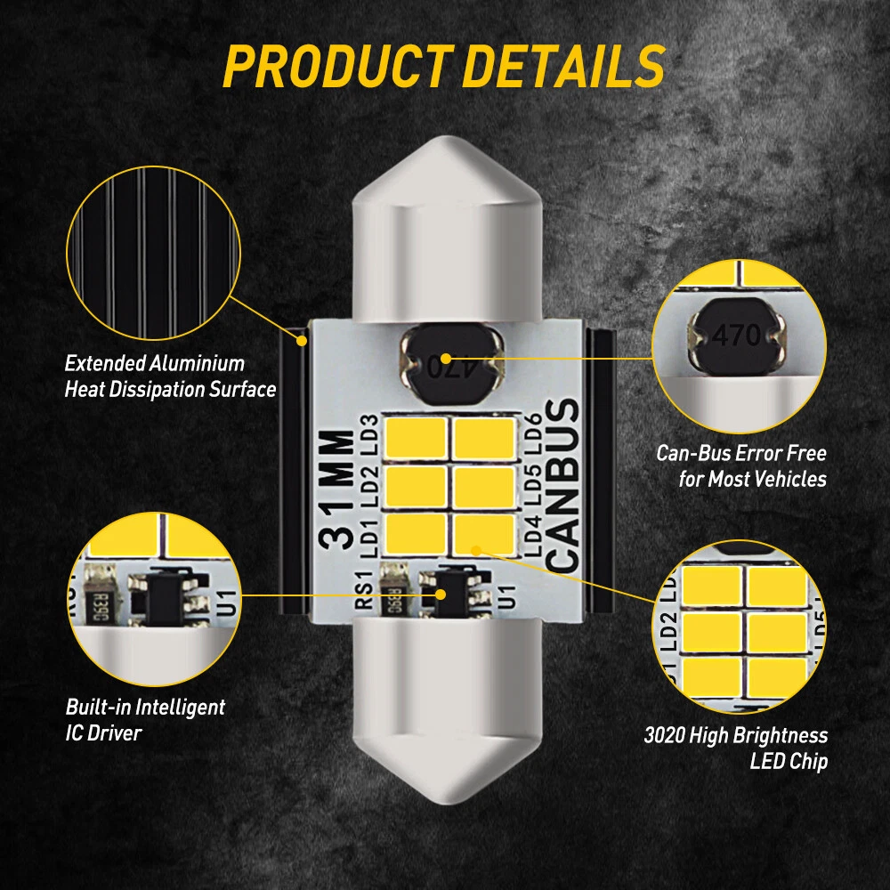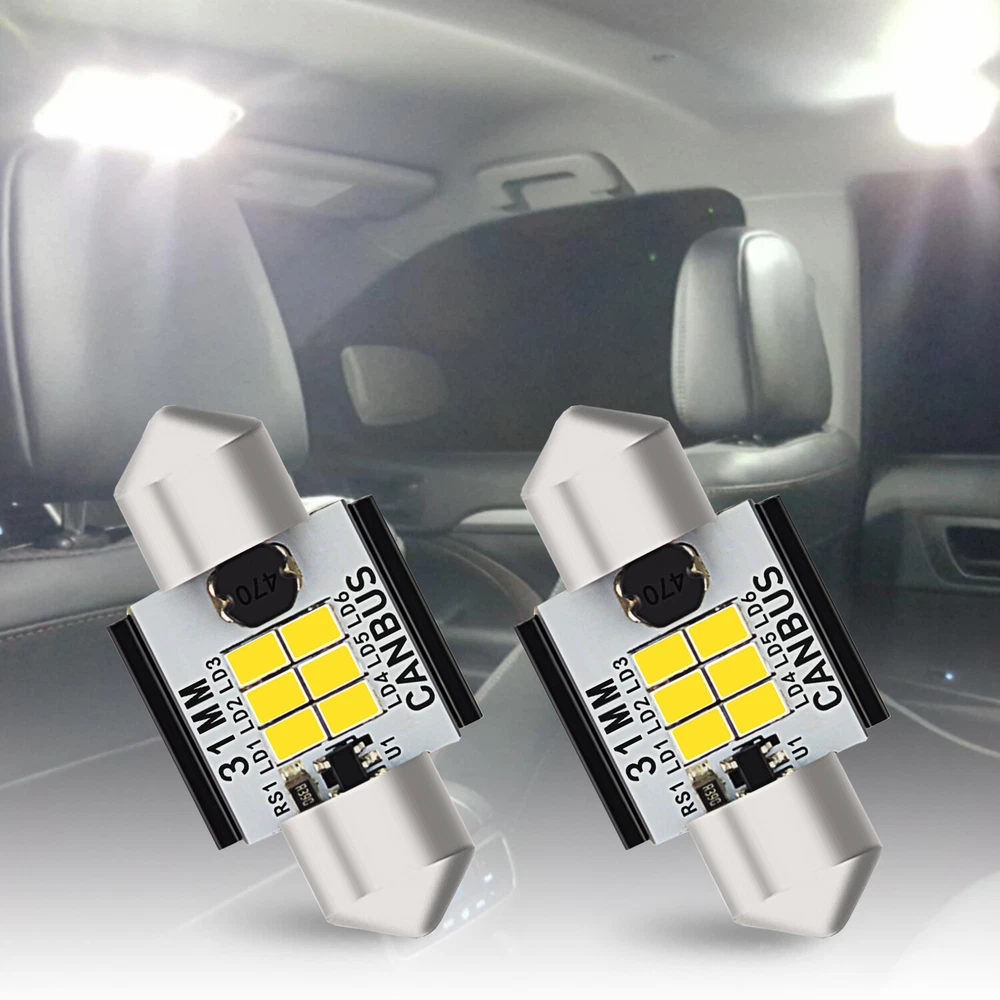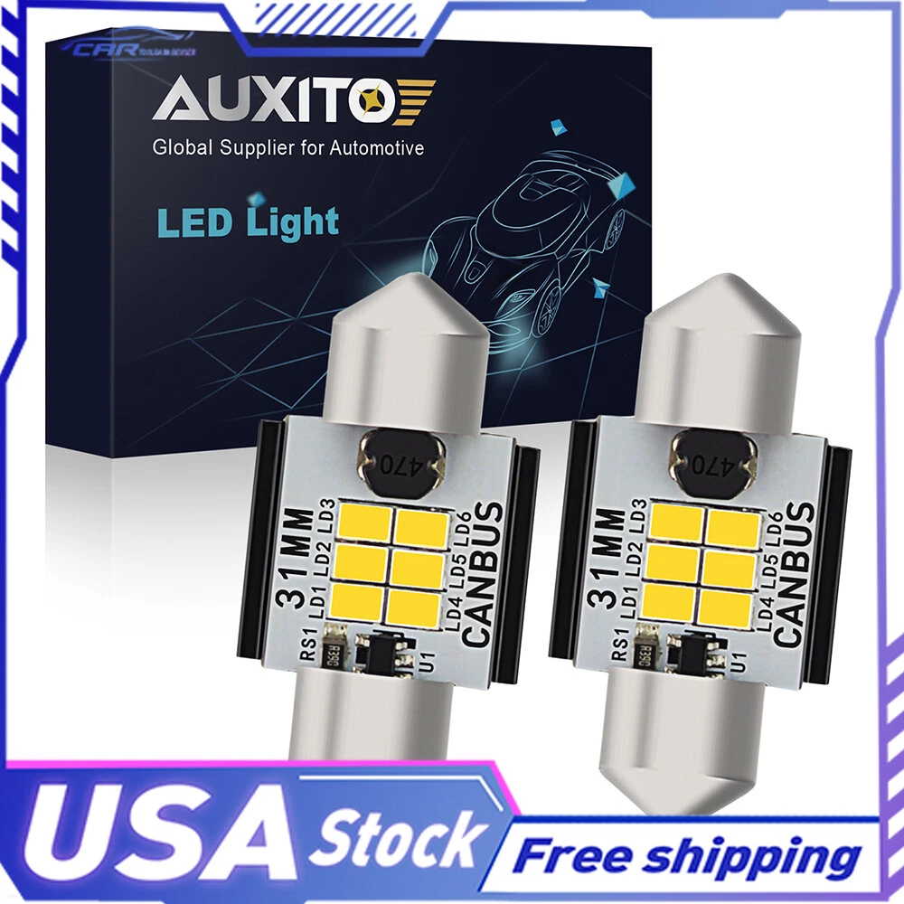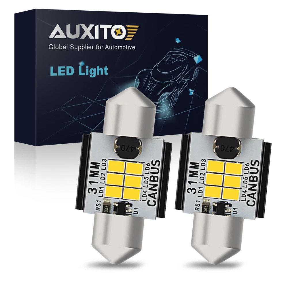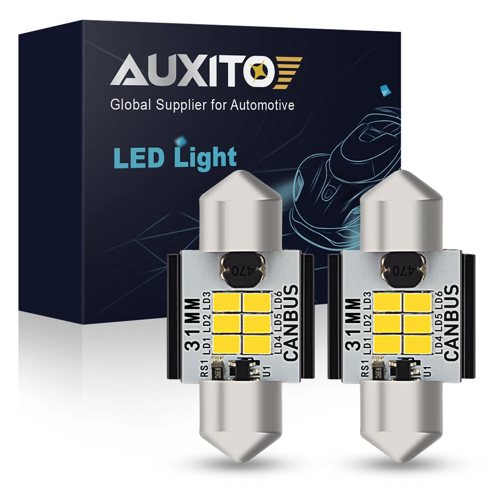 Brand: AUXITO UPC: Does not apply Purpose: Entry Lighting Wattage: 3W To Fit: Courtesy/Dome/Glove Box/Map/Trunk Light Ballast Included: Yes Bulb Fitment Code: 31MM Color Temperature: 6000K Manufacturer Warranty: 1 Year Bulb Type: Festoon Technology: LED Voltage: 9V-16V gtin13: Does not apply Bundle Listing: Yes Manufacturer Part Number: Does Not Apply Number of Bulbs: 2 Fitment Type: Direct Replacement Festoon Bulb Type: 1.21" (31mm) Type: LED Interior Light Bulbs Placement on Vehicle: Interior Light, Front, Left, Right Color: White Light Color: Clear Lumens: 300LM/set