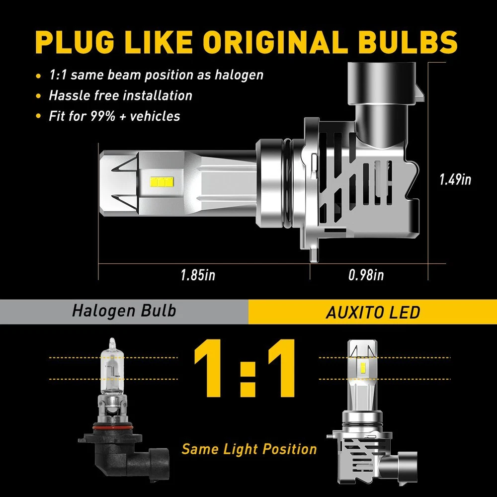 The compatible vehicle lists is only partial lists,no fully included due o Ebay listing compatible vehicles limitation. IF your car plug is 9006 HB4,the item is fit your car This item is included 2pcs of extremely bright high power ZES 6500K xenon white Hi/Lo Beams LED headlight bulbs, mini design,direclty plug and play for most vehicles, 12000 lumens per bulb, total 24000 lumens for both sides, especially designed for replacing the headlamp, HEADLIGHT Specification AUXITO 9006 HB4 LED Headlight Kit 12000LM Light Bulbs 6500K Super White Lamp M3 The compatible vehicle lists is only partial lists,no fully included due o Ebay listing compatible vehicles limitation. IF your car plug is 9006 HB4 ,the item is fit your car This item is included 2pcs of extremely bright high power ZES 6500K xenon white Hi/Lo Beams LED headlight bulbs, mini design,direclty plug and play for most vehicles, 12000 lumens per bulb, total 24000 lumens for both sides, especially designed for replacing the headlamp, HEADLIGHT Specification LED Chip: ZES USA High Powered Light Source Warranty : 3 Year guaranteed for manufacturer quality. Color : 6500K xenon white. Waterproof: Yes, IP65. CANBUS ERROR FREE: No. For most vehicles, just directly plug and play. Yet for some vehicles with CAN-BUS system, it may require install decoder or load resistor to avoid hyper flash or fast blinking. Cross Reference Number : 9006 HB4 Voltage : 12V~24V for car truck, built in IC driver,much stable current than normal led bulbs in the marker, longer life span. Perfect replacement for the halogen and incandescent headlamp, Easy installation about taking about 20 minutes according to the installation manual included. Please Note: Please check your car manual or original bulb to confirm the bulb size, length is correct or not before purchasing to save your time. Application : replacement for led headlight Package including one set (2pcs) 9006 HB4 super bright white LED headlights. ABOUT US AUXITO 9006 HB4 LED Headlight Kit 12000LM Light Bulbs 6500K Super White Lamp M3 The compatible vehicle lists is only partial lists,no fully included due o Ebay listing compatible vehicles limitation. IF your car plug is 9006 HB4 ,the item is fit your car This item is included 2pcs of extremely bright high power ZES 6500K xenon white Hi/Lo Beams LED headlight bulbs, mini design,direclty plug and play for most vehicles, 12000 lumens per bulb, total 24000 lumens for both sides, especially designed for replacing the headlamp, HEADLIGHT Specification LED Chip: ZES USA High Powered Light Source Warranty : 3 Year guaranteed for manufacturer quality. Color : 6500K xenon white. Waterproof: Yes, IP65. CANBUS ERROR FREE: No. For most vehicles, just directly plug and play. Yet for some vehicles with CAN-BUS system, it may require install decoder or load resistor to avoid hyper flash or fast blinking. Cross Reference Number : 9006 HB4 Voltage : 12V~24V for car truck, built in IC driver,much stable current than normal led bulbs in the marker, longer life span. Perfect replacement for the halogen and incandescent headlamp, Easy installation about taking about 20 minutes according to the installation manual included. Please Note: Please check your car manual or original bulb to confirm the bulb size, length is correct or not before purchasing to save your time. Application : replacement for led headlight Package including one set (2pcs) 9006 HB4 super bright white LED headlights. FAQ Shipping Returns Contact Us Payment Why swith to LED? LEDs not only give your vehicle a clean, modern look but, with proper use, will outlast any halogen bulb and HID bulb! Low energy draw, high lumen output, and instant on/off LED technology out shines stock bulbs in every way. Which bulbs are used in my vehicle? Check Sylvania automotive lamp replacemnt guide , you can select the year, make, and model of your vehicle, then select the application you want to replace or upgrade from stock. What does CAN Bus mean? CAN Bus means Controller Area Network Bus. This system monitors your vehicle and reports operating conditions. CAN Bus systems are commonly found in European vehicles such as BMW, Audi, Mercedes, Volkswagen, Porsche, and in many American vehicles. While most late model American vehicles have CAN Bus systems, it is always good to check with your vehicle dealer to see which system your vehicle has before purchasing electrical products. When do you need Warning Canceller? Some vehicles with cmplex internal computers(such as Audi,BMW,Jaguar,Mercedes,etc.) might report on-dash errors or flickering on the headlights. The warning canceller fixes the dashboard warning and flickering effect. Bulb Out Dashboard Error: On some vehicles, the dashboard will report as if you have a headlight bulb missing or burnt. It does not affect the headlights functioning, but the light on-dash will be on. The warning canceller fixes the issue. Flickering Issue: This happens when your vehicle does not recognize the new headlights installed. When turning the headlights on, the vehicle's computer does not understand the signal back from the headlights hence thinking they are still off. This triggers the headlight flickering effect. The warning canceller solves this issue. LED Advantages: Very low and efficient energy consumption than halogen bulbs & HID Bulbs Compared with HID bulbs, LED bulbs Light up instantly, no warm up period Low voltage protection, high precision constant current driver chip Longer lifespan than HID and halogen bulbs Light can be controlled easily in color and intensity Easy to install a LED headlight conversion kit (1) We will ship your item(s) within 24 hours. (2) We ship this item to US only via USPS first class mail. It usually takes 3-6 working days to deliver. How Long Will It Take to Receive My Refund? If you have emailed us for a refund ,once we have approved it ,after 60 days your money will be refunded. The estimated time for the refund to appear in your account is based on the pa