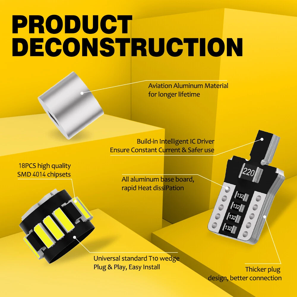 ABOUT THIS ITEM: The 4014 series is an extremely efficient SMD LED provides a very good color, the brightest LED chip on the market. Long-lasting, low energy doesn't zap you power supply, faster on/off response time, unique, vivid color, simple to fit. AUXITO 921 912 LED Reverse Backup Light Bulb 190LM 6500K Super Bright T10 2Pc S ABOUT THIS ITEM: The 4014 series is an extremely efficient SMD LED provides a very good color, the brightest LED chip on the market. Long-lasting, low energy doesn't zap you power supply, faster on/off response time, unique, vivid color, simple to fit. FEATURES: Brand New Package Content: 2x LED Light Bulbs(CANBUS) Bulb Size: T10 LED Type: 18led 4014SMD Beam Type: 360°Beam Angle Working Voltage: DC 9-14V Color Temperature: 6500K Output: 190 lumens each bulb Lifespan: 50000 working hours ,Adopt imported chips, stable quality, long service life Color: White Compatible with: W5W 2825 194 147 152 158 159 161 168 175 184 192 193 259 280 285 447 464 555 558 585 655 656 657 1250 1251 1252 2450 2652 2921 2825 906 579 Application:Interior Door Light Bulb / side Marker Light Bulb rear / front Tail Light Bulb Inner / License Light Bulb / Glove Box Light Bulb Stepwell light bulb / Trunk or Cargo Area Light Bulb/ Dome Light Bulb Check Engine Light Bulb / Courtesy Light Bulb / Parking Light Bulb Center High Mount Stop Light /Dome Light Bulb / Map Light Bulb Door Mirror illumnination light bulb Advantage: Energy saving, environmental protection, Stable performance, through strict test, Use safer driving in the car For most cars, just Plug-n-Play,no ballast required. Yet for some European vehicles or new vehicles, load resistors maybe required to avoid the error code or blinking. When installing this bulb, please make sure to turn the car off, and key out. LED bulbs are very easy to install. You just have to plug it in the socket. (LED bulb has + AND -terminal. If it doesn't light up after inserting into the socket, all you need to do is insert it oppositely.) Note: Please double check owners manual or your original halogen bulbs to confirm the size before placing an order. Item Specifics Features CANbus Compatible Bulb Fitment Code T10 2825 194 158 168 192 198 164 W5W Manufacturer Warranty 2 Year Light Colour Cold White Colour Temperature 6500K OE/OEM Part Number AUXITOT10LED Voltage DC 12V 24V Fitment Type Direct Replacement Performance Part Yes Lighting Technology LED Reference OE/OEM Number AUXITO LED Suitable For Dome Light Headlight Parking Light Lumens 190 lm To Fit License Plate Light Bulb, Side Marker Light Bulb,Backup Light Universal Fitment Yes UPC 782890730174 Model AUXITO LED Color Temperature 6500K Light Color White,Clear Number of Bulbs 2 Placement on Vehicle Interior, Front, Rear, Left, Right Wattage 2.4 W Classic Car Part Yes Manufacturer Part Number AUXITO18HT10 Brand AUXITO Technology Canbus Light Bulb Life Hours Up to 50,000 Hours Type Map Light,Interior Light,Door Trunk or Cargo Area Light Type Map Light,Interior Light,Door Trunk or Cargo Area Light FAQ ♥ If you have a decoding problem or any other problems, please contact us first, we will help you with it. We will reply you within 24 hours in working days. I'm a new seller, thanks a lot for your trust and convince! I will serve you with all my heart. ♥ Q1: Will this bulb fit my vehicle? A: We can match almost any vehicle to one of our bulb sizes. eBay only lets us include some vehicle fitments per listing, but if your vehicle does not show up on the compatibility table at the top of our listings, welcome you to contact us for free consulation before purchasing a product. Q2: My item has not arrived, what's taking so long? A: Sometimes items take longer than expected, especially if it’s going far or to rural area. Check with your post office to see if your item has been held up. Sometimes Royal Mail will not update a tracking number until it has arrived at its destination. If your item still don't arrive after a few days, let us know so we can double check for you and help solve it asap. Q3: My bulbs won't fit, help! A: Special bulb holder may be required. See if you can take the holder from the stock bulb. If not, let us know. The bulb size may be wrong, double check the item you received with the item you ordered. Do you have an aftermarket lighting housing? These may not be perfectly fitted for aftermarket bulbs and will require some manual modifications. Q4: Neither side lighting up? Both sides flicker, hyper flash, or work inconsistantly. A:Check the light fuses, and then check the ballast plugs to insure correct installation. If this doesn't work, there may be a voltage problem with the vehicle. You probably just need a relay or capacitor. Even though some bulbs are builtin resistors, they may still need a decoder. Payment (1). We gladly accepts payment via PayPal, We will ship your item(s) within 24 hours. (2). Before payment, please keep the consistency of Paypal address and ebay address. (3). Quantity orders are welcome! Returns (1). We offer 60 days free return policy. Please contact us within 60 days from the date you receive your order if you have any issues with the product or want return. Refund will be send after we got your resend package. (2). All returned items should be in the original packaging , return tracking information should be provided . Contact us (1).Negative feedback will not help resolve any problems you have, please contact us via eBay messages before leaving negative feedback , our customer service will make best effort to help you with the issues. (2).We maintain high standards of excellenceand strive for 100% customer satisfaction! Feedback is very important to us. We request that you contact us immediately before you give us neutral or negative feedback, so that we can satisfactorily address your concerns. About us We're professional in car and motorcycle accessories, especially in LED bulbs. We have our own factory and R&D team. Our belief is to sell top quality