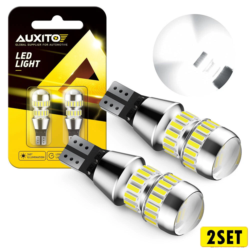 The compatible vehicle lists is only partial lists,no fully included due o Ebay listing compatible vehicles limitation. IF your car plug is T15/T16/W16W/912/921??the item is fit your car Cross Reference:T15,w16w,904 904LL 904NA 906 906LL 906NA 912 912LL 916 916LL 916NA 916NALL 917 917LL 920 920LL 921 921ST 921LL 921K 922,etc. This item is included PAIR of 912 T15 extremely bright 6000K white canbus error free high power LED bulbs,up to 2400LM especially designed for car back up reverse light,tail light, parking light,etc. Feature: Voltage: DC9V-12V Socket: T15,w16w 912 168 2825 194 921.etc. AUXITO 921/T15 W16W Reverse LED Backup Front Side Marker Light Combo Trunk US M The compatible vehicle lists is only partial lists,no fully included due o Ebay listing compatible vehicles limitation. IF your car plug is T15/T16/W16W/912/921 ??the item is fit your car Cross Reference: T15,w16w,904 904LL 904NA 906 906LL 906NA 912 912LL 916 916LL 916NA 916NALL 917 917LL 920 920LL 921 921ST 921LL 921K 922,etc. This item is included PAIR of 912 T15 extremely bright 6000K white canbus error free high power LED bulbs,up to 2400LM especially designed for car back up reverse light,tail light, parking light ,etc. Feature: Voltage: DC9V-12V Socket: T15,w16w 912 168 2825 194 921.etc. Color Temperature??6000K Super White LED Source: 42pcs 4014 SMD Light Source High Lumen: 2400LM SUPER BRIGHT. Color: HID white(6000k) Size: as photo showed. CANBUS: YES, ERROR FREE, Just plug & play Used for Vehicle backup reverse lights Package : 2X T15 4014 -SMD led lights. AUXITO 10x T10 White Light Specifications: AUXITO LED Light Bulb has specialized in LED lights for many years. Our mission is to produce high quality automotive LED light bulbs. We believe in our LEDs and offer warranty on item(s) confirm to be manufacturer defect. Socket:T10 194 168 192 2825 W5W Lamp beads: 2835SMD Input voltage: 12V-24V Product color temperature: 6000K. Product brightness: 240LM per light Life: 30,000 hours. Working environment: -40 °C ~ 105 °C Waterproof rating: IP65 Lifespan: 50000 working hours ,Adopt imported chips, stable quality, long service life Cross Reference: W5W 194 147 152 158 159 161 168 184 192 193 259 280 285 447 464 555 558 585 655 656 657 1250 1251 12522450 2652 2921 2825 906 579 Application: Interior Door Light Bulb / side Marker Light Bulb rear / front Tail Light Bulb Inner / License Light Bulb / Glove Box Light Bulb Stepwell light bulb / Trunk or Cargo Area Light Bulb/ Dome Light Bulb Check Engine Light Bulb / Courtesy Light Bulb / Parking Light Bulb Center High Mount Stop Light /Dome Light Bulb / Map Light Bulb Door Mirror illumnination light bulb Package Included: 10x LED Bulbs ABOUT US AUXITO 921/T15 W16W Reverse LED Backup Front Side Marker Light Combo Trunk US M The compatible vehicle lists is only partial lists,no fully included due o Ebay listing compatible vehicles limitation. IF your car plug is T15/T16/W16W/912/921 ??the item is fit your car Cross Reference: T15,w16w,904 904LL 904NA 906 906LL 906NA 912 912LL 916 916LL 916NA 916NALL 917 917LL 920 920LL 921 921ST 921LL 921K 922,etc. This item is included PAIR of 912 T15 extremely bright 6000K white canbus error free high power LED bulbs,up to 2400LM especially designed for car back up reverse light,tail light, parking light ,etc. Feature: Voltage: DC9V-12V Socket: T15,w16w 912 168 2825 194 921.etc. Color Temperature??6000K Super White LED Source: 42pcs 4014 SMD Light Source High Lumen: 2400LM SUPER BRIGHT. Color: HID white(6000k) Size: as photo showed. CANBUS: YES, ERROR FREE, Just plug & play Used for Vehicle backup reverse lights Package : 2X T15 4014 -SMD led lights. AUXITO 10x T10 White Light Specifications: AUXITO LED Light Bulb has specialized in LED lights for many years. Our mission is to produce high quality automotive LED light bulbs. We believe in our LEDs and offer warranty on item(s) confirm to be manufacturer defect. Socket:T10 194 168 192 2825 W5W Lamp beads: 2835SMD Input voltage: 12V-24V Product color temperature: 6000K. Product brightness: 240LM per light Life: 30,000 hours. Working environment: -40 °C ~ 105 °C Waterproof rating: IP65 Lifespan: 50000 working hours ,Adopt imported chips, stable quality, long service life Cross Reference: W5W 194 147 152 158 159 161 168 184 192 193 259 280 285 447 464 555 558 585 655 656 657 1250 1251 12522450 2652 2921 2825 906 579 Application: Interior Door Light Bulb / side Marker Light Bulb rear / front Tail Light Bulb Inner / License Light Bulb / Glove Box Light Bulb Stepwell light bulb / Trunk or Cargo Area Light Bulb/ Dome Light Bulb Check Engine Light Bulb / Courtesy Light Bulb / Parking Light Bulb Center High Mount Stop Light /Dome Light Bulb / Map Light Bulb Door Mirror illumnination light bulb Package Included: 10x LED Bulbs FAQ Shipping Returns Contact Us Payment Why swith to LED? LEDs not only give your vehicle a clean, modern look but, with proper use, will outlast any halogen bulb and HID bulb! Low energy draw, high lumen output, and instant on/off LED technology out shines stock bulbs in every way. Which bulbs are used in my vehicle? Check Sylvania automotive lamp replacemnt guide , you can select the year, make, and model of your vehicle, then select the application you want to replace or upgrade from stock. What does CAN Bus mean? CAN Bus means Controller Area Network Bus. This system monitors your vehicle and reports operating conditions. CAN Bus systems are commonly found in European vehicles such as BMW, Audi, Mercedes, Volkswagen, Porsche, and in many American vehicles. While most late model American vehicles have CAN Bus systems, it is always good to check with your vehicle dealer to see which system your vehicle has before purchasing electrical products. When do you need Warning Canceller? Some vehicles with cmplex internal computers(such as Audi,BMW,Jaguar,Mercedes,etc.) might report on-dash errors or flickering on the headlights. The warning canceller fixes the dashboard warning and fli