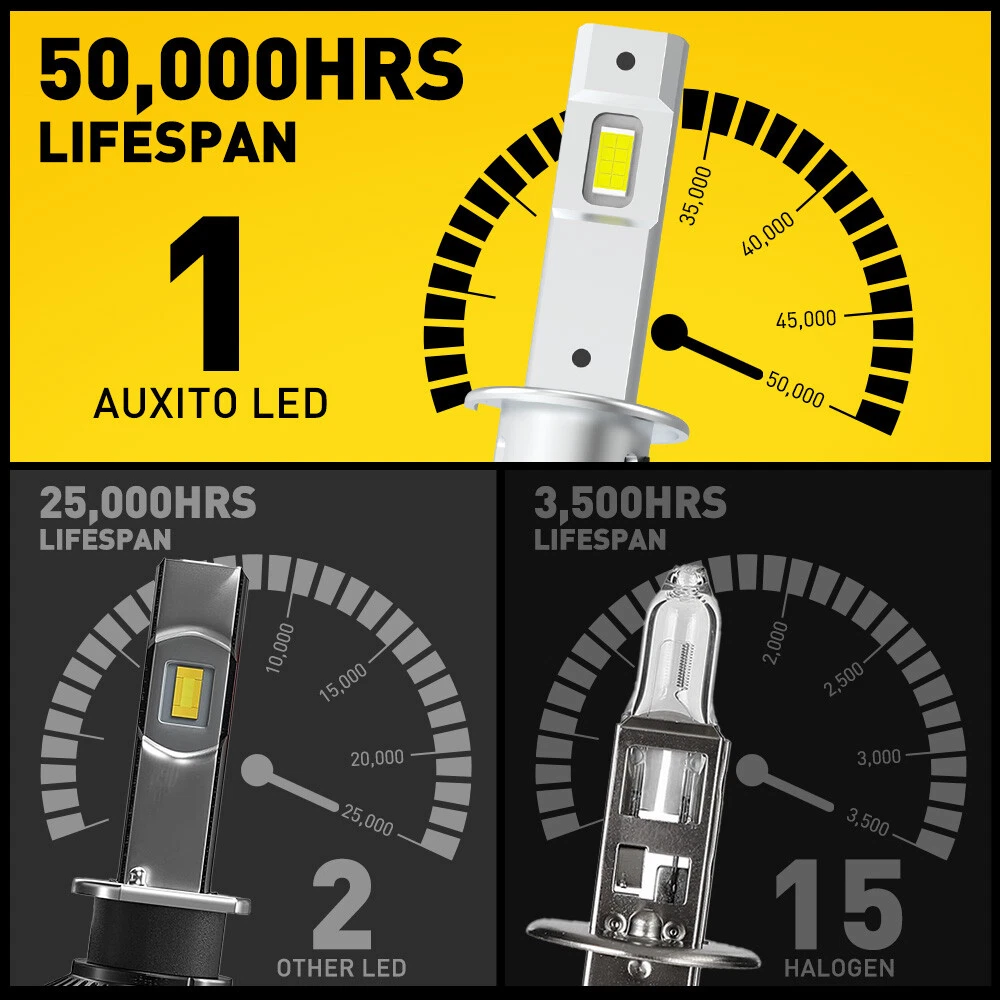 Specifications: Model: H1 Color: WHITE Lamp bead: LED Uses: only for car headlights (led headlight bulb) Lifespan: 50,000 hrs Features: *Small size 1:1 mini size as original halogen bulbs for higher compatibility and simple installation. *Superior light type The light distribution distance is 1mm, and the position of the luminescent point is the same as the original halogen lamp, which does not affect the sight of the incoming car. *High brightness AUXITO H1 White LED Headlight Kit High Low Beam Bulbs With Fan Bright 2Pcs USA Specifications: Model: H1 Color: WHITE Lamp bead: LED Uses: only for car headlights (led headlight bulb) Lifespan: 50,000 hrs Features: *Small size 1:1 mini size as original halogen bulbs for higher compatibility and simple installation. *Superior light type The light distribution distance is 1mm, and the position of the luminescent point is the same as the original halogen lamp, which does not affect the sight of the incoming car. *High brightness AUXITO LED headlight features a better performance on brightness, providing further and wider visibility for you to see the deer, wild animals, falling rocks, or other obstacles in advance to ensure safer driving at night. *Long service life LED headlight bulb efficiently speeds up heat dissipation to prevent bulbs from overheating to ensure superior performance, prolonging their lifespan up to 50,000 hours,freeing you from the trouble of frequent replacements. *Energy-saving Brighter light output with much less power consumption. *Simple installation Our LED headlight bulbs with compact size can make you install them in minutes. Other modifications are not required. Packaging include: LED Headlight Bulbs *2 Item Specifics Brand Unbranded Performance Part Yes Wattage 26 W Type Light Bulb Brand AUXITO Number of Bulbs 2 Placement on Vehicle Front Voltage 12 V~24V Color Temperature 6500K Lighting Technology LED Bulb Fitment Code H1 Bulb Life Hours Up to 50,000 Hours Light Color Cold White Manufacturer Warranty 2 Years Suitable For Headlight Features CANbus Compatible Lumens 8000 lm Model H1 Payment We can accept payment by credit, debit, and gift cards; Apple Pay, Google Pay, PayPal, and PayPal Credit. Shipping 1. All items will be shipped in 24 hours after receiving your payment . 2. We ship this item to US only via USPS first class mail. It usually takes 3-5 working days to deliver. Returns 1. We offer 60 days return policy. 2. Please contact us within 60 days from the date you receive your package if you have any questions with the products . 3. Refund will be sent after we got your returned package. 4. All returned items should be in the original packaging with tracking number. Contact Us We work from Monday - Saturday 9:00AM - 6:00PM PST, but we will reply you once we get your message .There will be some delay on response if you send message or E-Mail on Sunday. DESCRIPTION PAYMENT SHIPPING RETURN POLICY CONTACT US Hot item AUXITO 3157 3156 LED Flashing Brake Stop Stobe Tail Light Bulb Blinker Bulb 2F23 USD 12.91 AUXITO 3157 4157 Amber LED Turn Signal Side Marker Indicator Corner Light 2F23 USD 12.91 Help & Info Payment Policy Shipping Policy Return Policy FAQ About Us AUXITO H1 White LED Headlight Kit High Low Beam Bulbs With Fan Bright 2Pcs USA Specifications: Model: H1 Color: WHITE Lamp bead: LED Uses: only for car headlights (led headlight bulb) Lifespan: 50,000 hrs Features: *Small size 1:1 mini size as original halogen bulbs for higher compatibility and simple installation. *Superior light type The light distribution distance is 1mm, and the position of the luminescent point is the same as the original halogen lamp, which does not affect the sight of the incoming car. *High brightness AUXITO LED headlight features a better performance on brightness, providing further and wider visibility for you to see the deer, wild animals, falling rocks, or other obstacles in advance to ensure safer driving at night. *Long service life LED headlight bulb efficiently speeds up heat dissipation to prevent bulbs from overheating to ensure superior performance, prolonging their lifespan up to 50,000 hours,freeing you from the trouble of frequent replacements. *Energy-saving Brighter light output with much less power consumption. *Simple installation Our LED headlight bulbs with compact size can make you install them in minutes. Other modifications are not required. Packaging include: LED Headlight Bulbs *2 Payment Shipping Returns Contact Us We can accept payment by credit, debit, and gift cards; Apple Pay, Google Pay, PayPal, and PayPal Credit. 1. All items will be shipped in 24 hours after receiving your payment . 2. We ship this item to US only via USPS first class mail. It usually takes 3-5 working days to deliver. 1. We offer 60 days return policy. 2. Please contact us within 60 days from the date you receive your package if you have any questions with the products . 3. Refund will be sent after we got your returned package. 4. All returned items should be in the original packaging with tracking number. We work from Monday - Saturday 9:00AM - 6:00PM PST, but we will reply you once we get your message .There will be some delay on response if you send message or E-Mail on Sunday. All rights reserved. On Nov 12, 2024 at 14:07:48 PST, seller added the following information: