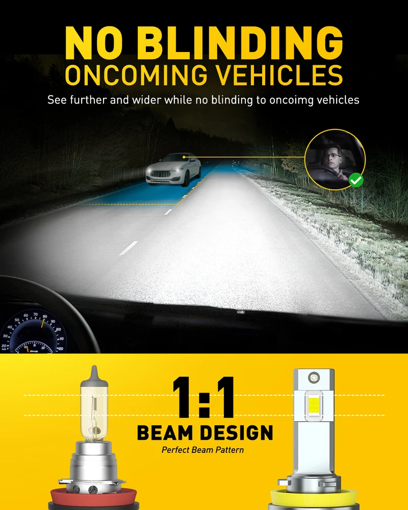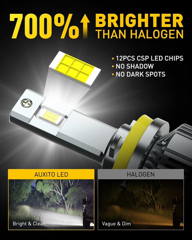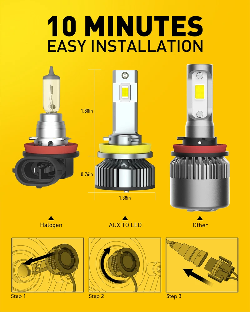 AUXITO H8 H9 H11 LED Headlight Bulb Kit Super White Bright Lamps Specifications: Model:H8 H9 H11 Voltage:DC12V-24V Current:Initial 4.3A, stable 3.32A Power: 100W Light type:LED Color: 6500k white Lumen:Initial 20000lm/Bulb,40000lm/Set Service life:50000h+ Working temperature:-40-80°C Features: *Simple installation 1:1 size with non-polar design for higher compatibility and simple installation perfectly fits into the headlight housing and factory plug without any modification. *Super high brightness AUXITO H11 LED Headlight Fog Bulb White Low Beam Conversion Kit 40000LM Bright M AUXITO H8 H9 H11 LED Headlight Bulb Kit Super White Bright Lamps Specifications: Model:H8 H9 H11 Voltage:DC12V-24V Current:Initial 4.3A, stable 3.32A Power: 100W Light type:LED Color: 6500k white Lumen:Initial 20000lm/Bulb,40000lm/Set Service life:50000h+ Working temperature:-40-80°C Features: *Simple installation 1:1 size with non-polar design for higher compatibility and simple installation perfectly fits into the headlight housing and factory plug without any modification. *Super high brightness AUXITO led headlight bulbs designed with 6 chips per side are 5 times brighter than stock bulbs. 6500K cold white improves visibility at night and helps you see more clearly even in extreme weather. *Long service life The LED bulbs are designed with full-body aluminum material, copper tube, and external drive for fast cooling and ensuring a lifespan of up to 50,000 hours. *Perfect beam pattern The light is more focused on the ground, and the irradiation range is wider and farther without dark areas , providing you with a more comfortable and safer driving environment. *Energy-saving Brighter light output with much less power consumption. Packaging include: LED Headlight Bulbs*2 ABOUT US AUXITO H11 LED Headlight Fog Bulb White Low Beam Conversion Kit 40000LM Bright M AUXITO H8 H9 H11 LED Headlight Bulb Kit Super White Bright Lamps Specifications: Model:H8 H9 H11 Voltage:DC12V-24V Current:Initial 4.3A, stable 3.32A Power: 100W Light type:LED Color: 6500k white Lumen:Initial 20000lm/Bulb,40000lm/Set Service life:50000h+ Working temperature:-40-80°C Features: *Simple installation 1:1 size with non-polar design for higher compatibility and simple installation perfectly fits into the headlight housing and factory plug without any modification. *Super high brightness AUXITO led headlight bulbs designed with 6 chips per side are 5 times brighter than stock bulbs. 6500K cold white improves visibility at night and helps you see more clearly even in extreme weather. *Long service life The LED bulbs are designed with full-body aluminum material, copper tube, and external drive for fast cooling and ensuring a lifespan of up to 50,000 hours. *Perfect beam pattern The light is more focused on the ground, and the irradiation range is wider and farther without dark areas , providing you with a more comfortable and safer driving environment. *Energy-saving Brighter light output with much less power consumption. Packaging include: LED Headlight Bulbs*2 FAQ Shipping Returns Contact Us Payment Why swith to LED? LEDs not only give your vehicle a clean, modern look but, with proper use, will outlast any halogen bulb and HID bulb! Low energy draw, high lumen output, and instant on/off LED technology out shines stock bulbs in every way. Which bulbs are used in my vehicle? Check Sylvania automotive lamp replacemnt guide , you can select the year, make, and model of your vehicle, then select the application you want to replace or upgrade from stock. What does CAN Bus mean? CAN Bus means Controller Area Network Bus. This system monitors your vehicle and reports operating conditions. CAN Bus systems are commonly found in European vehicles such as BMW, Audi, Mercedes, Volkswagen, Porsche, and in many American vehicles. While most late model American vehicles have CAN Bus systems, it is always good to check with your vehicle dealer to see which system your vehicle has before purchasing electrical products. When do you need Warning Canceller? Some vehicles with cmplex internal computers(such as Audi,BMW,Jaguar,Mercedes,etc.) might report on-dash errors or flickering on the headlights. The warning canceller fixes the dashboard warning and flickering effect. Bulb Out Dashboard Error: On some vehicles, the dashboard will report as if you have a headlight bulb missing or burnt. It does not affect the headlights functioning, but the light on-dash will be on. The warning canceller fixes the issue. Flickering Issue: This happens when your vehicle does not recognize the new headlights installed. When turning the headlights on, the vehicle's computer does not understand the signal back from the headlights hence thinking they are still off. This triggers the headlight flickering effect. The warning canceller solves this issue. LED Advantages: Very low and efficient energy consumption than halogen bulbs & HID Bulbs Compared with HID bulbs, LED bulbs Light up instantly, no warm up period Low voltage protection, high precision constant current driver chip Longer lifespan than HID and halogen bulbs Light can be controlled easily in color and intensity Easy to install a LED headlight conversion kit (1) We will ship your item(s) within 24 hours. (2) We ship this item to US only via USPS first class mail. It usually takes 3-6 working days to deliver. How Long Will It Take to Receive My Refund? If you have emailed us for a refund ,once we have approved it ,after 60 days your money will be refunded. The estimated time for the refund to appear in your account is based on the payment method you use. Paypal is the only supported in NIGHTEYE Store. Please notify us within 30 days after you've received your purchased item. All return requests must be submitted through your eBay account. NOTE: Buyers pay for the return shipping fee. Items to be returned must be in resalable condition, for example: You do not satisfy the item quality Item do not fit your vehicle perfect Ite