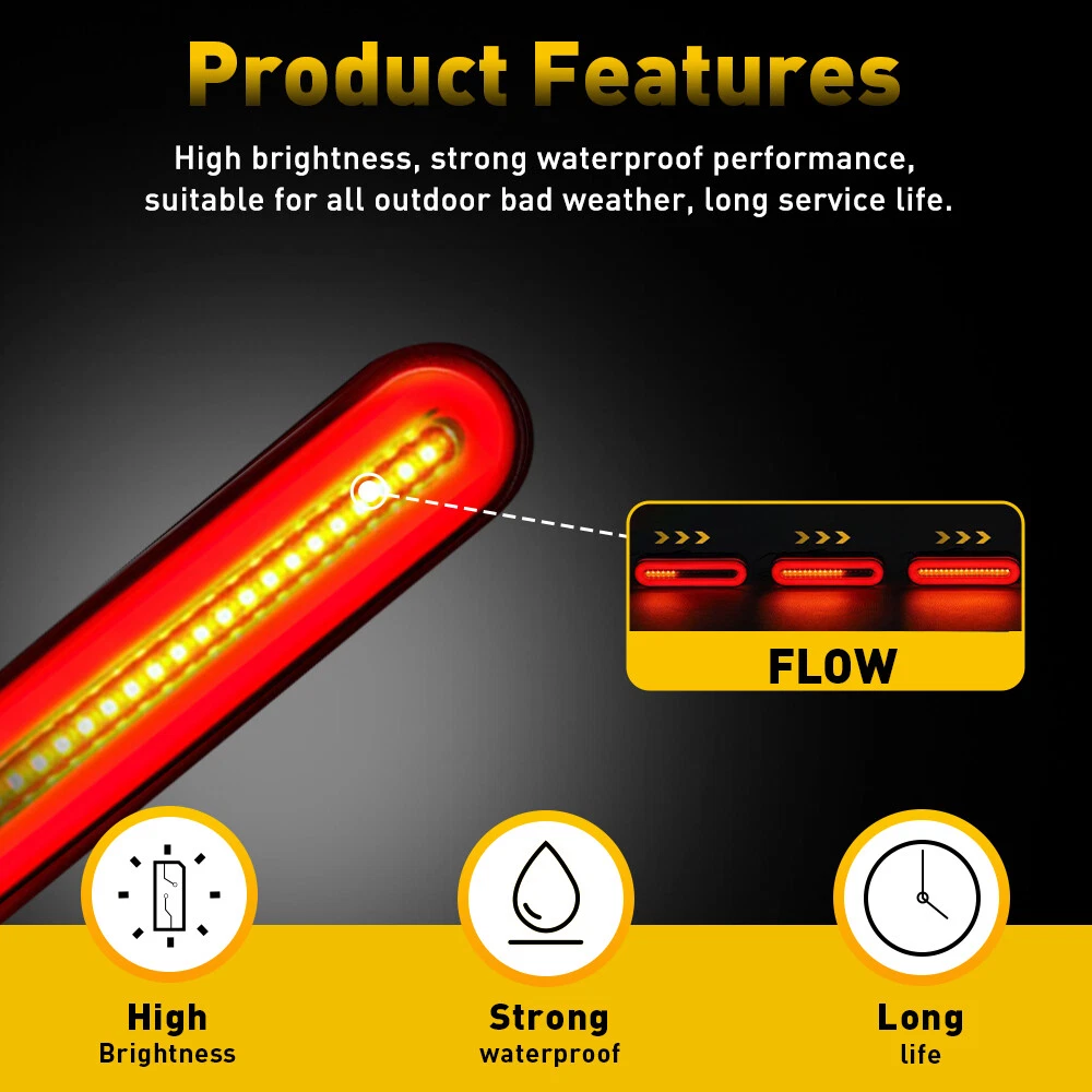Specification: Light color:red+amber Material: ABS+PC Lens color: smoked Material: ABS+PC Voltage:12V-24V Waterproof grade:IP67 Service life: 50000H+ Universal for: Trucks, trailers, tractors, semi-trailer, Dump Truck, bus, boat, special vehicle, and etc. Features: *High brightness: The tail light with high brightness ensures its strong waterproof function and long service life,it is suitable for all outdoor inclement weather. *Waterproof: The tail light is highly silicon sealed with an IP67 waterproof rating, which works even under extreme conditions such as rain and snow. *Easy to install: AUXITO LED Red Amber Truck Trailer Flowing Tail Stop Turn Brake Light Waterproof Specification: Light color:red+amber Material: ABS+PC Lens color: smoked Material: ABS+PC Voltage:12V-24V Waterproof grade:IP67 Service life: 50000H+ Universal for: Trucks, trailers, tractors, semi-trailer, Dump Truck, bus, boat, special vehicle, and etc. Features: *High brightness: The tail light with high brightness ensures its strong waterproof function and long service life,it is suitable for all outdoor inclement weather. *Waterproof: The tail light is highly silicon sealed with an IP67 waterproof rating, which works even under extreme conditions such as rain and snow. *Easy to install: Equipped with rubber ring and plug,drilling and hardwiring are not required. *Connection Black Wire: Negative Yellow Wire: Turn light (Flowing) Red Wire: DRL Light (With startup effect???/p> Blue Wire: Brake Light(With startup flashing effect???/p> *Functions Brake Light, Daytime Running Light, Side Marker Light, Side Repeater Light, Tail Light, Third Brake Light, Turn Signal Light. *Wide application: Fits for heavy duty trucks like Peterbilt, freightliner, international ,Kenworth, mack, and so on Note: Please check the detail information carefully before purchasing. Your satisfaction is our utmost concern, please feel free to contact us for any questions and concerns. Package Include: tail light*2 Item Specifics Interchange Part Number : For travel trailer, dump truck, special vehicle, etc Fit for : For Pickup,truck trailer,boat,Lorry,Van,caravan Certifications : DOT, SAE Lens Color : Smoke/Tinted Brand : AUXITO Bulb Type : LED Brake/ Turn Signal/ Daytime Running light Manufacturer Warranty : 2 Years Feature : Sequential, Waterproof, Shockproof, Low Power Consumption Application : Universal fit any Vehicles with DC 12V-24V Position : Stop Turn Tail Marker Clearance Light Lamp Waterproof : IP67 Manufacturer Part Number : WD-FLOW-YX Placement on Vehicle : Front, Rear, Left, Right, Upper, Lower Fitment Type : Direct Replacement Lighting Technology : LED Number of Bulbs : 2 Light Color : Red & Amber Type : Tail Light Assembly Voltage : 12 V Universal Fitment : Yes Suitable For : Daytime Running Light, Turn Signal Light, Brake Light Housing Color : Smoke Features : Road Legal Material : ABS Housing PC Lens Bulb Life Hours : Up to 50,000 Hours Payment (1) Instant PayPal payment is the preferred method of payment. (2) We also accept payment via PayPal, DebitCard, Visa, MasterCard, Discover. (3) We will only ship to the confirmed PayPal shipping address given with the payment. (4) If you want to ship to other address, please change your PayPal shipping address before you make payment. (5) To avoid initiating an unpaid item claim, please pay within 7 days. Shipping (1) We will ship your item(s) within 24 hours. (2) We ship this item to US usually via USPS first class mail. It usually takes 3-6 working days to deliver. Returns (1) We offer free return & money back guarantee. If you are not satisfied with your purchase for any reasons, you can return the item for refund or replacement/exchange. All returns must include the original packaging. (Please refer to our return policy for details.) (2) If you don't return goods within 60 days from date of purchase, your right to cancel will be revoked. Any items damaged because of incorrect installation will not be refunded. Please contact us for return or troubleshooting help prior to returning any products. (3) Unauthorized reselling of AUXITO products is strictly prohibited and we can't honor the warranty if purchasing from the unauthorized reseller. Contact Us [Our office hours are MONDAY - Saturday 9:00PM - 6:00PM PST, but we will response you once we get your message .There will be some delay on respons if you send message or E-Mail on Sundy.] (1).Negative feedback will not help resolve any problems you have, please contact us via eBay messages before leaving negative feedback, our customer service will make best effort to help you with the issues. (2).We maintain high standards of excellenceand strive for 100% customer satisfaction! Feedback is very important to us. We request that you contact us immediately BEFORE you give us neutral or negative feedback, so that we can satisfactorily address your concerns. FAQ Why swith to LED? LEDs not only give your vehicle a clean, modern look but, with proper use, will outlast any halogen bulb and HID bulb! Low energy draw, high lumen output, and instant on/off LED technology out shines stock bulbs in every way. Which bulbs are used in my vehicle? Check Sylvania automotive lamp replacemnt guide, you can select the year, make, and model of your vehicle, then select the application you want to replace or upgrade from stock. What does CAN Bus mean? CAN Bus means Controller Area Network Bus. This system monitors your vehicle and reports operating conditions. CAN Bus systems are commonly found in European vehicles such as BMW, Audi, Mercedes, Volkswagen, Porsche, and in many American vehicles. While most late model American vehicles have CAN Bus systems, it is always good to check with your vehicle dealer to see which system your vehicle has before purchasing electrical products. When do you need Warning Canceller? Some vehicles with cmplex internal computers(such as Audi,BMW,Jaguar,Mercedes,etc.) might report on-dash errors or flickering on the headlights. Th