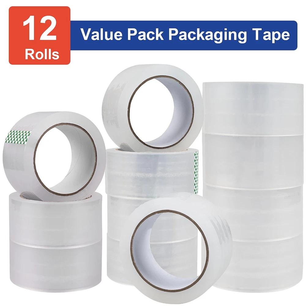 Our 12 Rolls strong packing tape, it is very easy to help you complete the work quickly. These shipping tape prefect for multi-purpose use: Could be used for packing, shipping, packaging, mailing, carton sealing, storage, moving, ect. Outstanding Material: Our packaging tape made of extra strength OPP layer material, use industrial-strength adhesives, the coating is uniform. Package Tape Size: Core diameter: with 3 inch core Packing tapes thickness: 2.7 mil Long and wide: 1.88 inch X 60 yard Total rolls: 12 rolls Total yards: 720 yards Mailing tape color: clear packing tape Packing Tape Advantages: Super Sticky: Packing tape heavy duty with strong adhesion, ultra-strong, industrial-strength adhesive, holds boxes together. Strong Toughness: Our heavy duty packaging tape thickness 2.7 mil, is very good in toughness, so this clear packaging tape will not tear or split easily. Long Lasting: Packing tape bulk total 720 yards, can be used longer. Multiple Use: Packing tape refill for home, office, commercial or industrial use. Clear package tape apply at the depot, warehouse, express logistics use. Packaging tape refill for dispenser, could be used for packing, shipping and mailing, storage, moving, sealing. No more hesitation! Try it now! Satisfaction Guaranteed: We are very confident in our clear packaging tape refill, please contact us if any issue with our products. Just Add To Your Cart Now! Package Includes: 12 Rolls clear packing tape refills for dispenser 12 Rolls Packing Tape: Our clear package tape with 3" core, 1.88" X 60 yd, 720 total yards, suitable for standard tape dispensers and tape guns, it can help you quickly complete the work of packaging and sealing Strong Toughness: Our packing tape heavy duty, 2.7 mil thick, clear tape packing made of extra strength OPP layer material, so this clear packaging tape will not tear or split easily Strong Adhesive, Load Up 50LB: Our packing tape rolls use industrial-strength adhesives, the coating is uniform, box tape for moving, guarantees that the boxes can be glued together and are strong and durable Wide Applications: Our shipping tape rolls apply at the depot, warehouse, express logistics, home and office use, packaging tape refill for dispenser, could be used for packing, shipping and mailing, storage, moving, sealing Satisfaction Guaranteed: We are very confident in our clear packaging tape refill, please contact us if any issue with our products