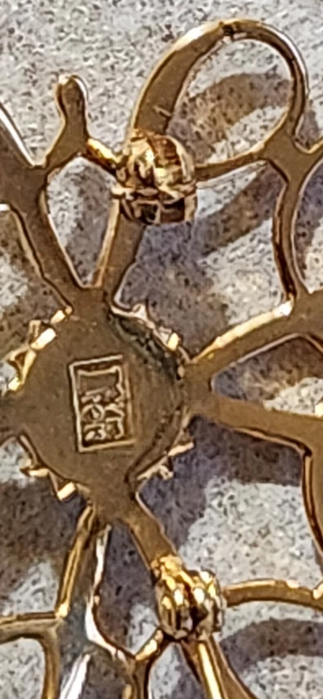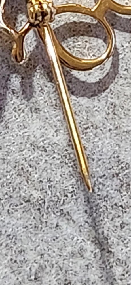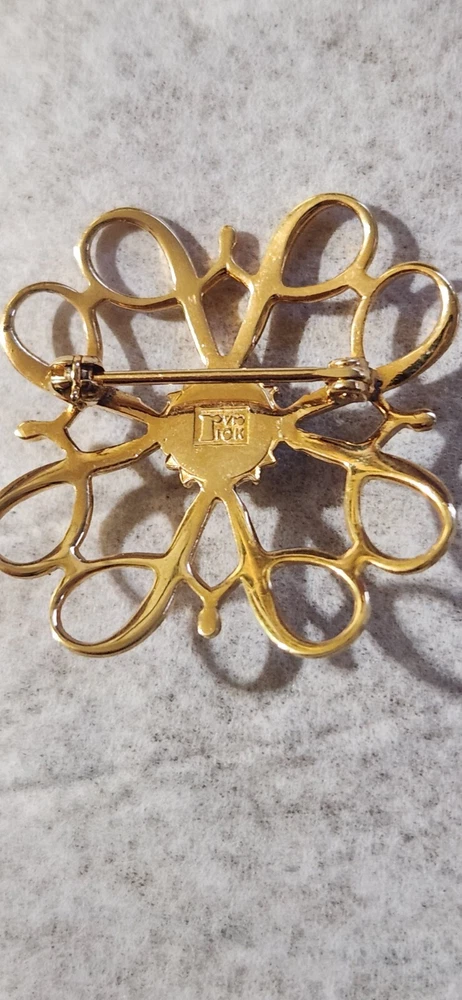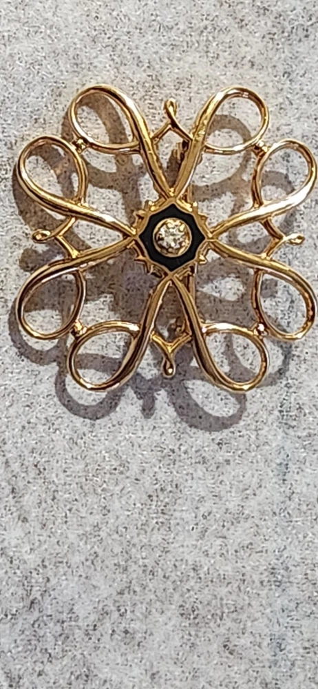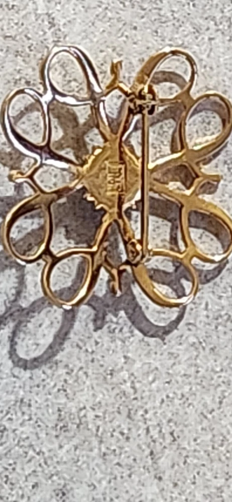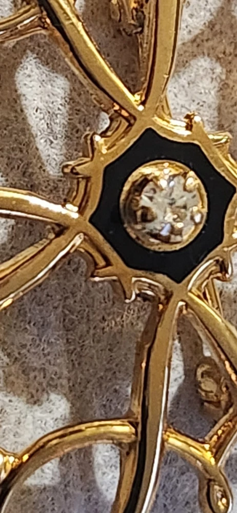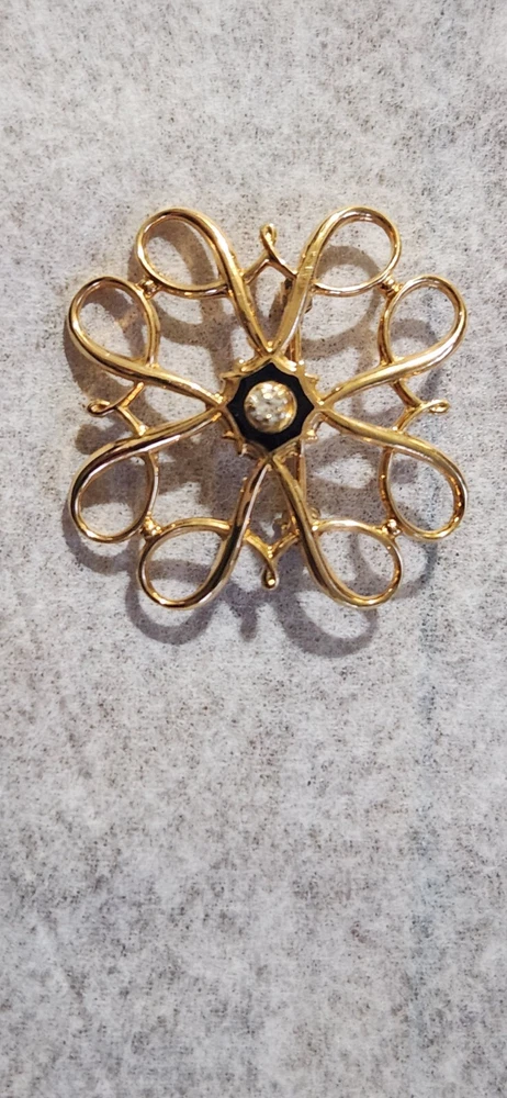 This vintage Avon Award Art Nouveau brooch is a stunning piece of jewelry that will add a touch of elegance to any outfit. The brooch features a beautiful flower shape with clear diamonds set in 10K yellow gold. The piece is signed and weighs 2.36 grams, making it a substantial addition to any jewelry collection. The brooch is perfect for all occasions, whether it's for a special event or just a day out. Its designer features and textured finish make it a unique and eye-catching piece. The brooch is an original piece from the United States and is a great addition to any estate jewelry collection.