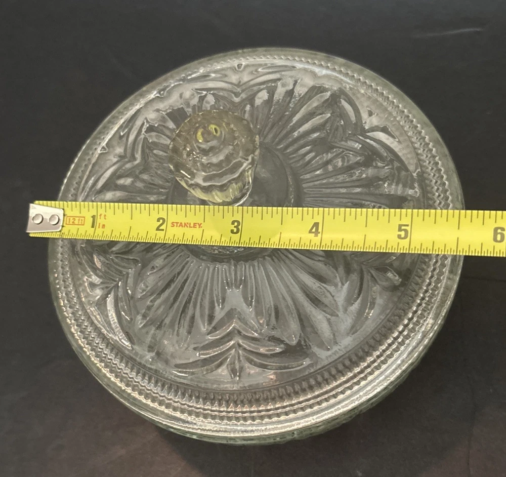 The AVON Clear Pressed Glass Covered Candy Dish is a vintage decorative collectible that showcases a Victorian style design. Made of clear pressed glass, this candy dish features a cover that adds to its charm. Ideal for storing candy or trinkets, this original Avon piece is a unique and elegant addition to any home decor collection. There is a little rough spot. See photo.