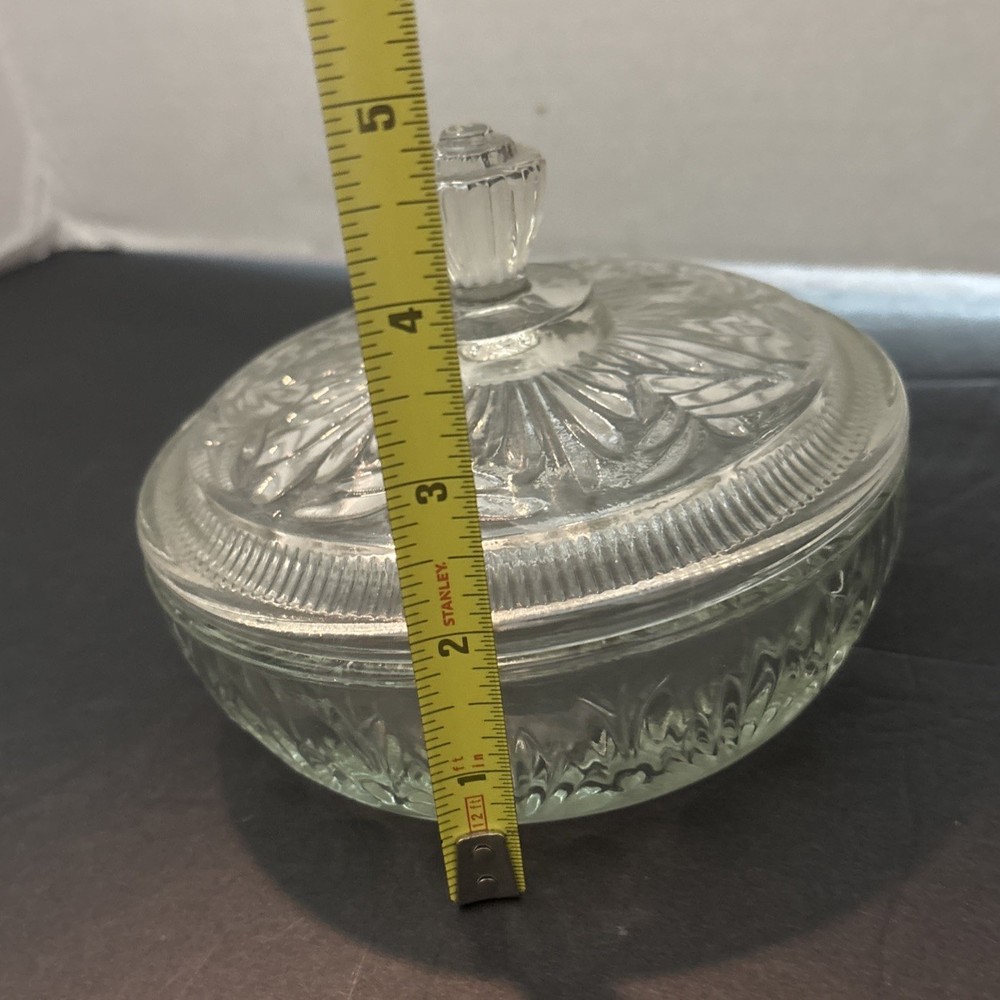 AVON Clear Pressed Glass Candy Dish or Vanity Trinket Box with Lid