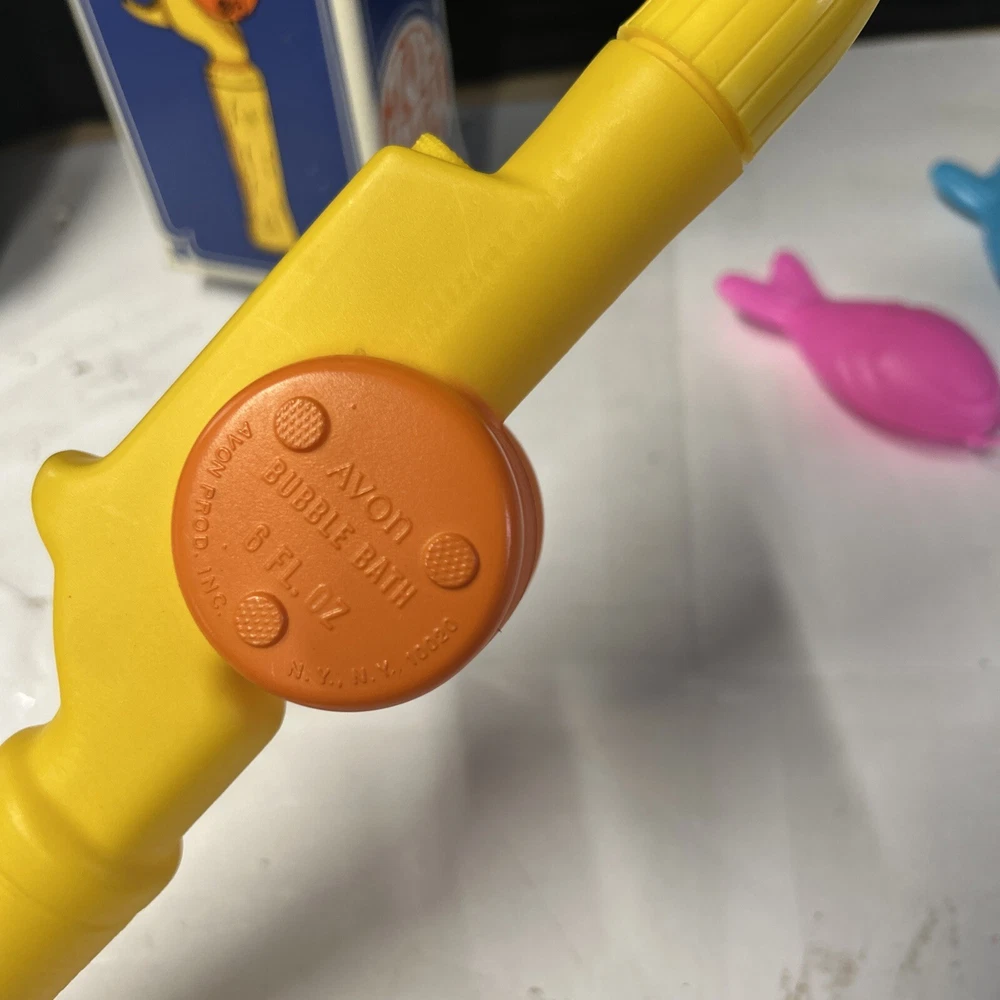This AVON Tub Catch Bath Toy is a unique and original piece from 1968. It features a colorful design with three fish hook lines and a pole, making it a perfect addition to any collection of vintage decorative items. The toy is made of plastic and has a novelty style that is sure to catch the eye of any collector. The item has been well-maintained and is in its original state. It is a great find for anyone interested in collectibles and decorative items. The AVON Tub Catch Bath Toy is a must-have for those who appreciate vintage pieces and is sure to be a conversation starter in any home. Item sold as is See photos for condition