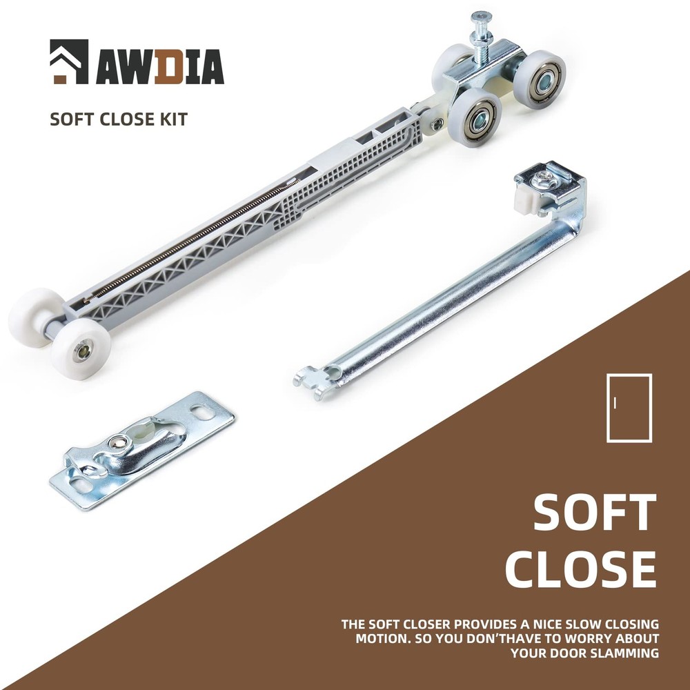 AWDIA Soft Close Pocket Door Hardware, 3-Wheel Soft Close Hangers with Stainless Steel Bearings for Sliding Pocket Door Frame Kit, single direction soft-close Pocket Door Soft Close Kit is for Single Direction Hidden Sliding Door Hardware Operation. Pocket Door Kit is Durable for 200lbs [91kg] Max Door Weight. Soft Close is Fit for 2x4 Or 2x6 Interior Wall Construction. Soft Close Pocket Door Hardware is Compatible for 1500, 1560, 1562, 2710 Series Pocket Door Frame. Package Include Actuator Arm *1, Soft Close Assembly *1, 3-Wheel Ball Bearing Hanger *1, Hanger Plate *1, Adjustment Wrench *1, Mounting Screws. If You Want to Creat 3-Wheel Ball Bearing Soft Close and Soft Open Pocket Door System, Please Add Quantity 2 on the Cart to Check Out.