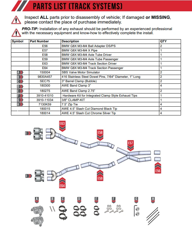 Powered by Frooition Store Home About Contact Customer Feedback View All Items AirDog Baja Designs Diode Dynamics Edge Products FASS Fuel Systems Fleece Flowmaster Ford Performance Holley HSP Diesel Injen KC Turbos Kooks Kryptonite OEM Ford PRP Rudy's Performance Parts S&S Diesel Motorsport Strictly Diesel AWE Track Cat-Back Exhaust 4.5in Black Quad Tips For 21-25 BMW M3/M4 G8X 3.0L AWE Track Cat-Back Exhaust 4.5in Black Quad Tips For 21-25 BMW M3/M4 G8X 3.0L Item Description AWE’s Track Edition takes all of the precision engineering and performance of its SwitchPath™ counterpart, minus the valved muffler in the rear. The result is a constant “valve open” mode, at an affordable price with additional weight savings. If you’re craving rich and rowdy tones at all times, and a hefty 13 lb weight savings (with AWE mid-pipes), this is your dose of steel. The Track Edition Exhaust, also 50 state legal like its SwitchPath™ sibling, comes complete with AWE valve simulators to accommodate your factory exhaust valve motors. Happy ECU, happy life. And when it comes to showing off the party out back, the system comes with quad 4.5” double-walled, slash-cut tips available in chrome silver or diamond black. The exhaust features inlet adapters to mate to the factory mid section. When pairing AWE Mid-Pipes to the SwitchPath™ or Track Edition Exhausts, the aforementioned adapters are not needed. Due to varying cut points, AWE Exhausts are not guaranteed to mate with another manufacturer’s mid pipes. Note: This version is known to get rowdy, and may be too much for many. For that reason, this particular version cannot be returned due to sound preference. Prepare yourself (Sport+ mode can be pretty raucous)! AWE's No CEL Guarantee, Perfect Fitment Guarantee, and Lifetime Warranty come standard. Features: 50-state emissions-complaint dual 3” exhaust configuration Optional non-resonated performance mid-pipes available separately Fits stock and M-Performance valances Track Edition (with mid-pipes) provides a 22 lb weight savings over the stock exhaust Bespoke X-pipe unlocks a smooth tone out of the S58 Ball socket mounting points for easy installation Max gains of 3 hp and 5 lb-ft of torque at the wheels Quad 4.5” double-walled, slash-cut tips available in diamond black Less is more: clean, straight-through design maximizes performance Manufactured in-house at AWE AWE No CEL Guarantee AWE Perfect Fitment Guarantee AWE Lifetime Warranty Specifications: Configuration: Track Edition Cat-Back Exhaust Material: T304L Stainless Steel Tubing Diameter: 3” Exhaust Tip Diameter: 4.5” Exhaust Tip Finish: Diamond Black Tips Construction: CNC Mandrel-Bent, .065” wall thickness Included: (1) AWE Tuning Track Cat-Back Exhaust w/ 4.5in Black Tips Fitment: 2021-2025 BMW M3 Base 3.0L 2021-2024 BMW M3 Competition 3.0L 2022-2025 BMW M3 Competition xDrive 3.0L 2021-2025 BMW M4 Base 3.0L 2021-2024 BMW M4 Competition 3.0L 2021-2025 BMW M4 Competition xDrive 3.0L Notes: Lifetime Warranty About Us About Us Payment Shipping Feedback Returns About Us Rudy's Performance Parts was founded in 2008 and prides itself in being the industry leader in automotive performance and accessories. Rudy's carries a wide variety of performance, suspension, exterior and interior upgrades! Whether you're looking for a minor boost in performance, all-out drag racing and sled pulling power or a suspension upgrade to clear bigger wheels and tires, Rudy's has you covered! Known for the best customer service and pricing in the industry, there is no question that you've found your one stop shop for all of your automotive upgrades! Payment Payment Rudy's Performance Parts accepts PayPal, Visa, MasterCard, Discover and American Express as forms of payment. Shipping Shipping All orders placed Monday-Friday before 2:00 PM EST will be shipped the same day via UPS Ground, FedEx or USPS as long as the product is not on back-order. Tracking information will be automatically uploaded to eBay when the item has shipped. The address on your PayPal account MUST be verified. Additional shipping charges may apply to Alaska, Hawaii, Puerto Rico and Canada. Please message us on eBay if you need to inquire about expedited shipping. Rudy's Performance Parts does NOT ship to international or PO Box addresses. Should you purchase an item from Rudy's Performance Parts using an international or PO Box address, Rudy's Performance Parts reserves the right to cancel and fully refund your order. ALL programmers bought from Rudy's Performance Parts will be sent with signature confirmation and any purchases over $500.00 may also be sent with signature confirmation. Upon delivery, if no one is available to sign for the product, the shipper (UPS, FedEx, USPS, etc.) may attempt to deliver the merchandise another day OR hold it at a local hub for customer pickup. Rudy's Performance Parts is NOT responsible for any packages that are damaged from shipping. ALL packages should be inspected for damage at the time of delivery. If you receive a damaged package, Rudy's Performance Parts will open a damage claim with the shipper and will refund or replace your product once the claim has been complete. Rudy's Performance Parts ships products from multiple warehouses across the country in order to get your products to you the quickest way possible. Your order will ship from the nearest warehouse that has the product in stock. Please note that your order may come in multiple shipments/packages and your shipments/packages may arrive at different times. Feedback Feedback Here at Rudy's Performance Parts we are committed to customer satisfaction. If you are satisfied with your order, please leave us 100% positive feedback as we will do the same for you. If for any reason you are not satisfied with your order or have any problems at all, PLEASE call or email us and we will do everything we can to resolve the issue. We value your business and we are not satisfied until you are. Ret