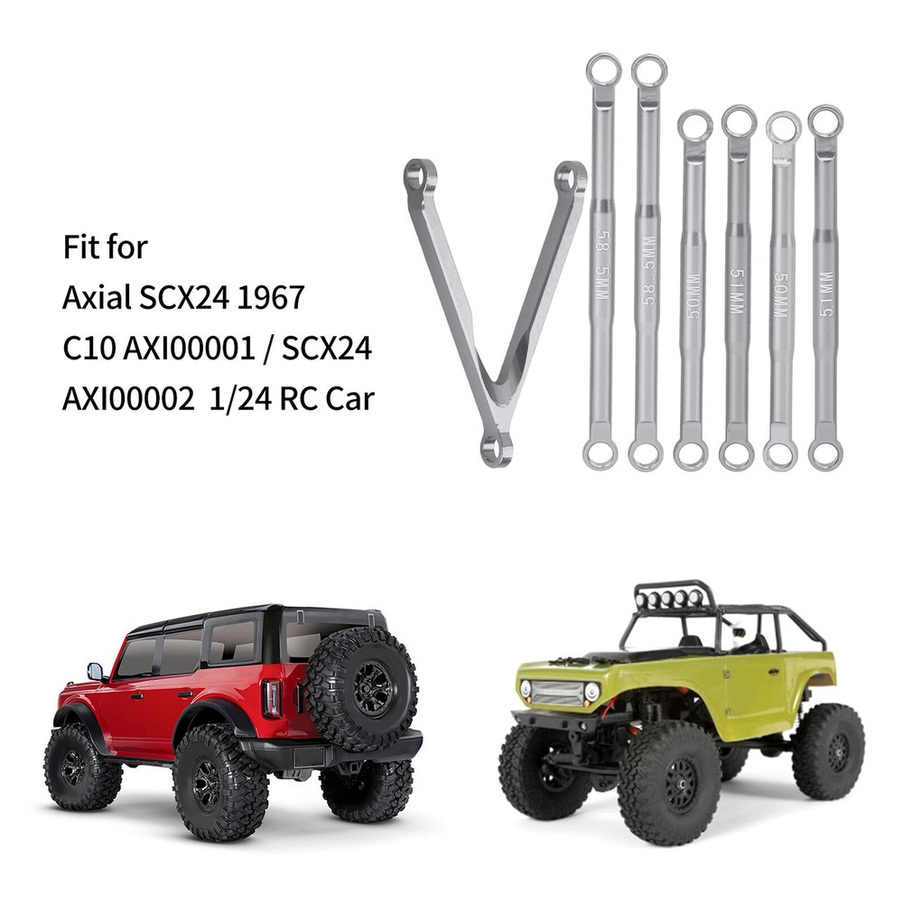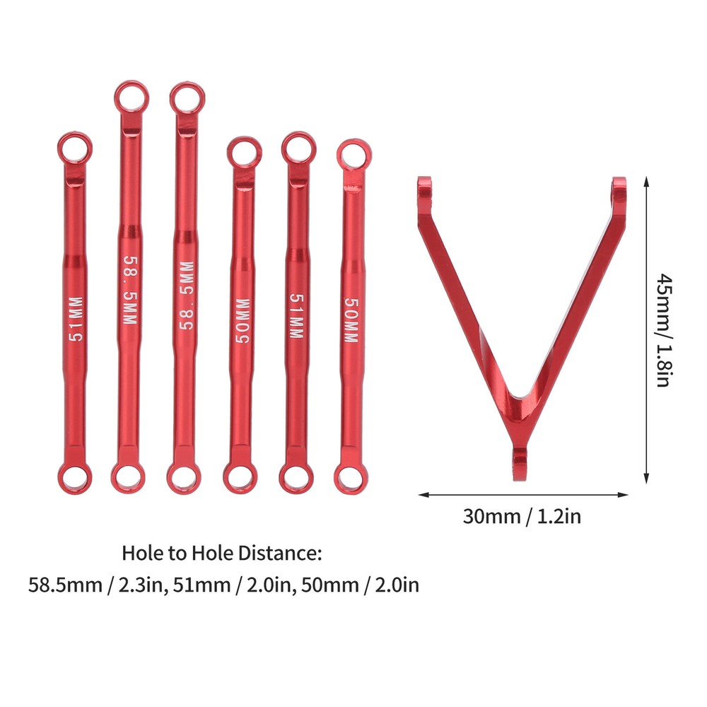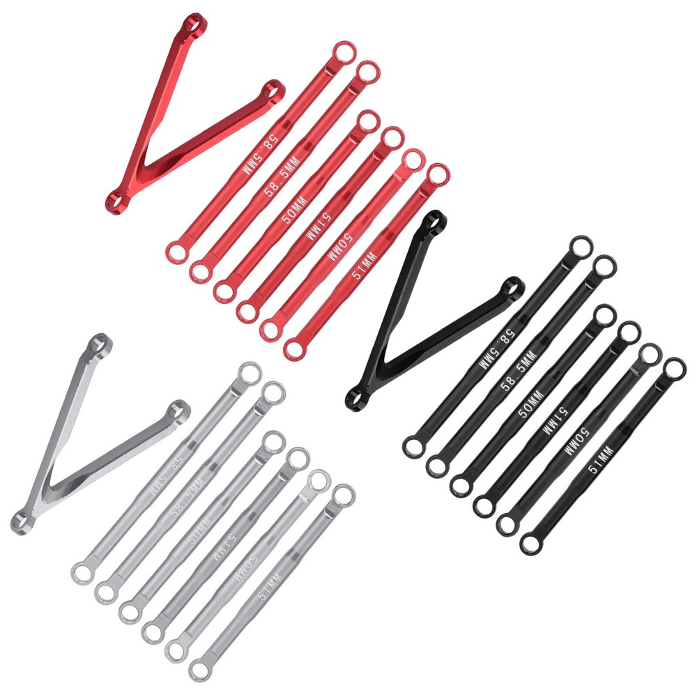 Feature: 1. Made of high‑quality materials, it is durable, wear‑resistant, stable and reliable and has high‑precision. 2. The original tie rod can be directly replaced to help improve the performance of the car. 3. Make your remote control car look more , exquisite, very cool and practical. 4. Exquisite design, exquisite workmanship, with complete accessories, it is easy to install. 5. Great accessories to upgrade your remote control car, fit for Axial SCX24 1967 C10 AXI00001 / SCX24 AXI00002 1/24 RC Car. Specification: Item Type: RC Rod Linkage Pull Tire Rod Kit Material: Aluminium Alloy Hole to Hole Distance: 58.5mm / 2.3in, 51mm / 2.0in, 50mm / 2.0in A Shape Bracket Size: Approx. 45x30mm / 1.8x1.2in Product Weight: Approx. 17g / 0.6oz Applicable Models: Fit for Axial SCX24 1967 C10 AXI00001 / SCX24 AXI00002 1/24 RC Car Package List: 6 x Rod Linkage 1 x A Shape Bracket 16 x Brass Ball Head 32 x O-Ring Note: 1. Please allow 1‑3mm error due to manual measurement. Thanks for your understanding. 2. Monitors are not calibrated same, item color displayed in photos may be showing slightly different from the real object. Please take the real one as standard.