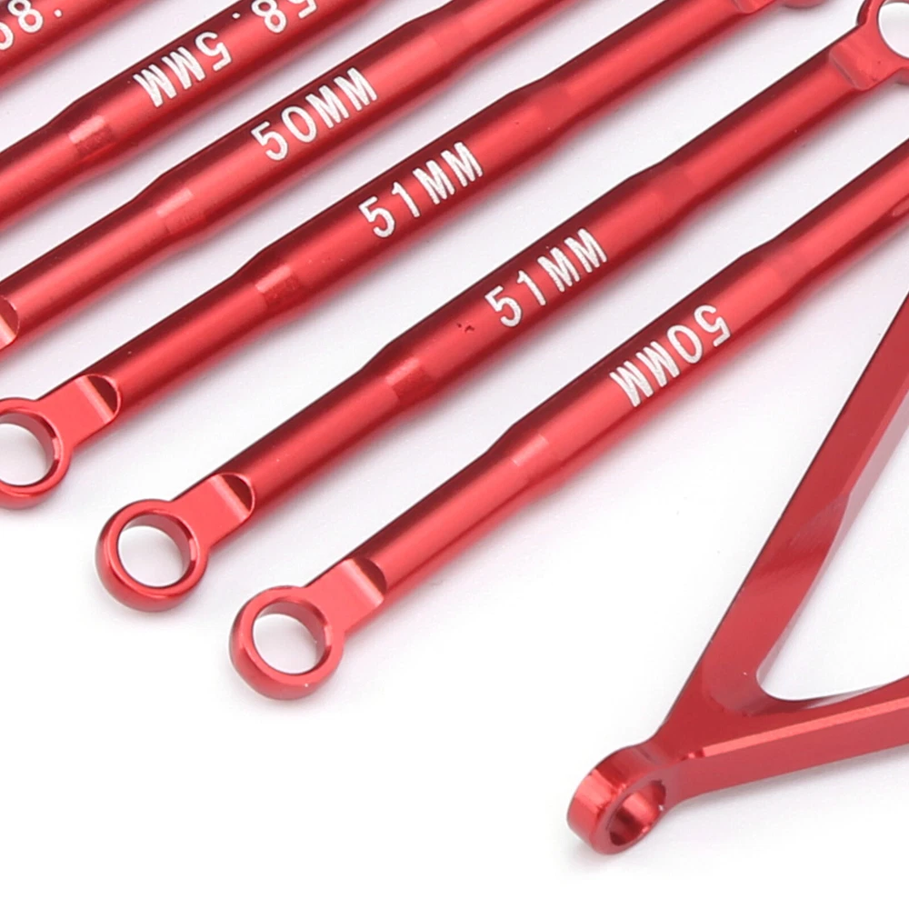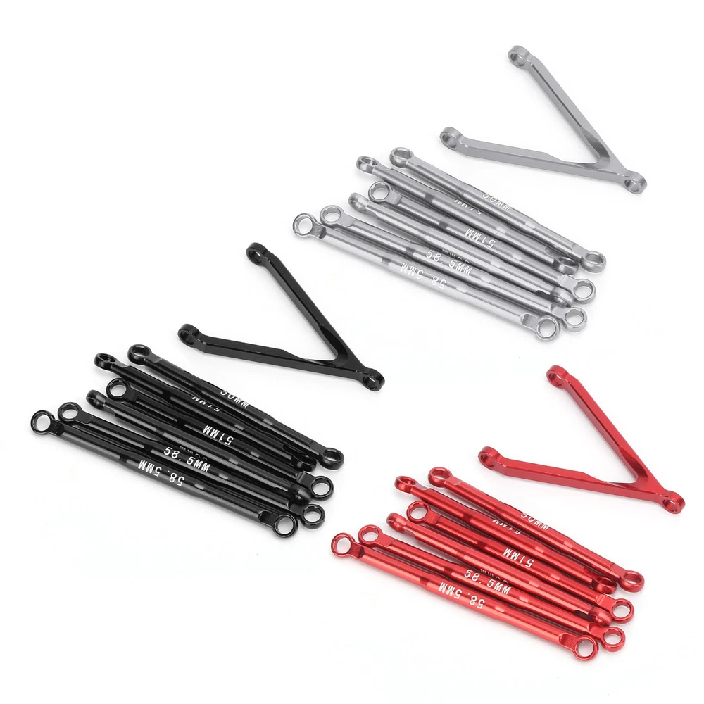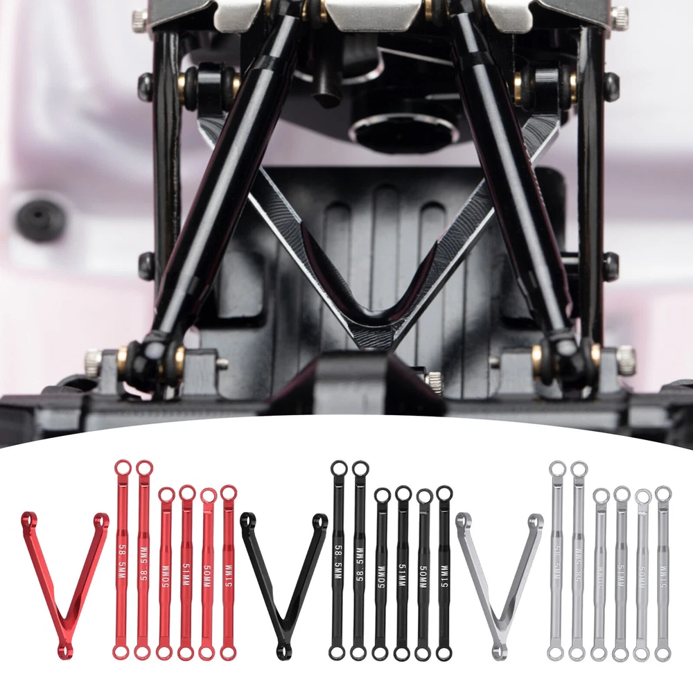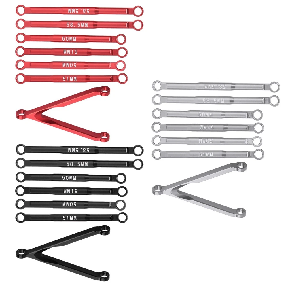 Feature: 1. Made of high‑quality materials, it is durable, wear‑resistant, stable and reliable and has high‑precision. 2. The original tie rod can be directly replaced to help improve the performance of the car. 3. Make your remote control car look more , exquisite, very cool and practical. 4. Exquisite design, exquisite workmanship, with complete accessories, it is easy to install. 5. Great accessories to upgrade your remote control car, fit for Axial SCX24 1967 C10 AXI00001 / SCX24 AXI00002 1/24 RC Car. Specification: Item Type: RC Rod Linkage Pull Tire Rod Kit Material: Aluminium Alloy Hole to Hole Distance: 58.5mm / 2.3in, 51mm / 2.0in, 50mm / 2.0in A Shape Bracket Size: Approx. 45x30mm / 1.8x1.2in Product Weight: Approx. 17g / 0.6oz Applicable Models: Fit for Axial SCX24 1967 C10 AXI00001 / SCX24 AXI00002 1/24 RC Car Package List: 6 x Rod Linkage 1 x A Shape Bracket 16 x Brass Ball Head 32 x O-Ring Note: 1. Please allow 1‑3mm error due to manual measurement. Thanks for your understanding. 2. Monitors are not calibrated same, item color displayed in photos may be showing slightly different from the real object. Please take the real one as standard.