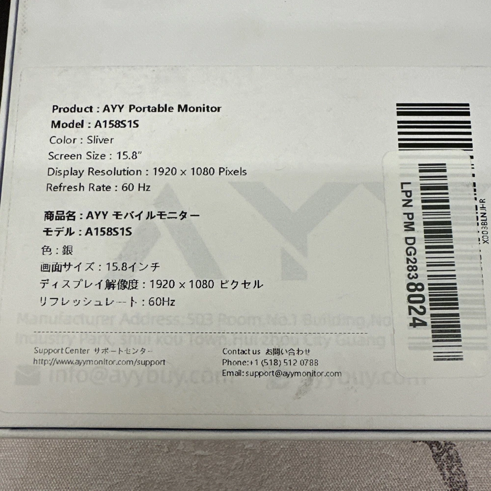 AYY Portable Monitor 15.8 Inch FHD 1080P Portable External Second Monitor