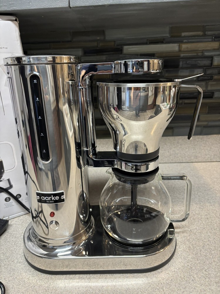 Gold Cup Standard brew performance, certified by the Specialty Coffee Association (SCA). Elegant, stainless-steel drip coffee brewer. Brews 2–10 cups at ideal 197°F–204°F. Professional and durable stainless steel boiler. Sensor measures water level and adjusts coffee brewing temperature accordingly. Automatic drip-stop cuts down on mess. Energy-saving hot plate shuts off when glass carafe is removed; gradually reduces power with safety shut-off; hot plate can be turned back on. Overflow protection allows coffee to flow into jug if filter basket becomes clogged. Open box item - most likely a return item since has a hint of coffee smell; otherwise, appears brand new. Ran water thru to test to verify everything was working as expected.