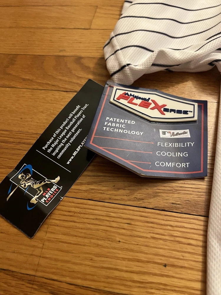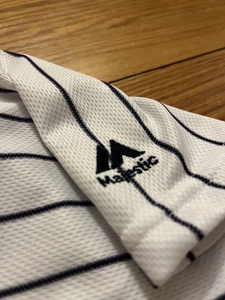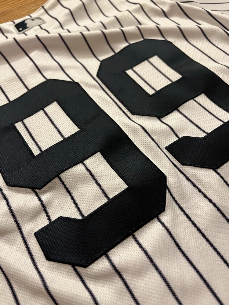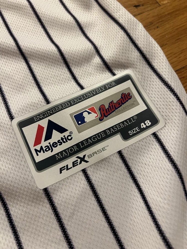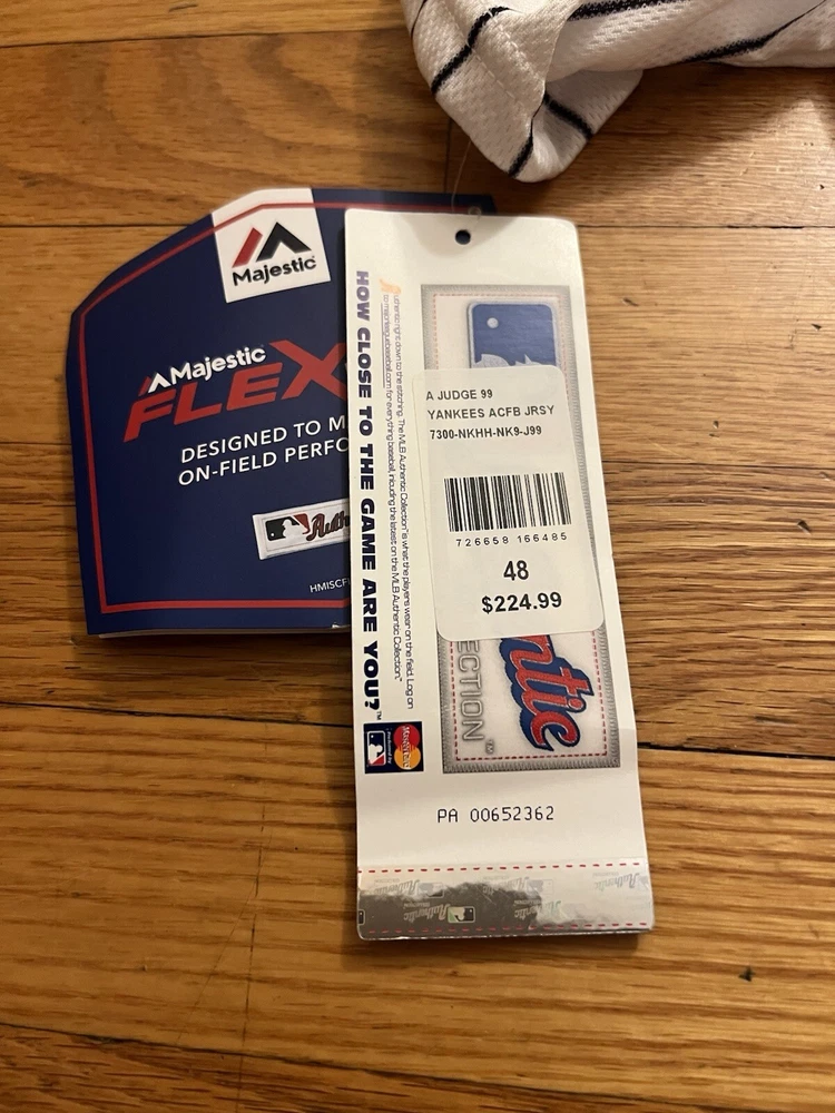 Product:JerseyGender:MenLeague:Major League (MLB)Brand:MajesticTeam:New York YankeesSport:BaseballOfficially Licensed:YesSize:LPre & Post Season:Regular SeasonPlayer:Aaron JudgeColor:White