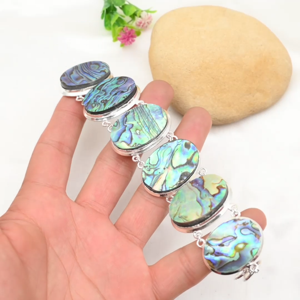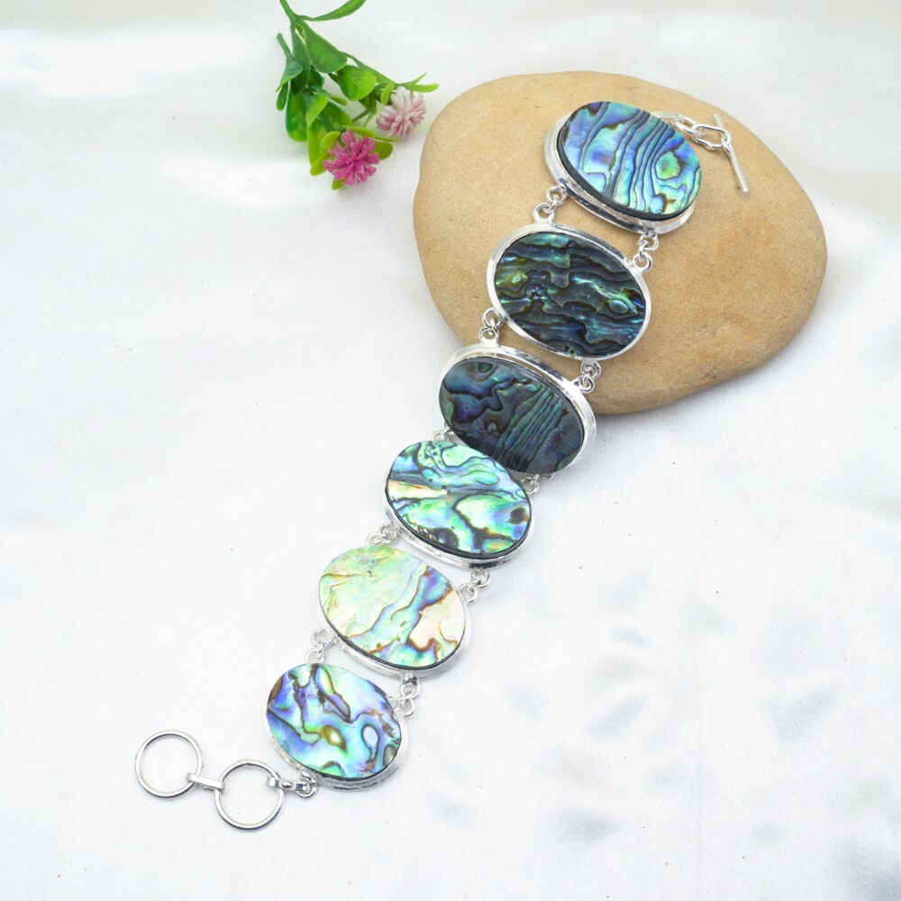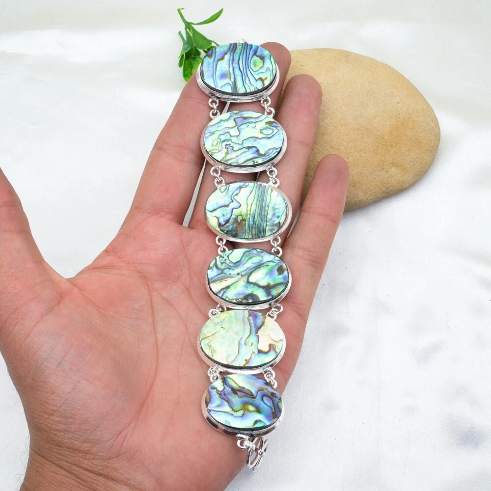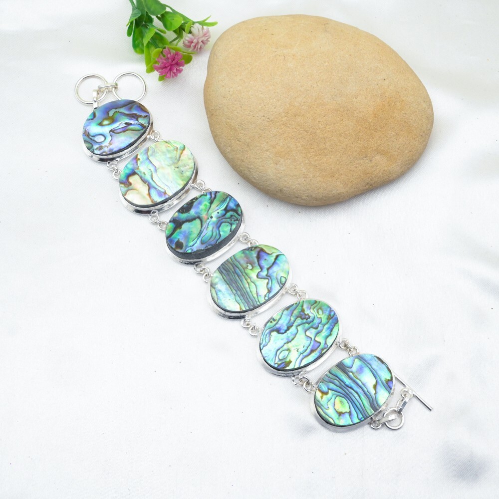 HomeAbalone Shell Gemstone Bracelet in 925 Sterling Silver Handmade Jewelry Gift