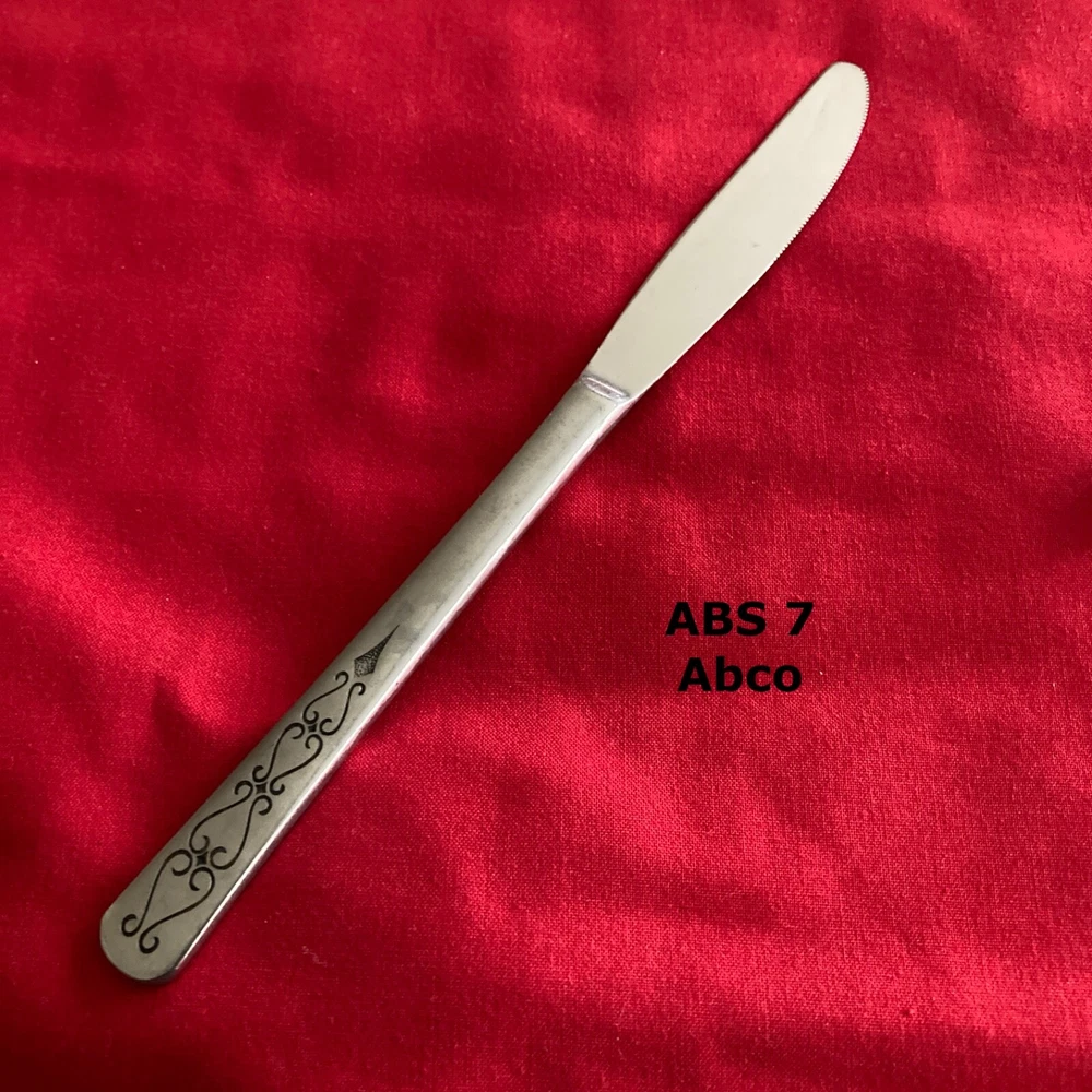 Manufacturer: Abco Stainless Pattern: ABS 7 Type: Stainless Steel Piece: Dinner Knife Length: 8 3/8"