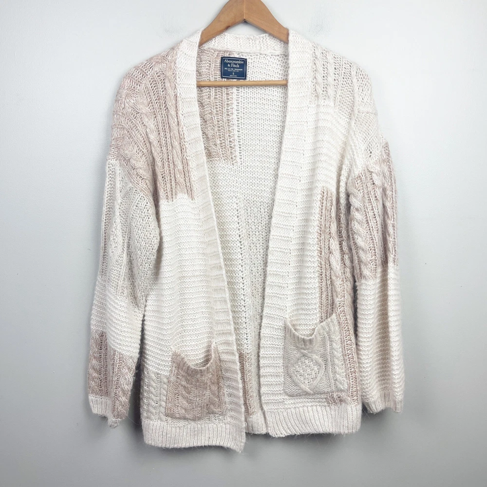 Size Type: Regular Type: Sweater Features: Open Brand: Abercrombie & Fitch Style: Cardigan Department: Women Size: S Color: Ivory Knit Style: Cable-Knit