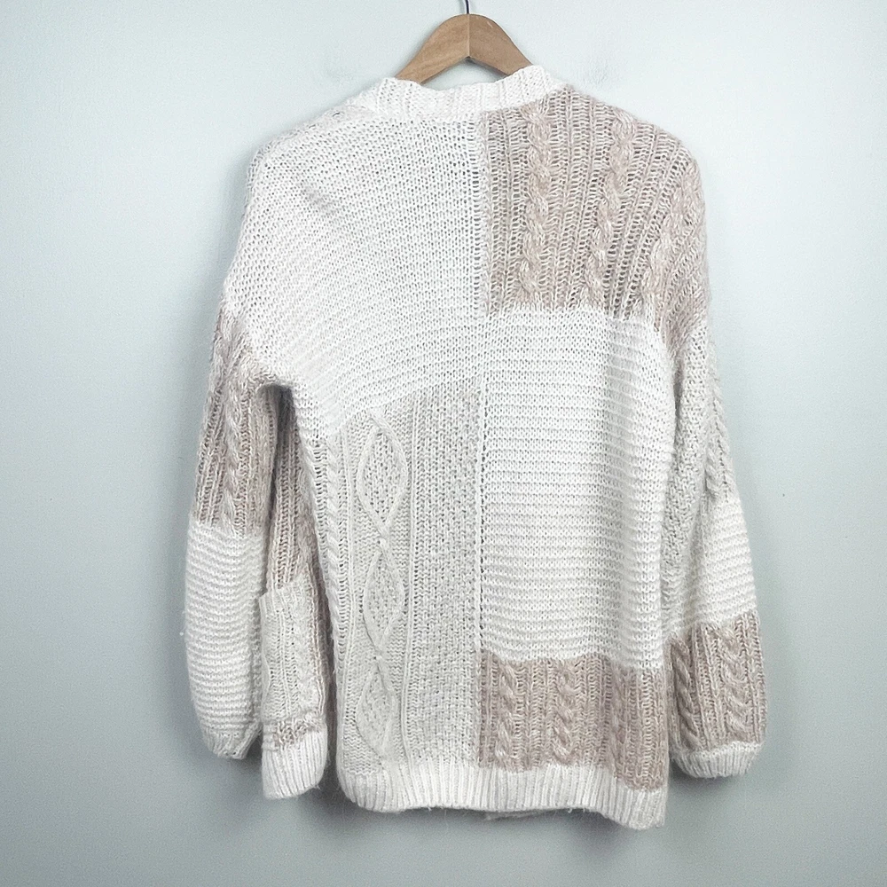 Abercrombie & Fitch Cable Knit Patchwork open cardigan sweater