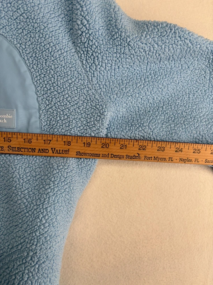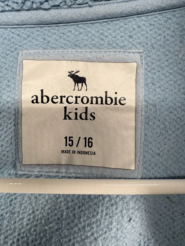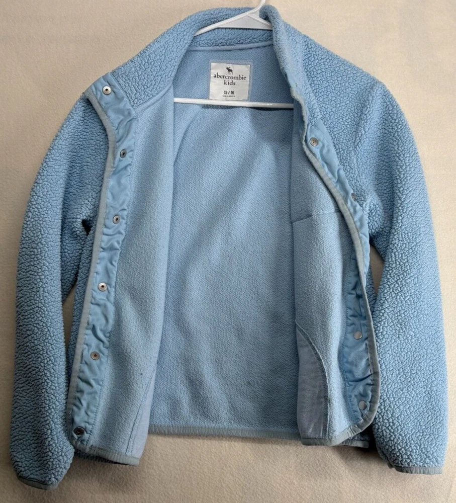 Style:Full Snap Button FrontCharacter:SherpaClosure:SnapFabric Type:FleeceMaterial:PolyesterDepartment:Unisex KidsFeatures:LogoBrand:Abercrombie & FitchColor:BlueVintage:NoSleeve Length:Long SleeveSeller Notes:“Item is in good pre-owned condition with typical marks and wear associated with use and age.”Type:SweatshirtSize:15/16