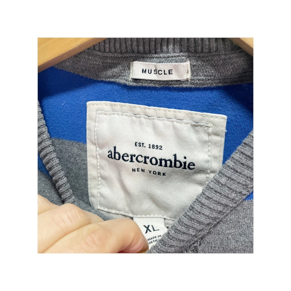 Abercrombie & Fitch boys Striped Blue Gray Long Sleeve T-Shirt Muscle XL