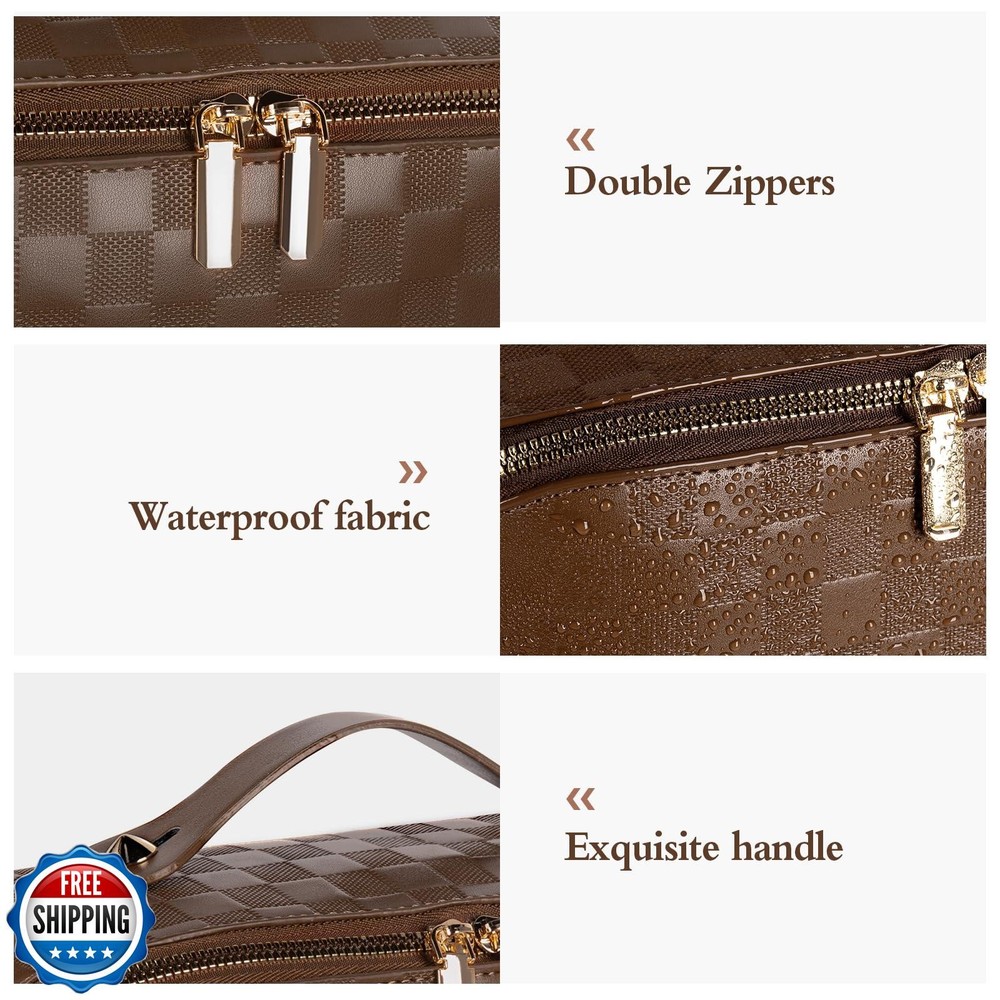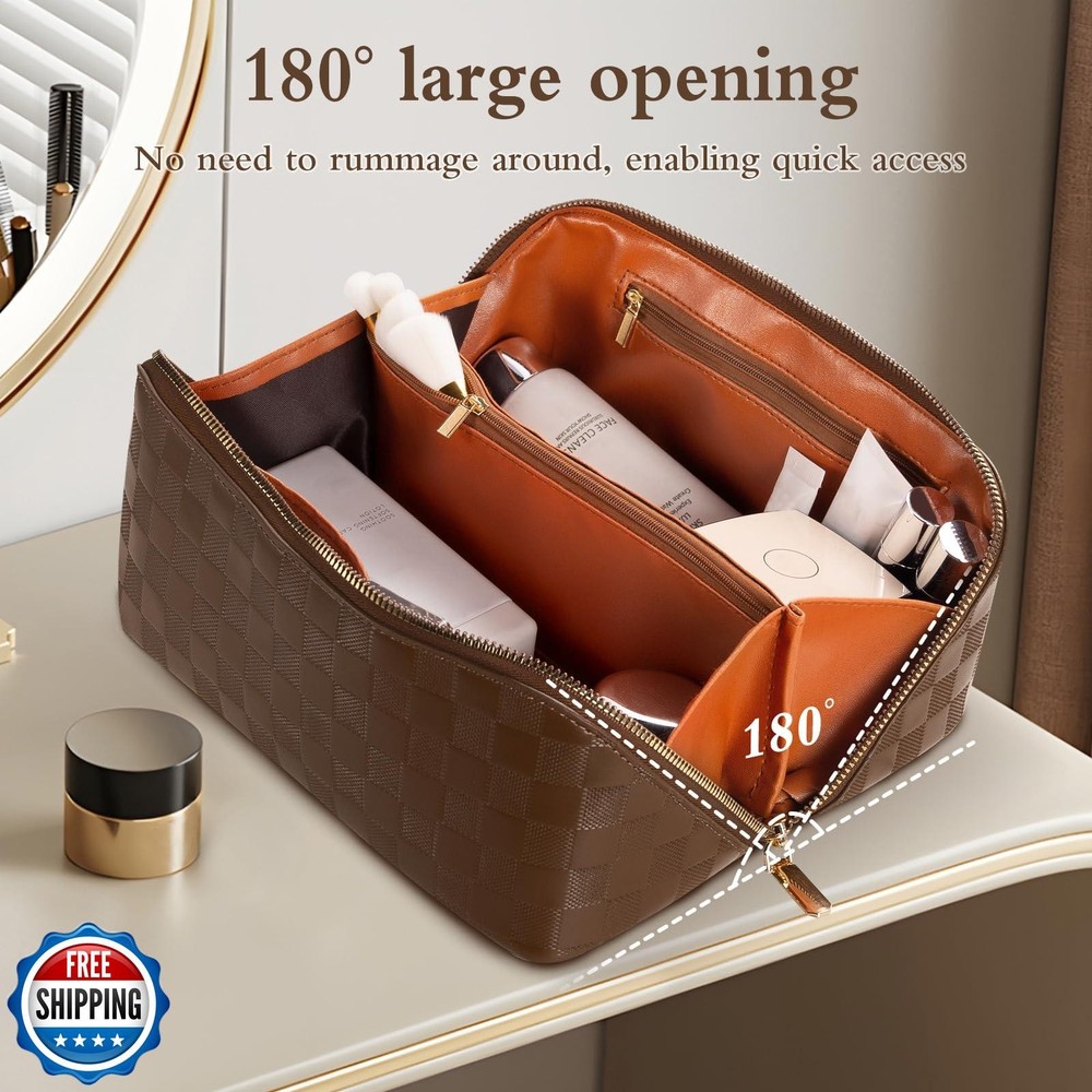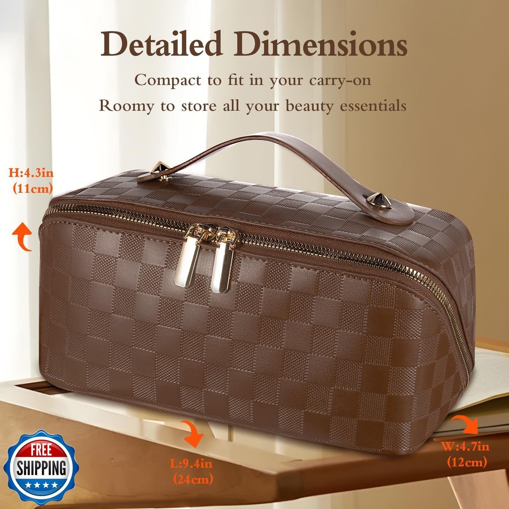 Abiudeng Travel Makeup Bag,Large Capacity Toiletry Bag Cosmetic Bags for Travel Essentials,Waterproof Portable Pouch Open Flat Makeup bag Organizer with Divider and Handle(Checkered-Brown) Features Spacious Yet Compact Design: This toiletry bag (9.4x4.7x4.3 inch) features 180° lay-flat access and multiple compartments to organize all travel essentials. All the cosmetics needed for travel can be carried in one bag while maintaining neat separation Comprehensive Upgrade: Crafted with premium PU material, both exterior and inner lining resist water/stains. Wipe-clean surfaces make maintenance effortless. Enhanced brush slot is locked securely at base, outperforming old design Smart Partition System: Thoughtfully designed compartments with waterproof inner layers prevent product leaks. The scratch-resistant zippered sections keep makeup brushes separate from liquid products. Quick-access layout eliminates messy digging through belongings Versatile Usage: Lightweight yet durable structure meets TSA carry-on requirements. Perfect as a cosmetics bag, travel toiletry bag, home organizer, medicine storage case, jewelry keeper, or tech accessory pouch Perfect Gift for Jet-Setters: Available in multiple stylish patterns to complement any traveler's aesthetic. Premium cosmetic case combines practical features with fashionable appeal---the ultimate travel companion for women on the go Shipping Free & Fast Shipping: We offer free shipping to most of the USA with a normal delivery time of 3-7 days. However, due to the current situation, additional delivery time (up to 3 weeks) may be required for some items. Alternative Carriers: We may use alternative carriers (e.g., USPS, FedEx, UPS) to ensure your package arrives safely and on time. Due to the use of multiple carriers, we are unable to provide a tracking number automatically. Handling Time: Orders are processed and shipped within 1-2 business days of receiving cleared payment. Shipping Restrictions: Shipping to Alaska, Hawaii, Puerto Rico, Guam, and other US territories may incur shipping charges or delivery restrictions. Please contact us before ordering, or your order can be refunded/cancelled. State Restrictions: Certain items may not be shipped to California due to state regulations. Contact for Tracking Updates: If you require tracking updates or have any concerns about the delivery of your order, please feel free to contact us, and we will be happy to assist you. Return Policy 30-Day Hassle-Free Returns: If you are not completely satisfied with your purchase, you can return the item for free within 30 days of receiving it for a full refund or exchange. Easy Return Process: Contact us, and we will provide you with a prepaid return shipping label and detailed instructions. No Restocking Fee: There are no restocking fees for returns. However, the buyer is responsible for return shipping costs if the return is not due to a seller"s error. Refund Processing: Refunds will be processed within 1 business day of receiving the returned item in its original condition. Feedback Your feedback is extremely important to us. We strive to provide the best products and customer service possible. If you are satisfied with your purchase, please take a moment to leave us a positive review. If you have any concerns or issues with your order, please contact us before leaving negative feedback. We are committed to resolving any problems and ensuring your satisfaction. Contact Us If you have any questions or concerns, please feel free to reach out to our customer support team. You can contact us through the eBay messaging system. We are available Monday to Friday, 9:00 am to 5:00 pm EST, and we will do our best to respond to your inquiry within 24 hours. Thank you for supporting our small family business!