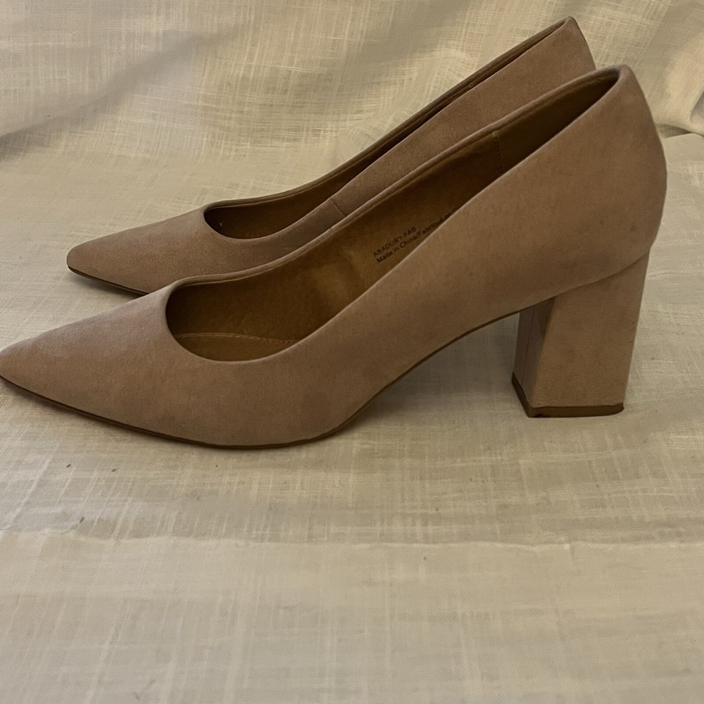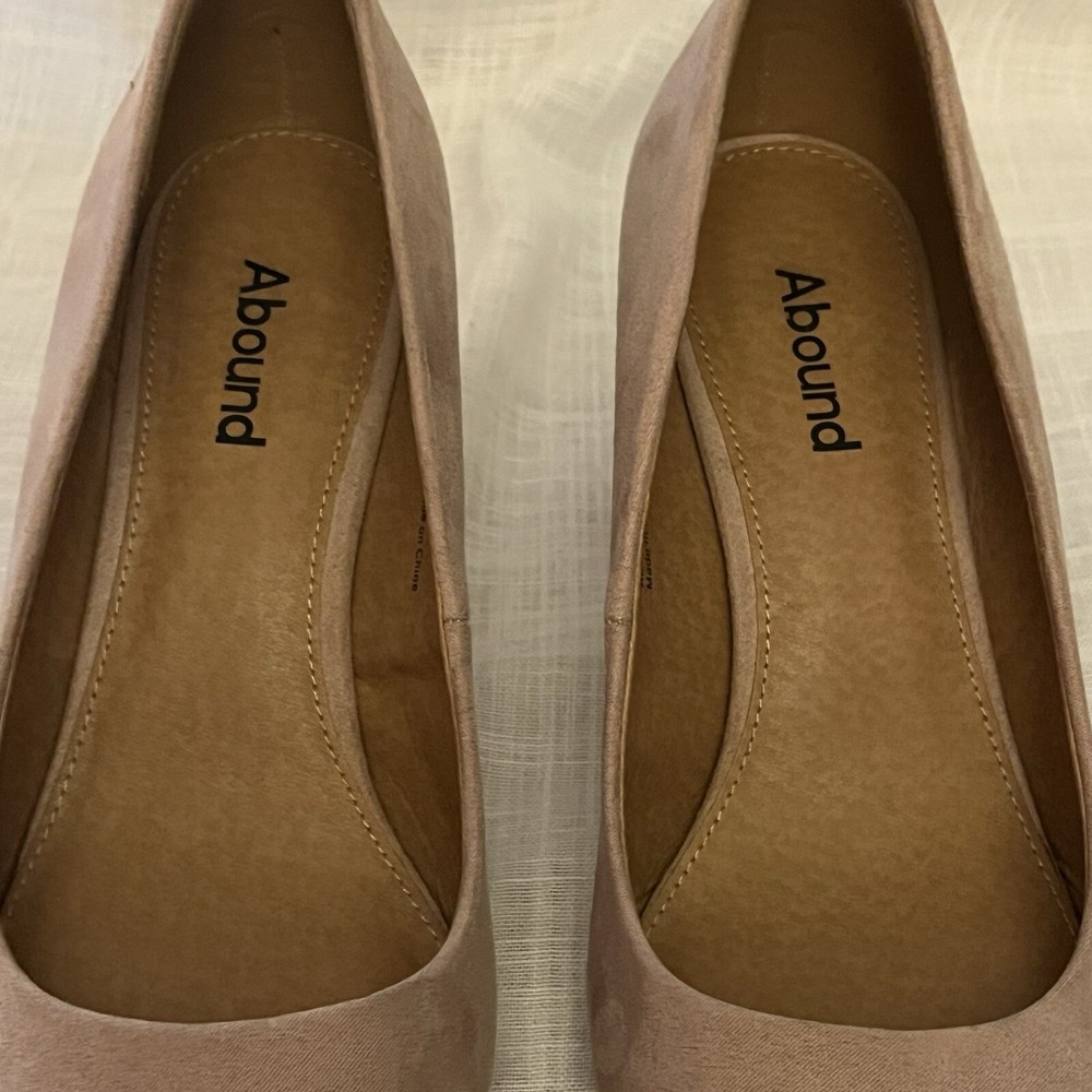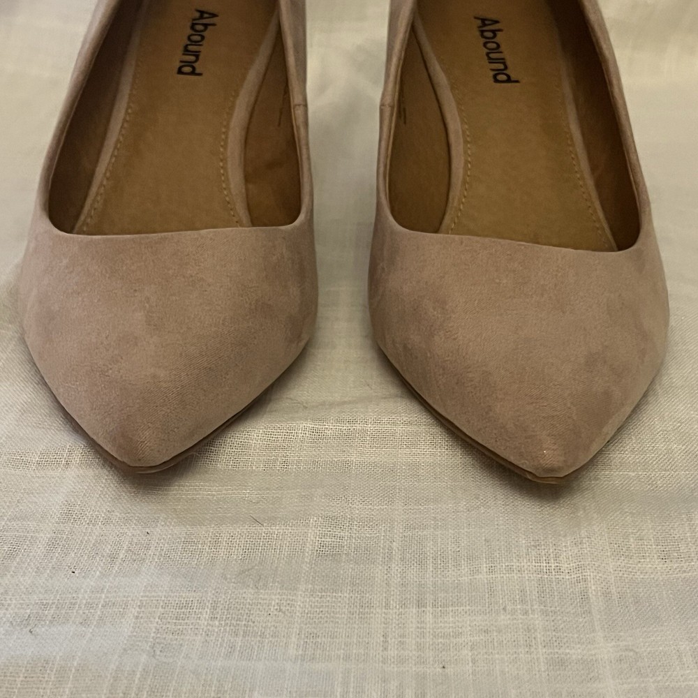 Elevate your shoe game with these stylish Abound Women's Pumps. These heels come in a versatile tan/nude color and feature a square heel and pointed toe. The faux leather upper material adds to the pump's sleek and chic look. These pumps are perfect for any occasion, whether it's for a party, cocktail event, formal gathering, or even for business. They are available in size 9M and have a solid pattern. These heels are a great addition to any wardrobe and can be worn all year round.