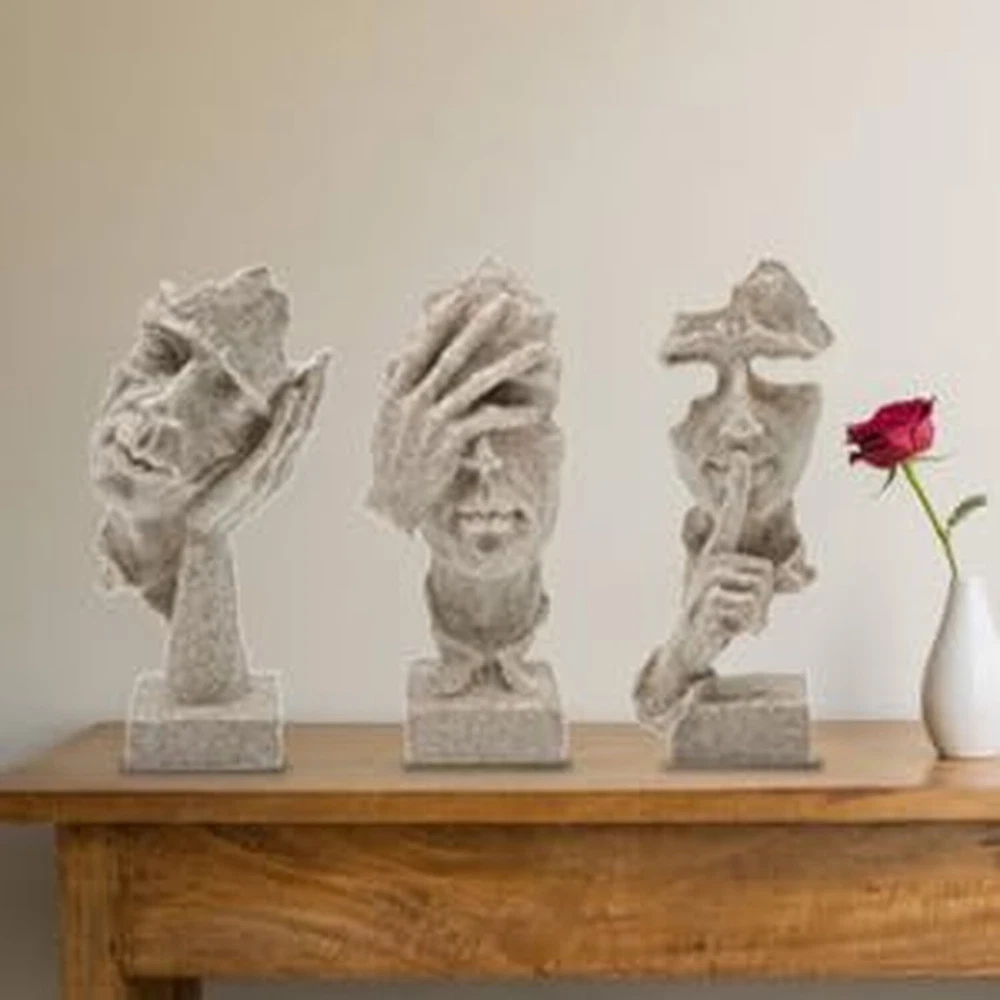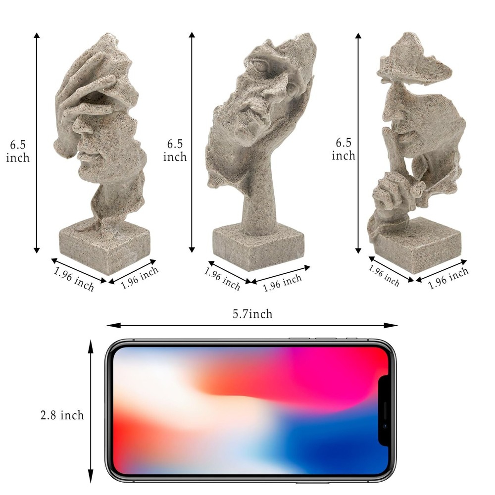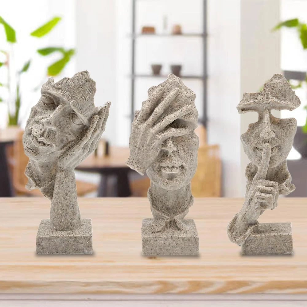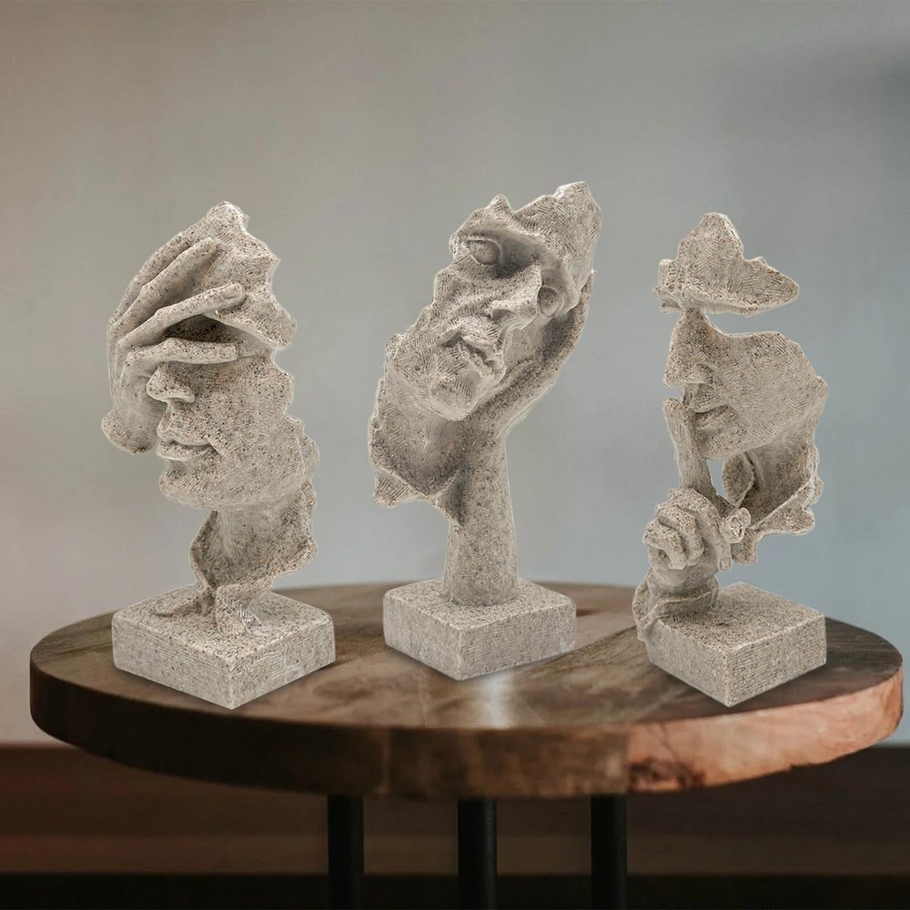 aboxoo 3 Pcs Thinker Statue, Silence is Gold Abstract Art Figurine, No Hear No See No Speak Modern Home Resin Sculptures Decorative Objects Modern Decor for Creative Room Home, Office Study(Sandy) Product Details Size: Medium Color: Sandy Brand: aboxoo MPN: ZY2884 UPC: 758283799523 EAN: 0758283799523 Color: Sandy Brand: aboxoo Theme: Home Decor Material: Resin Style: Modern Color: Sandy Brand: aboxoo Theme: Home Decor Material: Resin Style: Modern Product Dimensions: 10.43"D x 3.54"W x 8.46"H Recommended Uses For Product: Home Mounting Type: Tabletop Cartoon Character: Abstract Special Feature: Handmade Product Care Instructions: Wipe Clean Collection Name: All Seasons: All Seasons UPC: 758283799523 Number of Items: 1 Item Weight: 1.78 pounds Manufacturer: aboxoo Country of Origin: China Item model number: ZY2884 Date First Available: January 30, 2024 Handmade Crafts&Beautiful Design: retro resin, abstract art, beautiful and vivid art. Vivid facial gesture modeling. Administrative levels are different, line outline is concise and clear, stereo feeling is strong, simple sense is strong, enjoy the beauty of life, let your home be simple individual character. The model of the thinker, silence is golden. It is the crystallization of human wisdom, fully embodies the creativity and artistry of human beings. Product Size: L/W/H:7.9"/7.9"/4.3" inches (20 * 20 * 11cm). Each product is individually carved by hand, the size may be a little wrong. Creative sculpture using high quality resin as the main raw material, after mold casting, 100% new, high quality. No odor, non-toxic and harmless. Design Concept: "Three No's": don't listen to what you shouldn't hear, don't look at what you shouldn't see, learn that silence is golden, avoid unnecessary mistakes, avoid disputes, and always follow a calm mind to walk, expressing the idea of not looking, not listening, and not talking. With black as the main color, the black decoration symbolizes solemnity and dignity.It is a symbolic sculptural ornament. Home Decor:Creative home decoration living room unique and interesting sculpture decoration design. Suitable for space, bookcase, bookcase, desk, table top, wainscoting, window, porch. Can be placed in the office, living room, counter, study, office or company, enhance the artistic atmosphere of the environment.Its perfect size makes it easy to adapt to a wide range of furniture. Rating Explanation: The customer's shopping experience is very important to us, and all the new batch of products have been upgraded and improved, and they are given to customers at a very affordable price. I hope this can enhance our reputation, and you will be very satisfied with the receipt of the goods. aboxoo 3 Pcs Thinker Statue, Silence is Gold Abstract Art Figurine, No Hear No See No Speak Modern Home Resin Sculptures Decorative Objects Modern Decor for Creative Room Home, Office Study(Sandy)