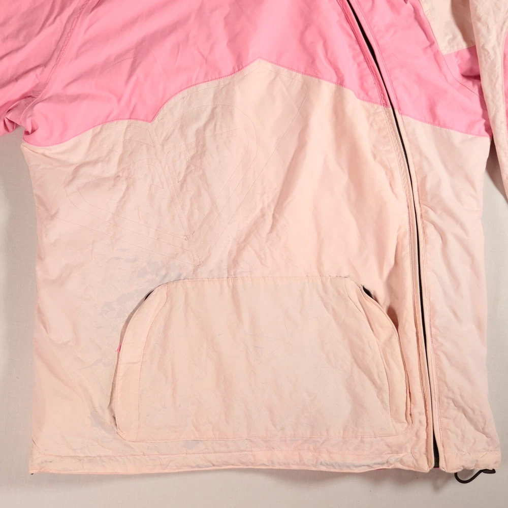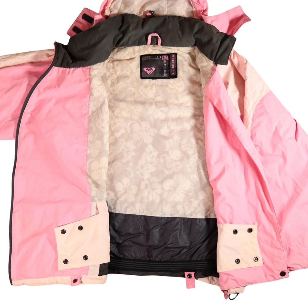 Roxy X-Series ABT Snowboarding Coat Size '4' Pink Moondoggie *Cosmetic Flaws Roxy Quiktech 3000, X-Series Applied Boardriding Technology 'Moondoggie' in pink Pink and light pink snowboarding coat Asymmetrical zip, large kangaroo pocket, velcro cuffs, snow skirt, rear vents, removable hood **As seen in the photos there are some cosmetic issues, the coat was washed once and appears to have affected either the weathering protection or possibly the underlayer has slightly separated in areas creating a mottled blue look - mainly seen on the sleeve ends and around the kangaroo pocket No holes or tears, still a functional coat Roxy Size '4', approx a UK 12? MEASUREMENTS (Flatlay, approx): -Chest (pit to pit): 22.5 inches / 57 cm -Length (from shoulder): 26.5 inches / 67.5 cm -Sleeve (from underarm): 22 inches / 56 cm Most of our items are sent in 100% bio-degradable, recyclable mailing bags, or sometimes re-used packaging, to help the planet. UK shipping is Royal Mail Tracked 48 (unless otherwise stated) so you can keep up with the progress. Any questions, please ask - I normally reply within a few hours. Also, happy to consider offers.