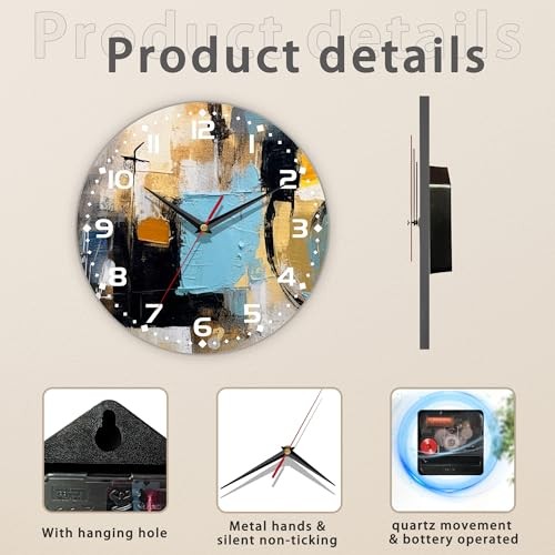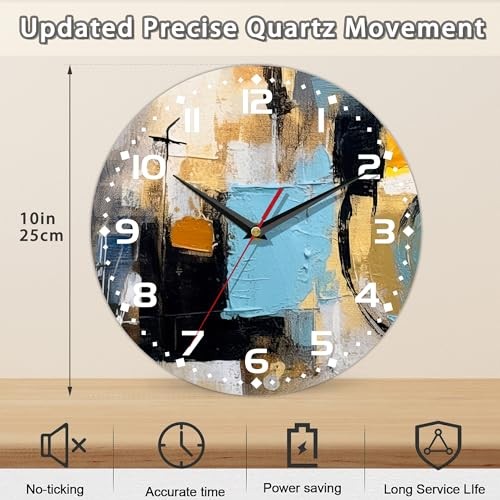 This vibrant wall clock is a stunning blend of art and function! The bold, colorful design adds a pop of personality to any room, while the silent movement keeps things peaceful. Easy to read with clear numbers and contrasting hands, it keeps perfect time. The 10-inch size is just right, and the eco-friendly materials are a nice touch. Fast shipping and great seller service make it even better—highly recommend for a stylish, hassle-free upgrade to your home or office decor!
