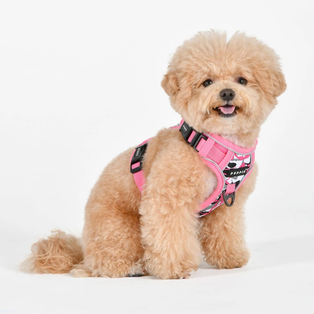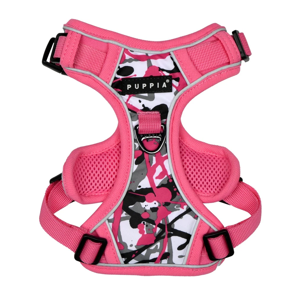The Abstract Harness H features a paint pattern and solid schemed, reflective straps, and Front and Back D-rings for lead attachment. It is a sturdy dog harness that is adjustable neck and chest with a buckles and straps and rubber label on the chest. Available in Yellow, Pink and Orange in sizes ranging from Small to X-Large. Note: Unlike human clothes, pet apparel designers have different sizing characteristics. Please do not purchase a harness based on the size of another manufactuerers/designers. Fashionable Harness for your dog: Paint pattern and solid schemed Sturdy Dog Harness H Secure: Our harness is made of high quality materials and a durable buckle to keep your dog secure No-Pull / No-Choke: Reduce pulling, increase your control over your pup, and decrease on neck and joints Features: rubber label, front & back metal D-ring and adjustable neck and chest with a buckle with a buckle closure Size: Small: 10.2"~11.8" Neck, 12.6"~16.5" Chest, 4.3" Back
