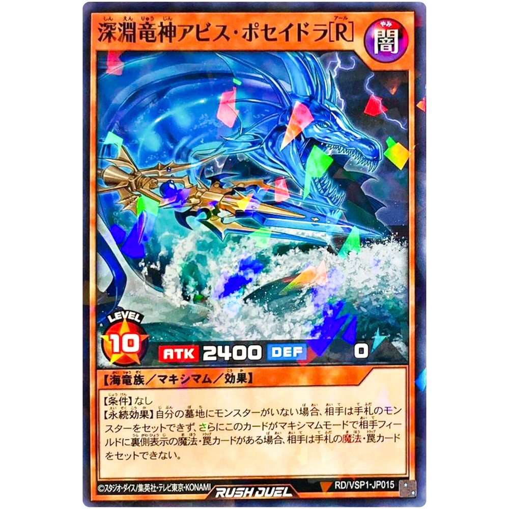 Item Discription RD/VSP1-JP015 Abyssal Dragon Lord Abyss Poseidra [R] Front Back Card Name : Abyssal Dragon Lord Abyss Poseidra [R] Character : Abyssal Dragon Lord Abyss Poseidra [R] Rarity : Normal Parallel Rare Card Number : RD/VSP1-JP015 Set : Versus Pack Maximum Force Type : Effect Maximum Monster Language : Japanese Card Condition : Near Mint Purchased cards will be clipped with cardboard, waterproofed, and shipped without any scratches or folds. Cards over $20 will be packed even tighter with a loader for each card. Shipping Policy Free shipping worldwide. Free shipping does not include tracking. There is an additional cost of US $4 for tracking. If you purchase cards totaling US $30 or more, you will receive a free tracking number. All of the products will be shipped from Japan. Economy Shipping Air mail ( no tracking ) Free Shipping Delivery time : About 2-4 weeks Standard Shipping Air mail ( with tracking ) US $4 Delivery time : About 2-4 weeks Expedited Shipping FedEx or EMS or DHL ( with tracking ) US $24 Delivery time : About 1-2 weeks Payment Policy We accept all major credit cards and Paypal payments. Return Policy We hope you will love your purchase, houever if you need to return it, we have a 30 day return policy. International Buyers Import duties, taxes, and charges are not included in the item price or shipping cost. These charges are the buyerʼs responsibility. Please check with your countryʼs customs office to determine what these additional costs will be prior to bidding or buying. If the cancellation is due to the buyer, wewill charge a fee. If there is a remote charge for your address, we will charge you for additional shipping. We are honored to receive the eBay Japan Awards 2022! I am thrilled to share that my store has won the eBay Japan Awards 2022 ! This amazing accomplishment wouldnʼt have been possible without our wonderful customers. A heartfelt thank you for your ongoing support. We will continue to improve our services, offering a diverse selection of items and top-notch customer care Thank you for helping us achieve this prestigous recognition, and we look forward to serving you in the future! Copyright ©️ 2023 Animart Japan