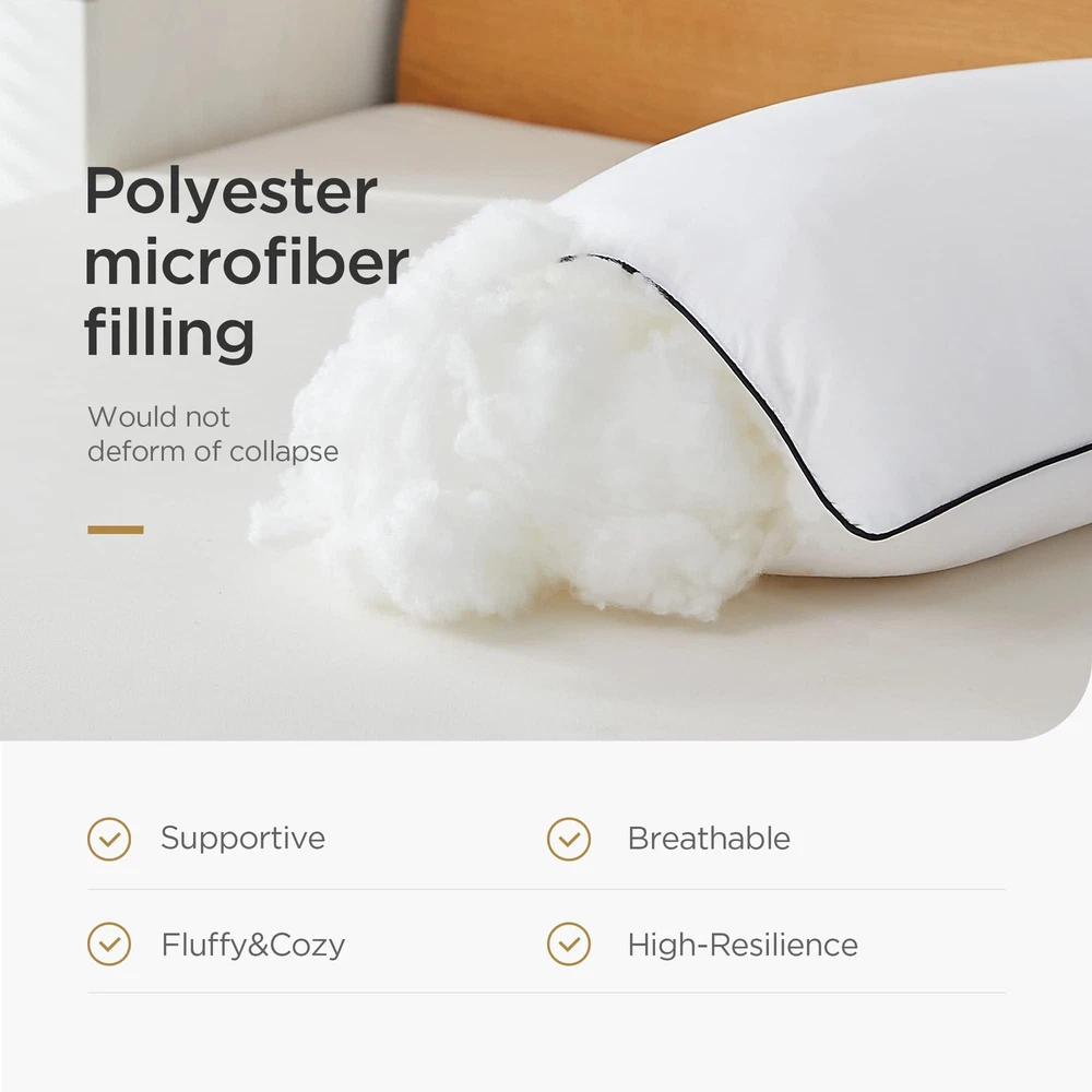 Enjoy cozy night sleep with Acanva bed pillows! Our fluffy, thick and supportive sleep pillows pop up quickly, offering the ultimate warmth and comfort. All materials are pure and clean to offer a sniffle-free night's sleep. Also ideal for guest bedroom, reading, setting up or decoration purpose. Package: Vacuum packaged NOTE: The pillow is compressed for better protection and easier shipping. Please open the package to allow it to expand into its original deep and fluffy shape. You could also put the pillow into the dryer in low heat for 10 minutes, to reach to maximum fluffiness. It will fit wonderfully into the pillow cases. Cooling Bed Pillows for Sleeping: The bed pillow cover is made of premium cotton polyester to stay soft, breathable, and dry. They are perfect for those who sweat easily or prefer a cool pillow to sleep with. Piping along the edge creates a neatly tailored look. Fluffy & Supportive: Filled with 100% microfiber similar to down which makes the pillows supportive and cozy. Whether you prefer soft or firm pillows, our comfortable pillows are for you. Enough filling makes pillows extremely fluffy. Our 4 pack bed pillows provide a great balance of supple softness and plump firmness. Comfort & Luxury at Home: With our bed pillows never go flat, no matter what kind of sleeping positions you prefer, including side and back sleepers, you can always get experience five-star hotel luxury and cozy at home every night. Packaging Design: The bed pillows are vacuum packed and rolled in a PE bag for shipping purposes. We suggest removing the vacuum bag, shaking it a few times to make it fluffy and putting them under sun bathing a few hours regularly for healthier use. Perfect Size: There are three sizes available, standard pillows 20x26 2/4pack, queen pillows 20x30 2/4 pack, king pillows 20x36 2/4 pack. The medium firm pillows down alternative filled is an ideal gift choice for your family and friends on Father's Day, Mother's Day, Birthday, Christmas, New Year, Housewarming or Back to School.