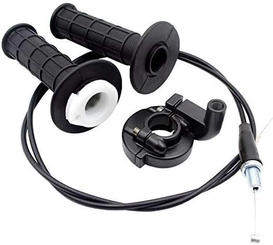 Fits for with most of 50cc 90cc 110cc 125cc 140cc 150cc 200cc 250cc 4-stroke dirt bike, mini bike, pocket bike Length of cable is 50inch Fits 7/8" ( 22mm)handle bar Made of high quality of plastic and aluminium alloys, anti-corrosion and rust Package includes: left hand grip, right hand grip with throttle tube installed, throttle housing clamp, throtle cable Throttle Clamp made of aluminium alloys Length of cable is 50 in It fit 7/8" or 22mm bar for most Chinese 50cc, 90cc, 110cc 125cc & 140cc 4-stroke dirt bike, mini bike, pocket bike. Please check pictures for more details. Color:Black Package include: 1x pair Handle Grips 1x Throttle Clamp 1x Throttle Cable