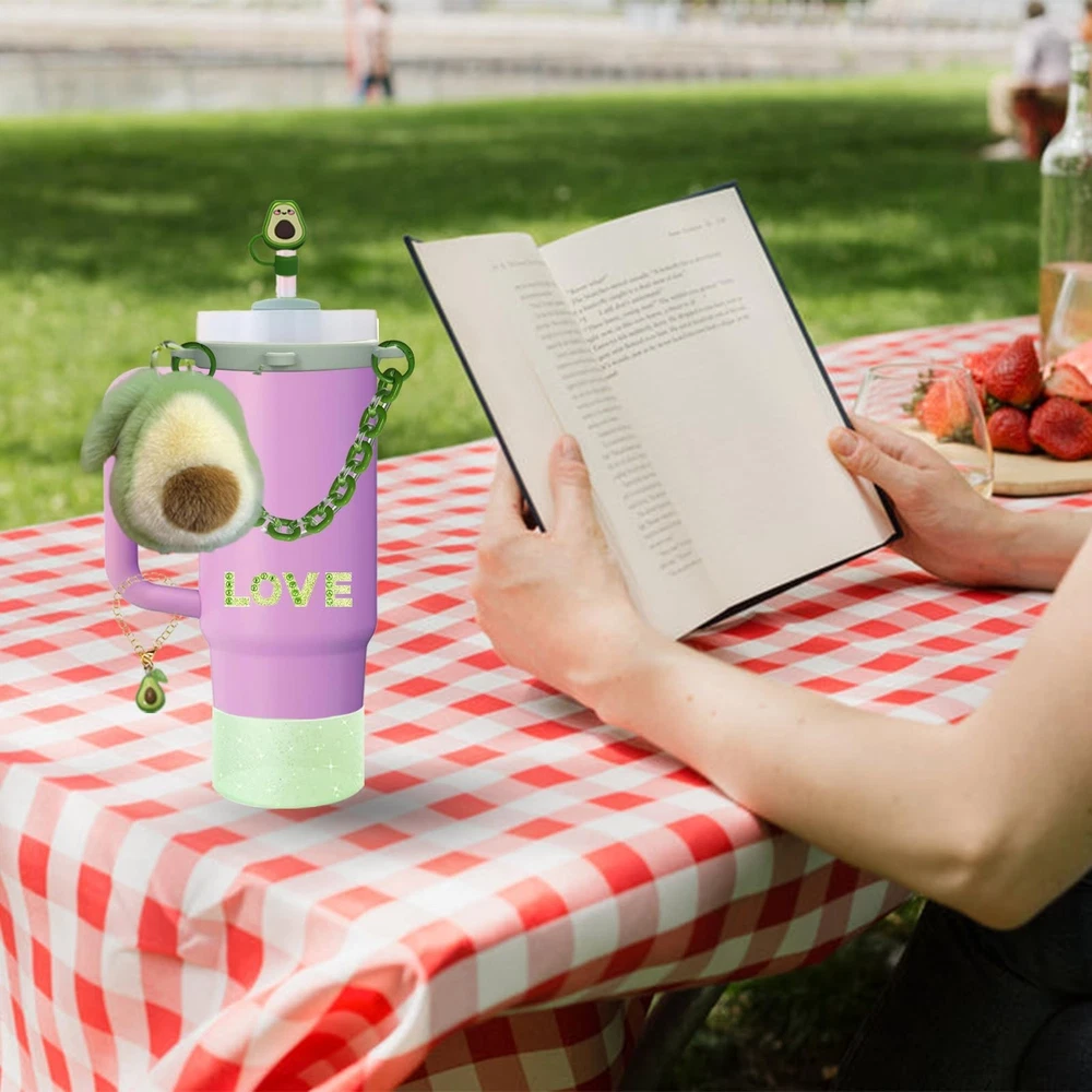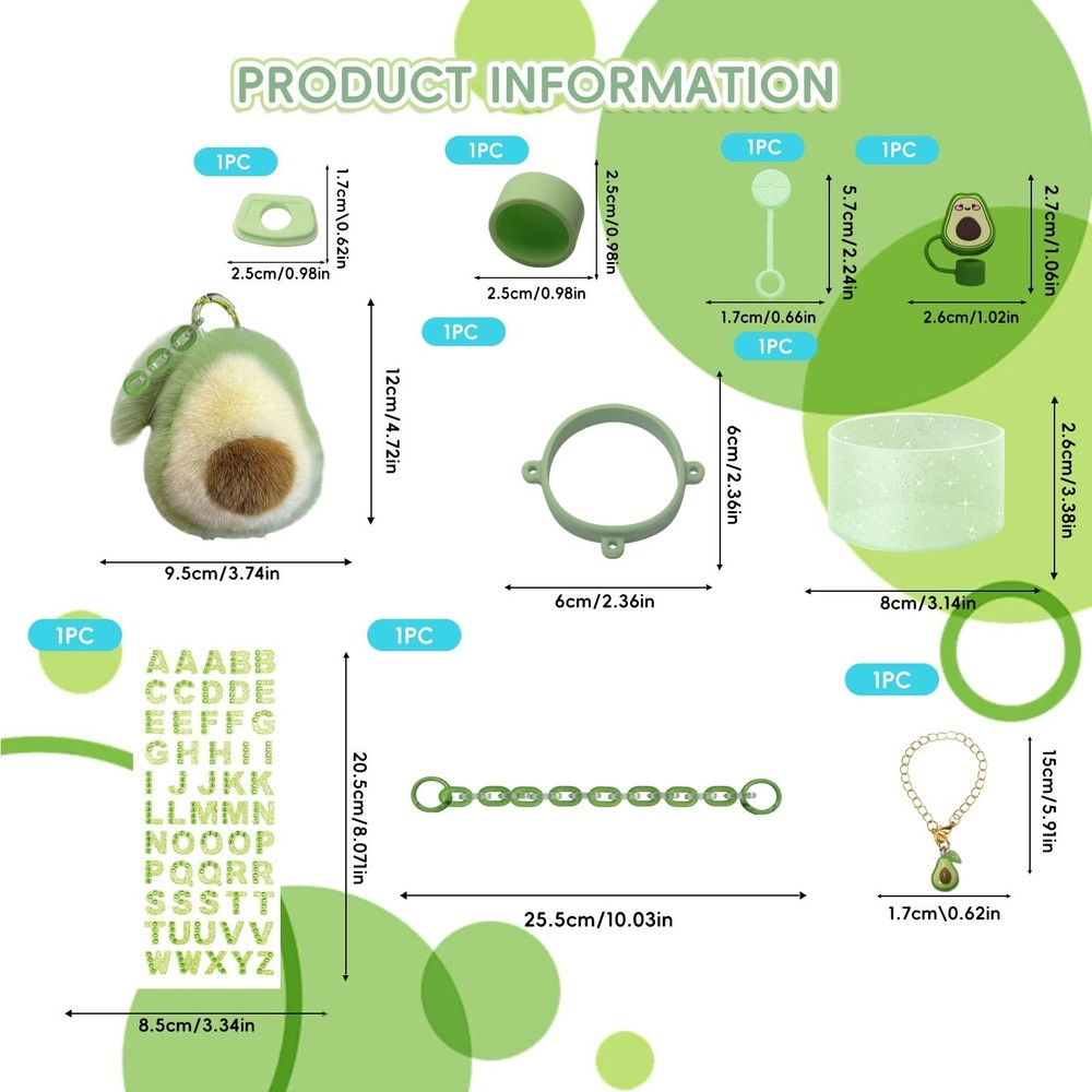 Accessories for Stanley Cups Set Including Water Bottle Handle Strap,Siliocne Cup Boot,Straw Cover,Charms for Stanley Cup 40oz & 30oz Tumbler Product Details Style: Avocado Brand: ATCCPYDM MPN: Does not apply UPC: Does not apply EAN: Does not apply Item Package Dimensions L x W x H: 5.2 x 4.84 x 2.05 inches Package Weight: 0.15 Kilograms Item Dimensions LxWxH: 3 x 2 x 1 inches Item Weight: 0.2 Pounds Brand Name: ATCCPYDM Warranty Description: NO Model Name: ATCCPYDM-STL01 Color: as show Material: Plastic, Siliocne Suggested Users: unisex-adult Manufacturer: ATCCPYDM Style: Avocado Included Components: 1 acrylic water bottle handle strap, 1 avocado straw cover, 1 pc silicone boot/1 avocado charm, 1 shining letter sticker/1 avocado pompom keychain, 1pc rubber cup ring/1 silicone spill proof stopper set Date First Available: March 24, 2025 Package Contains:You will get 1 acrylic water bottle handle strap,1pc rubber cup ring,1shining letter sticker,1 pc silicone boot,1 avocado straw cover,1 silicone spill proof stopper set,1 avocado pompom keychain,1 avocado charm.Note: The product does not include cups Acrylic Handle Strap: The chain is made of acrylic,and is paired with a high elasticity silicone ring for use,its easy to carry,Its ergonomic design provides a comfortable grip,improving the drinking experience while adding visual appeal Glitter Letters Stickers:Different letters stickers are provided, so you can choose any letters you like. You can spell out your name with a sticker. The water bottle stickers not only can make your tumbler special and shining, but also can make you identify your cup easily Avocado Element Keychain & Handle Charms: This avocado-themed cup accessories are made of resin and metal,for stanely cup 30 oz 40oz tumbler with handle combines avocado keychain and a avocado handle charms,effortlessly adding a personalized to your tumbler Protection & Decoration:Glitter boots for stanley cup can protect your bottles against accidental scratches and avoiding noisy during use.the straw cover is made of food-grade silicone, easy to clean.The pompom ball and hanging charm add a touch of personality to your tumbler Wide Compatibility:Accessories for stanley cup you can be placed in your vehicle's cup holder and use where you need it, especially when going to school,party,walking,camping,travel,sports and outdoor activities.Compatible with Stanley 30 and 40 Oz Sports Water Bottle Accessories