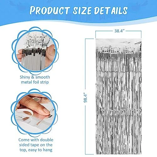 Return Policy Fast Delivery Trusted seller Accevo Silver Party Streamers 3Pack Metallic Tinsel Foil Fringe Curtains 3.2ft x 8.2ft Party Decorations for Photo Booth Photoshoot Birthday Bridal Shower Engagement Bachelorette Disco Party Decor Product Description Safe & Sparkle Material: This Silver Foil Party Streamers is Made of 2.3μPET Film Material, Non-toxic, Odorless, and Non-fading, Safe for Families with Children and Pets, This Classy Gold Foil Fringe Party Streamers Comes with an Adhesive Strip At the Back So It Would Be Very Easy to Hang On Your Wall, Window or Door, If You Don't Need Them Anymore, You Could Peel Them Off and They Won't Leave Any Residue Package Included: 3 Pack of Silver Party Streamers, The Size of Each Tinsel Party Streamers is 3.2ft x 8.2ft, It's Long Enough for Hanging on a Door or Covering a Wall Fully, Suitable for Any Parties, Please Do Not Stick the Party Streamers on Uneven or Stained Walls to Prevent it From Falling Off, This Pack of 3 Silver Party Streamers, You Can Use It Make A Surprising Entrance for Party Decorations for Your Guests, Let Them Be Amazed with Your Great DIYs with Silver Fringe Streamers Party Decorations: By Pairing This Silver Foil Party Streamers with Latex Balloons or Foil Balloons, Make the Party Enjoyable and Memorable, Diwali, Easter, Eid,Farewell, Father's Day, Get Well, Good Luck, Grandparent's Day, Hanukkah, Holi, Thank You, Quinceanera, Retirement, St. Patrick's Day, Sympathy, Independence Day, Kwanzaa, Mardi Gras, Memorial Day, Silver Theme Weeding, Silver Theme Birthday, Silver Theme Anniversary, Creating Sparkle Nice Atmosp as Decorations for Parties, Create A Shiny Photo Backdrop for the Party, Leave Beautiful Pictures Easy to Assemble: The Metallic Foil Party Streamers Come with Double Sided Tape on the Back, It Won't Easily Strip Down, So It Would Be Very Easy to Hang in Your Wall, Door, Table or Window, Ensure Surfaces are Leveling Clean and Dry Durable & Reusable: These Party Streamers are Made of Durable Tinsel with a Shiny Surface, Strong Adhesive, Easy Tear Off, Which Will Keep the Shimmer Effect All the Time, So They Can Be Reused at Another Time, and Light Up Your Parties Every Time Shipping Returns Payment Shipping Shipping is FREE to all addresses other than APO/PO boxes in the lower 48 states. All our stock ships from US-based warehouses. Shipped via USPS or UPS (depending on location and package weight) Unless stated otherwise, all orders will ship within 24-72 hours of your payment being processed. Check our feedback to see the great reviews of FAST shipping we offer. Returns Seller does not accept returns Payment We currently accept payment via eBay managed payments only. Once payment is cleared, we will dispatch your shipment within 1-3 business days. Please refer to the "Shipping" tab for more information regarding shipping speed to your destination.