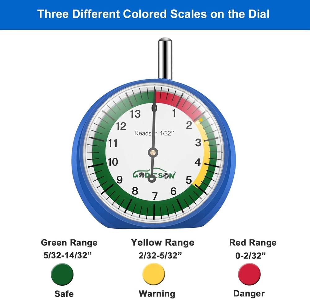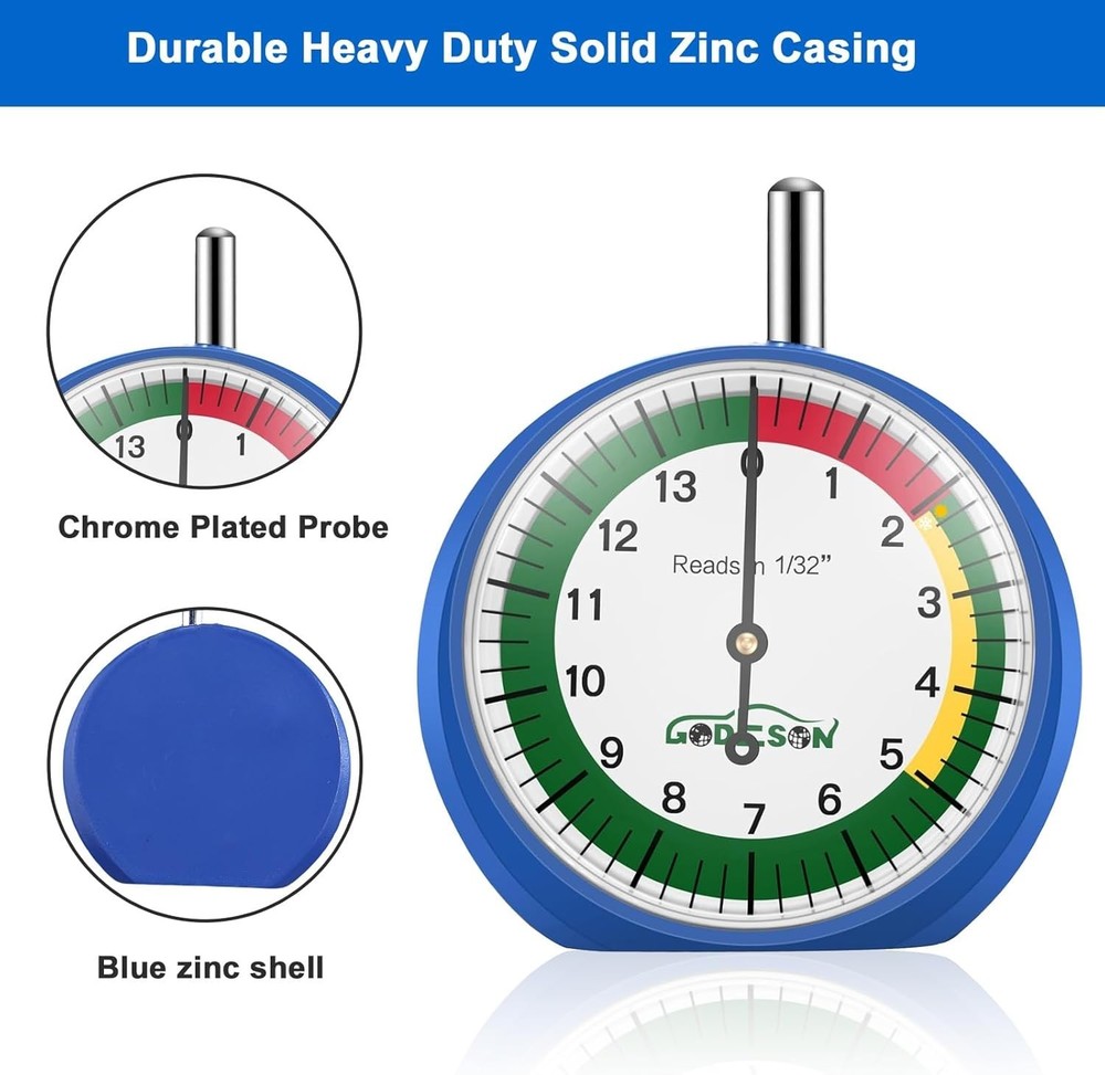 Accurate Tire Tread Depth Gauge with Ergonomic Design & Clear Readings - 88703 ‹ › ‹ › ‹ › ‹ › ‹ › ‹ › ‹ › ‹ › ‹ › Accurate Tire Tread Depth Gauge Precision Engineering: Reads in 1/32 inch increments for precise tire depth measurement. Enhanced Usability: Ergonomic design that comfortably fits in your hand, making tire maintenance a breeze for men and women alike. Color-Coded Zones: Features colorful zones on the gauge to clearly indicate tire health under varying weather conditions, allowing for quick visual assessments. Easy-to-Read Dial: 2-inch dial provides legible and straightforward readings, ensuring you can accurately assess your tire tread depth without any fuss. Robust Construction: Crafted from durable solid zinc casting for enhanced longevity and reliability. Stylish Design: Features a striking blue casing and a crisp white dial, merging functionality with a brief yet stylish aesthetic. Why Choose Our Tire Tread Depth Gauge? In the world of automotive care, precision is paramount. Our Accurate Tire Tread Depth Gauge combines exactness with a user-friendly design, ensuring that you can assess your tire condition effortlessly. The colorful zones allow for quick assessments, promoting safer driving in unpredictable weather. Whether you are a seasoned mechanic or a DIY enthusiast, this gauge is an essential tool. Don't compromise on safety - elevate your driving experience with our durable and ergonomically designed Tire Tread Depth Gauge. Invest today and enjoy peace of mind on every journey! Shipping Free & Fast Shipping - We offer free shipping to most of the USA with a normal delivery time of 3-7 days. However, due to the current situation, additional delivery time (up to 3 weeks) may be required for some items. Alternative Carriers - We may use alternative carriers (e.g. USPS, FedEx, UPS, etc.) to ensure your package arrives safely and on time. Due to the use of multiple carriers, we are unable to provide a tracking number automatically. Handling Time - Orders are processed and shipped within 1-2 business days of receiving cleared payment. Shipping Restrictions - Shipping to Alaska, Hawaii, Puerto Rico, Guam, and other US territories may incur shipping charges or delivery restrictions. Please contact us before ordering, or your order can be refunded/cancelled. State Restrictions - There may be restrictions based on your state of purchase. For example, certain items may not be shipped to California due to state regulations. Contact for Tracking Updates - If you require tracking updates or have any concerns about the delivery of your order, please feel free to contact us, and we will be happy to assist you. Return 30-Day Hassle-Free Returns - We want you to be completely satisfied with your purchase. If you are not, you can return the item within 30 days of receiving it for a full refund or exchange. Easy Return Process - To start a return, simply contact us and we will provide you with a prepaid return shipping label and detailed instructions. Restocking Fee - There are no restocking fees for returns. However, the buyer is responsible for return shipping costs if the return is not due to a seller's error. Refund Processing Time - Refunds will be processed within 5 business days of receiving the returned item in its condition. Payment We accept all major credit cards, PayPal, and Apple Pay for your convenience. Your payment information is secure and encrypted to ensure a safe and seamless transaction. Please complete your payment within 3 days of purchase to avoid any delays in shipping. Feedback Your feedback is extremely important to us. We strive to provide the best products and customer service possible. If you are satisfied with your purchase, please take a moment to leave us a positive review. If you have any concerns or issues with your order, please contact us before leaving negative feedback. We are committed to resolving any problems and ensuring your satisfaction. Contact Us If you have any questions or concerns, please feel free to out to our customer support team. You can contact us through the eBay messaging system. We are available Monday to Friday, 9:00 am to 5:00 pm EST, and we will do our best to respond to your inquiry within 24 hours. Buy it now and enjoy a pleasant shopping experience! Placement on Vehicle: Front,Left,Lower,Rear,Right,Upper OE/OEM Part Number: Tire Tread Depth Gauge Material: Stainless Steel,Zinc Finish: Glossy Type: Tire Pressure Gauge