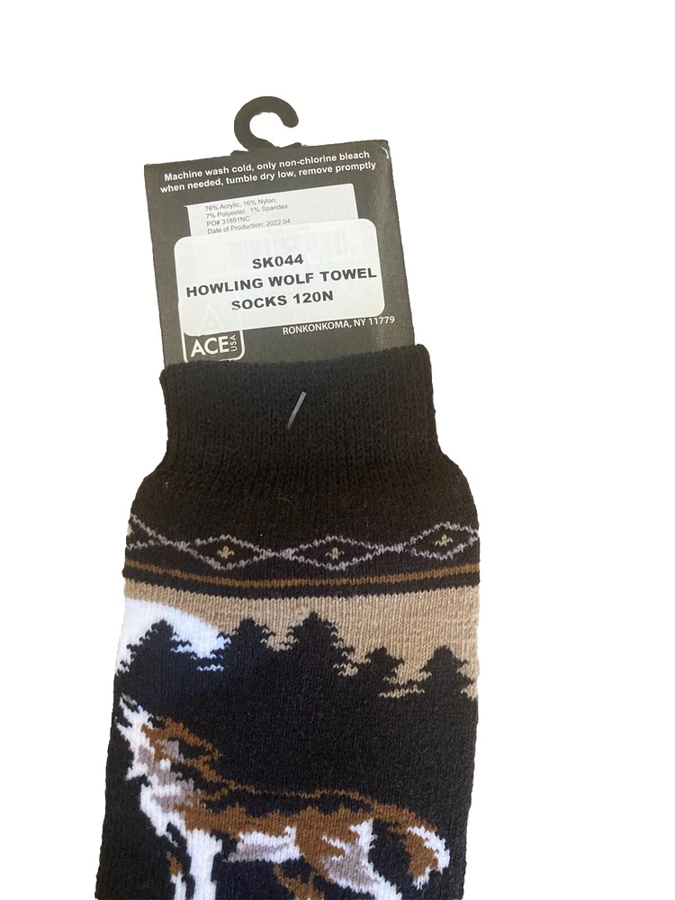 Ace USA Howling Wolf Towel/Cozy Unisex Adult Socks. Condition is New with tags. Shipped with USPS Ground Advantage.