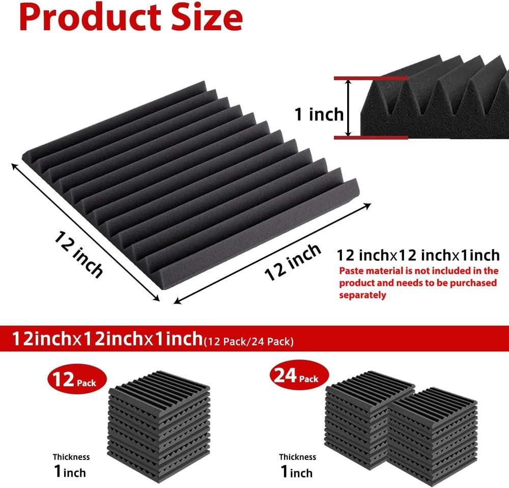 Product Description Acoustic Panels 12"X 12"X1" High Density Sound Absorbing Studio Wall Foam Tiles Description: Produced by environmentally polyurethane foam. specific acoustic characteristics, make it not only has the sound absorption characteristicseffectively, without any harm to human body Specifications: Material:nvironmentally polyurethane foam Color:Black、Blue、Gray Size:30x30cm(12”x12") Thickness:2.5cm / 1" Features: -Suitable for sound recording studio, listening room, home theater, KTV, and all kinds of public places. -The sponge is the ideal sound insulation, sound-absorbing, heat insulation material -Sound-absorbing sponge is on the basis of sponge for further processing, acoustic inside the sponge and reflection of the increase in the number so as to achieve the noise, sound-absorbing effect. Packing List: 12/24/48/96 x Foam Sound Proof Panel About Us Payment Shipping Terms Contact Us We are NOT selling products. We are selling SERVICES! This is our philosophy in this ebay business. Our goal is to provide excellent before and after sales services to all our customers. We will much appreciate with fast payment ,thank you so much! 1. We ship from USA Stock . We will provide a tracking number after shipping. 2. We will process and ship the package within 1 business days. If you have any issue with the transaction, please contact us before leaving Negative feedback. We will respond and solve your issue ASAP. Please contact us via eBay Message .Thank you so much ! About Us We are NOT selling products. We are selling SERVICES! This is our philosophy in this ebay business. Our goal is to provide excellent before and after sales services to all our customers. Payment We will much appreciate with fast payment ,thank you so much! Shipping 1. We ship from USA Stock . We will provide a tracking number after shipping. 2. We will process and ship the package within 1 business days. Terms If you have any issue with the transaction, please contact us before leaving Negative feedback. We will respond and solve your issue ASAP. Contact Us Please contact us via eBay Message .Thank you so much ! Hot Sale !! TWS Bluetooth headphone Wireless Earbuds Sporting Headset Premium Sound W/ Mic 10.95 USD 12.99 USD Free shipping 16% off Professional Camera Phone Holder Tripod Stand for Smartphone iPhone Samsung+ Bag 11.35 USD 18.89 USD Free shipping 40% off LED Corn Light Bulb 300W Eq 168-Chip E26 5000lm 30W Cool Daylight 6000K 9.99 USD 12.99 USD Free shipping 23% off Shoe Rack 10 Layers 9 Shelf Shoes Standing Cabinet Storage Organizer Dustproof 19.99 USD 29.99 USD Free shipping 33% off For Magsafe Car Mount Charger for iPhone Magnetic 15W Dash Window Charging Mount 19.99 USD 24.99 USD Free shipping 20% off Adjustable Universal Tablet Stand Desk Holder Mount For Cell Phone iPad iPhone 9.99 USD 14.95 USD Free shipping 33% off powered by