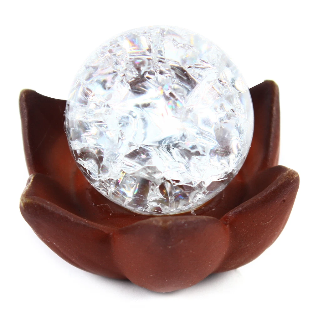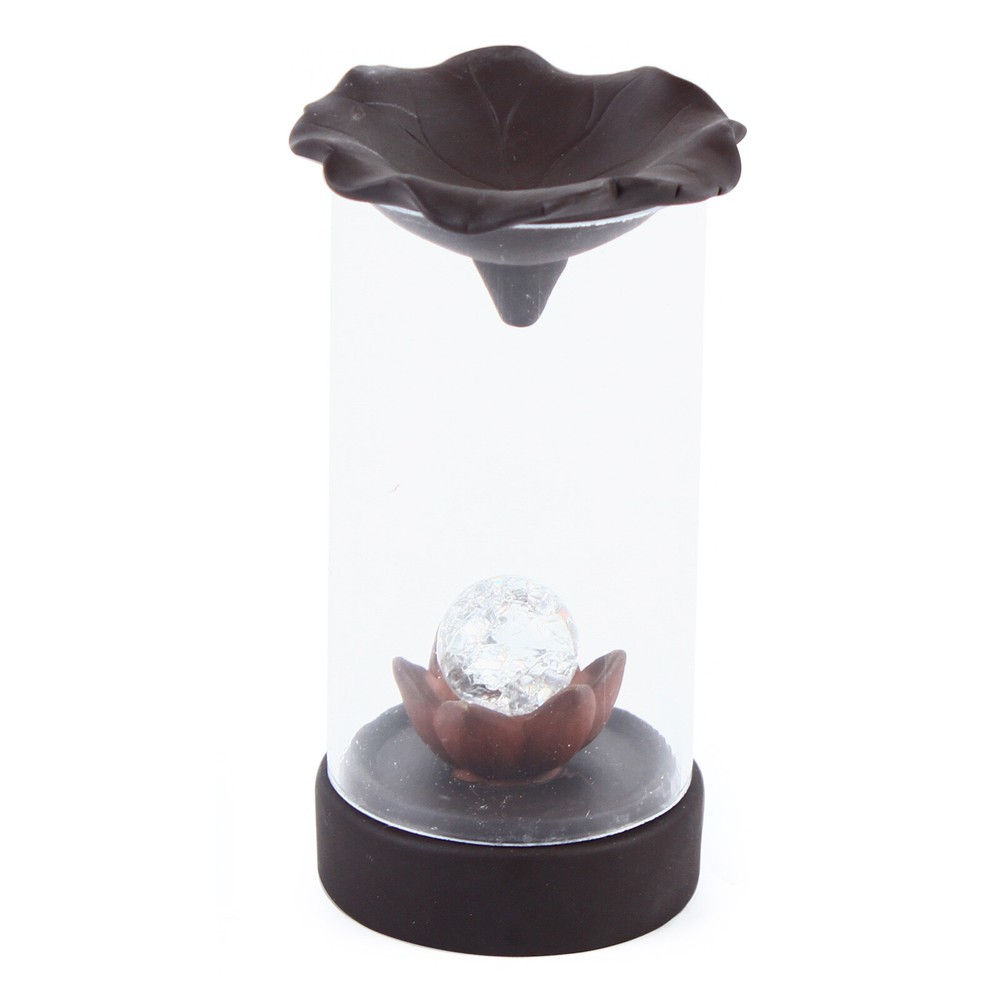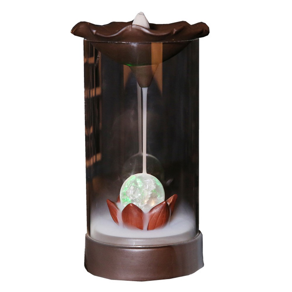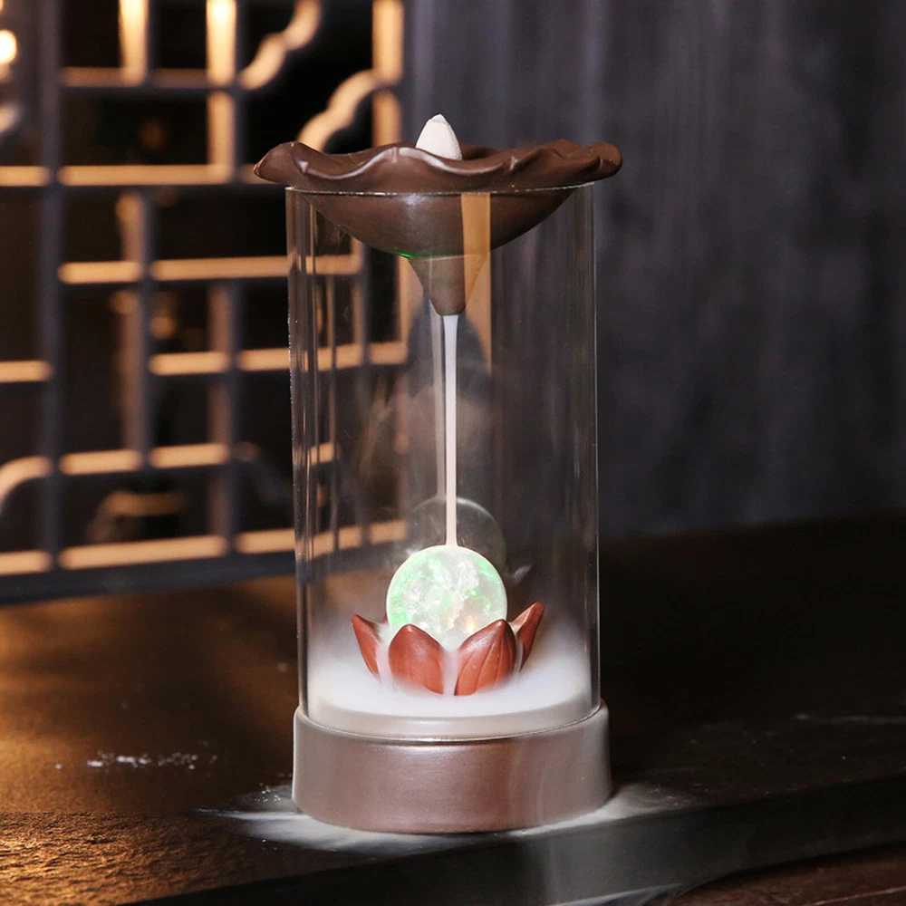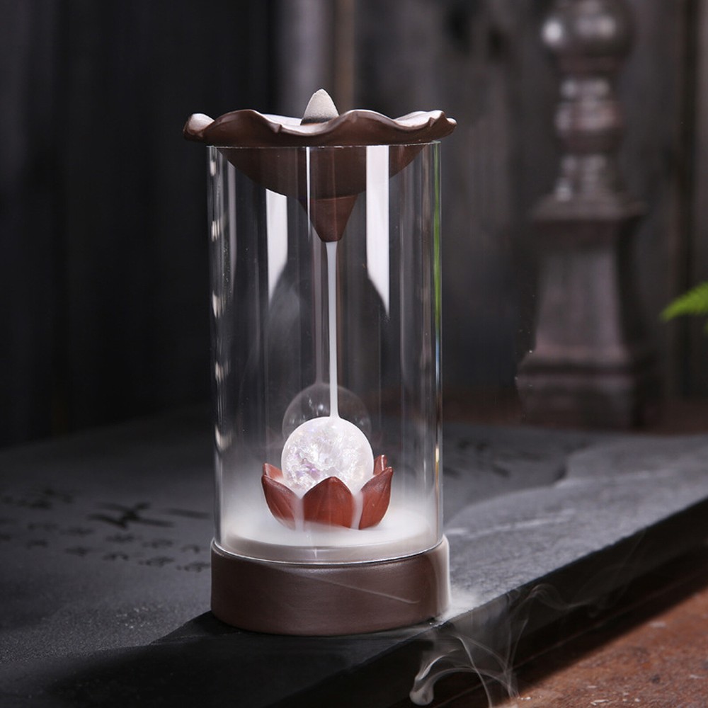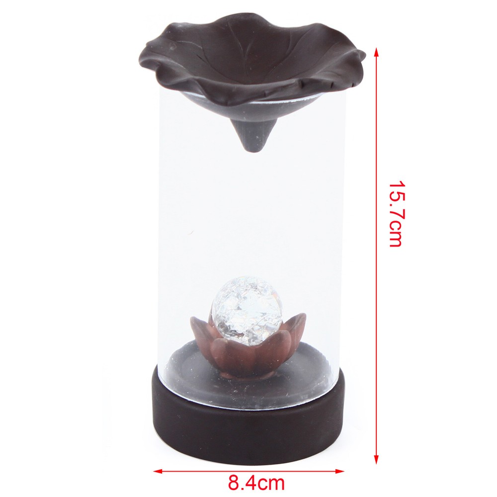 Acrylic Backflow Lotus Incense Burner Holder LED Crystal Ball Ceramic Censer
