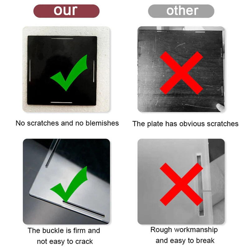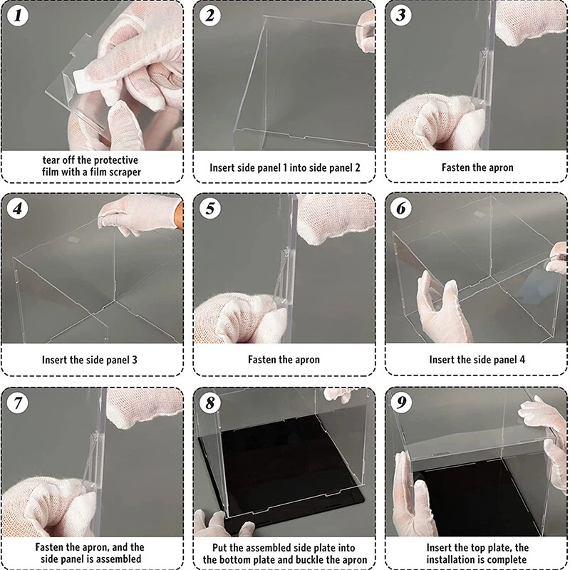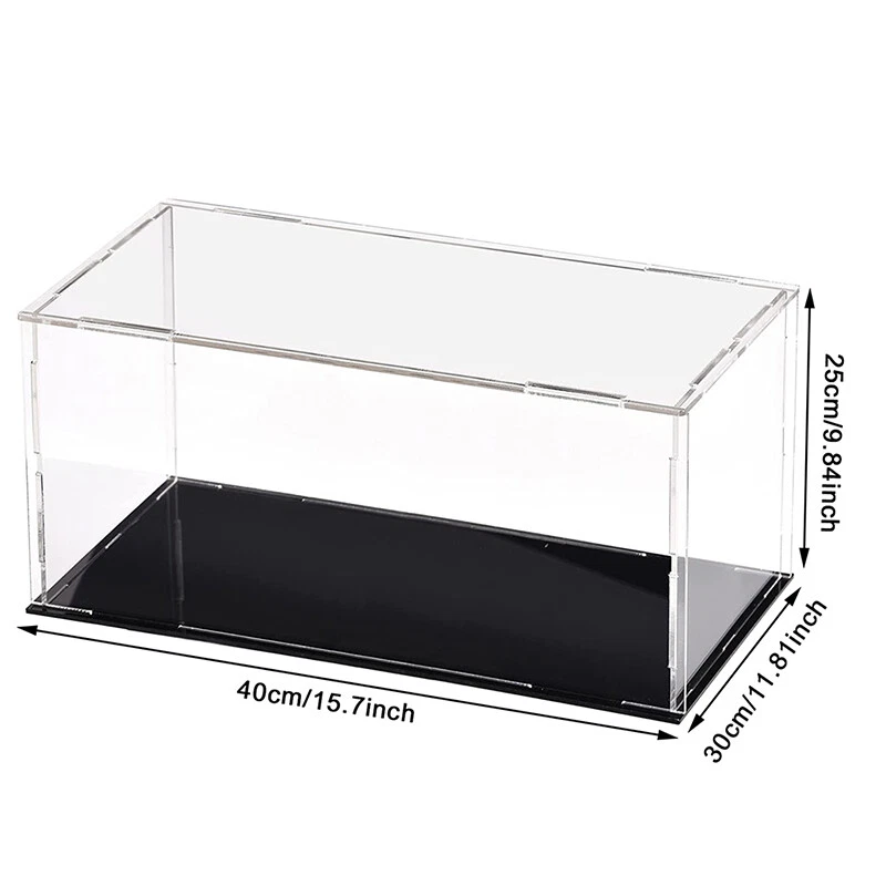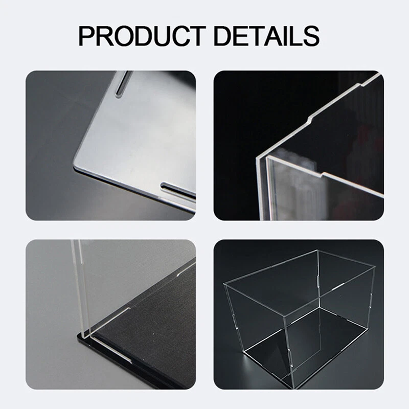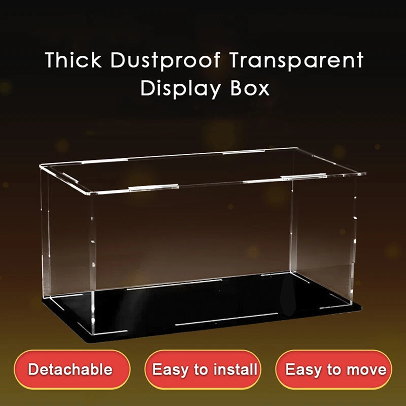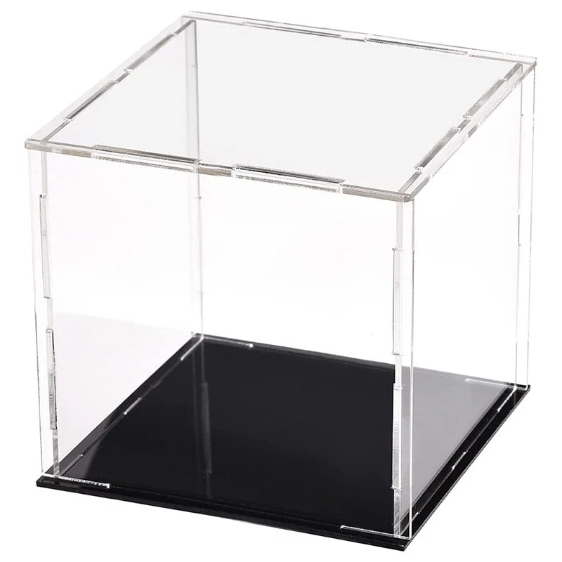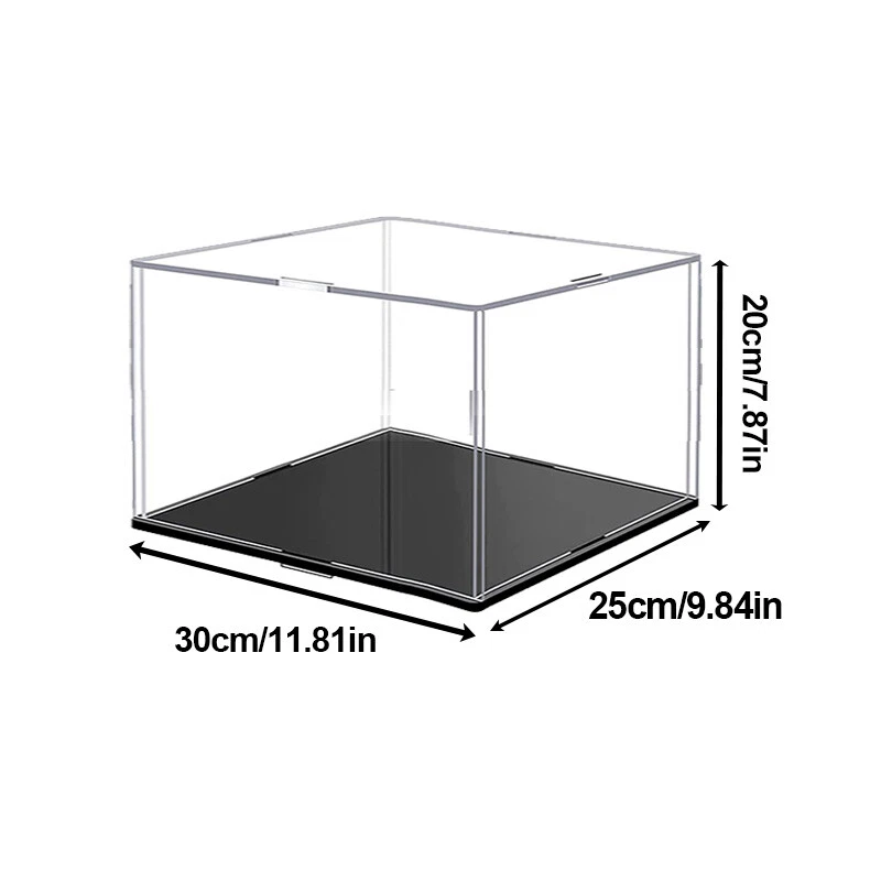 Describe Product Name: Model Display Box Material: Acrylic Color: Black Base, Transparent Box Shape: Rectangular Horizontal Section Thickness: black base 3mm, transparent plate 2mm Uses: for displaying figurines, jewelry, collectibles, glassware, and more. Features: - The display case is easy to assemble without glue and is wrapped on each side to prevent scratches during shipping. - Dustproof and extremely clear for use on figures, action figures, figure models, car models and more. - It's suitable for giving your collection a stylish look and protecting your keepsakes or dolls from dust and odours. - These display boxes are great for anything you want to display, store your art materials, collectibles, and more. Keep your collection dust-free, reduce sunlight and UV radiation, and delay plastic aging. - Sturdy and easy to clean. It's well-balanced and sturdy enough not to be knocked over easily. - Protect and display your favorite collectibles such as figurines, models and more. - It's suitable for displaying figurines, jewelry, collectibles, glassware, and more. Package includes: 1Pcs Model Display Box Notes: 1. When splicing display boxes, you need to use rubber bands to secure the connecting parts, otherwise the connection will not be firm. 2. Manual measuring, please allow 1 ~ 3mm error,thank you. 3. Due to the difference between different monitors, the picture may not reflect the actual color of the item. We guarantee the style is the same as shown in the picture.