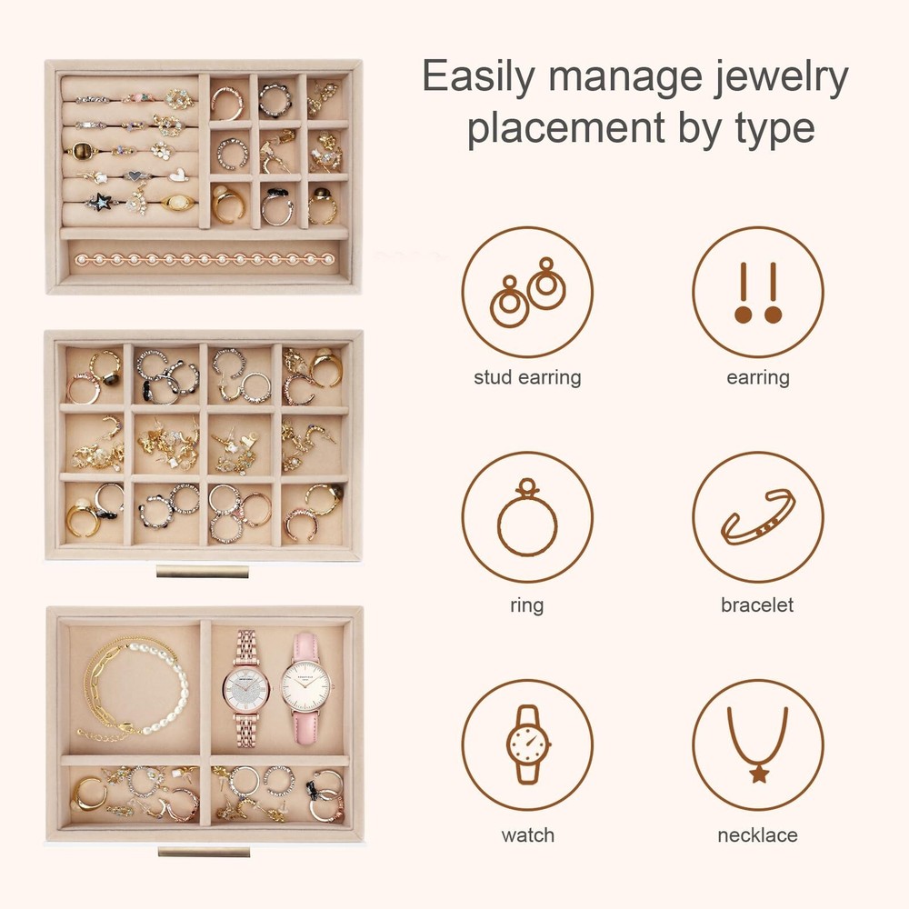 $ 91.342-Layer Jewelry Organizer Box with Removable Tray for Necklaces Rings Earrings