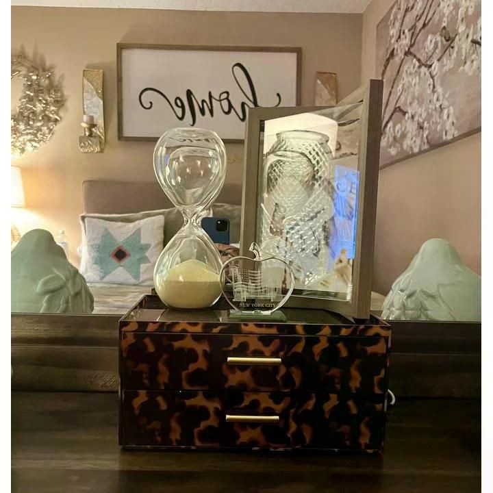 Organize your vanity or any other space in trendy style with the Stacking Drawers . This pack of two drawers is made of acrylic and covered with leopard print for an attractive look you'll love while helping maintain a clean and organized space. Plus, they come with an extended gold-tone handle for easy opening.