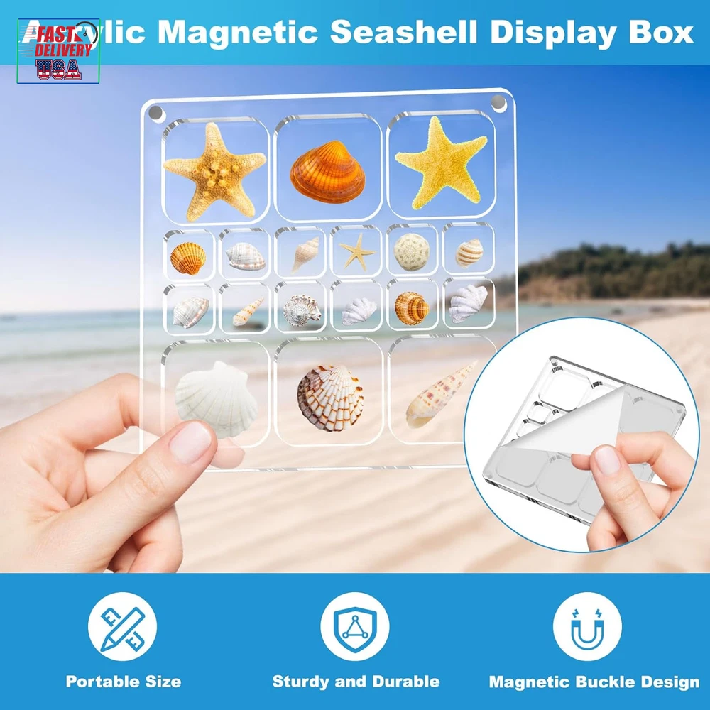 Store New Arrivals Add to Favorite View Feedback Contact Acrylic Magnetic Seashell Display Box,Clear Sea Shell Display Box,Beach Magnet Storage Organizer Case for Seashell Diamond Beads,18 Grids,Transparent,1 Pack Description Frame Size 5.8 x 5.8 inches Item Dimensions L x W x H 4"L x 3"W x 0.6"H Mounting Type Tabletop Mount Color 1 Pack-18 Grids Shape Rectangular Frame Material Acrylic Product Dimensions 4"L x 3"W x 0.6"H Do you feel sorry for the beautiful little seashells you see at the seaside but don't have the right box to treasure them? Our acrylic magnetic seashell display box can just help you solve this problem. The high transparency acrylic material makes every detail of your seashells clearly visible, keeping them away from dust and damage, and displaying the beauty and stories from nature to your family and friends to share the joy and make your life more full of beauty and surprises. This is not only a sea shell display box, but also a powerful assistant for you to record beauty and create art. Whether you want to capture the depth and serenity of the sea or the gentleness and warmth of the sunset, let the shells shine in the display box, transforming ordinary moments into extraordinary memories, making this moment as dreamy as a dream, and becoming unforgettable and precious memories. This shell display box measures 5.8*5.8*0.4in, easy for you to carry around. There are 18 square compartments for storing a variety of small shells to keep your collection organised. What's more considerate is that 2 tweezer is included, which makes you more comfortable in picking up shells. This display box can accompany you to record every beautiful moment on the beach, and keep those unique small shells safe, leaving unforgettable memories for your trip. Crystal Clear Visibility:Made of high quality acrylic,ensuring that your treasured seashells are clearly visible and undamaged.The transparent design of the box allows every delicate detail of the shells to be perfectly presented,as if the flavour and beauty of the ocean were gathered in it,adding a touch of elegance and mystery to your treasured items.You can rest assured of long-term use without worrying about quality.Note:The product comes with a protective film,please tear it off before use. Magnetic Locking Design, 2 Ways to Open: Our acrylic seashell display box is equipped with magnet adsorption device on all four corners to ensure that the lid fits tightly with the box and is not easy to fall off, which is both safe and stable. Two convenient ways to open, so you can display and access the shells easily and freely. You can simply push the lid counterclockwise or clockwise; or you can choose to open the lid directly upwards. Equally convenient and time-saving. Multifunctional Storage Organisation Solution: In addition to storing seashells, it can also be used to store small stones, crystals, diamonds, nail art rhinestones, earrings, etc., keeping your items in order and easily accessible. Its versatility allows you to easily meet a variety of storage display needs without having to buy multiple storage boxes. Acrylic Magnetic Seashell Display Box,Clear Sea Shell Display Box,Beach Magnet Storage Organizer Case for Seashell Diamond Beads,18 Grids,Transparent ABOUT US We offer the best prices around on high quality products. Our E-store includes media such as books, movies, music and games while offering electronics, toys, sporting apparel, clothing, tools, general home, garden items and more. SHIPPING We are always working hard to ensure your package arrives as soon as possible. Please understand that some factors like weather, high postal traffic, and the performance of shipping companies are outside of our control. We offer free shipping to the lower 48 states and ship within 2 business days of payment, usually sooner. We do not accept P.O. Boxes. Please provide a physical address. For shipping outside of the continental USA, we only use eBay's Global Shipping Program.The item is shipped to KY and then sent to the rest of the world. International customers are responsible for all duties and taxes. Continue to check out in order to calculate costs for shipping the item to your country. Messages regarding eBay's Global Shipping Program MUST be directed at eBay EXCLUSIVELY. RETURNS We offer a 30-Day Return Policy on items which you are not completely satisfied with. You have the option for a full-refund or an exchange of the item. No returns are available on items shipped outside of the USA. PAYMENT We accept PayPal. CONTACT US This page content is yet to come Please ad us to your favorite seller and visit again later Thank You CUSTOMER SATISFACTION We try our very best to make sure every customer is completely satisfied. If there's a problem, message us! We're happy to help. WE ACCEPT Copyright © 2021 AutoDS. | All Rights Reserved
