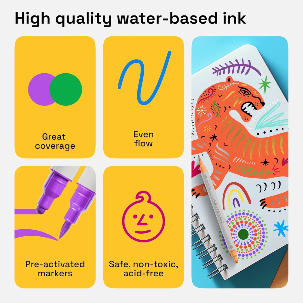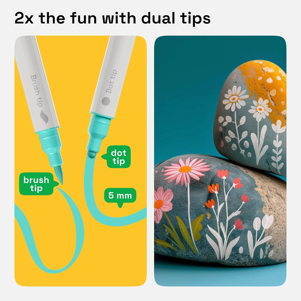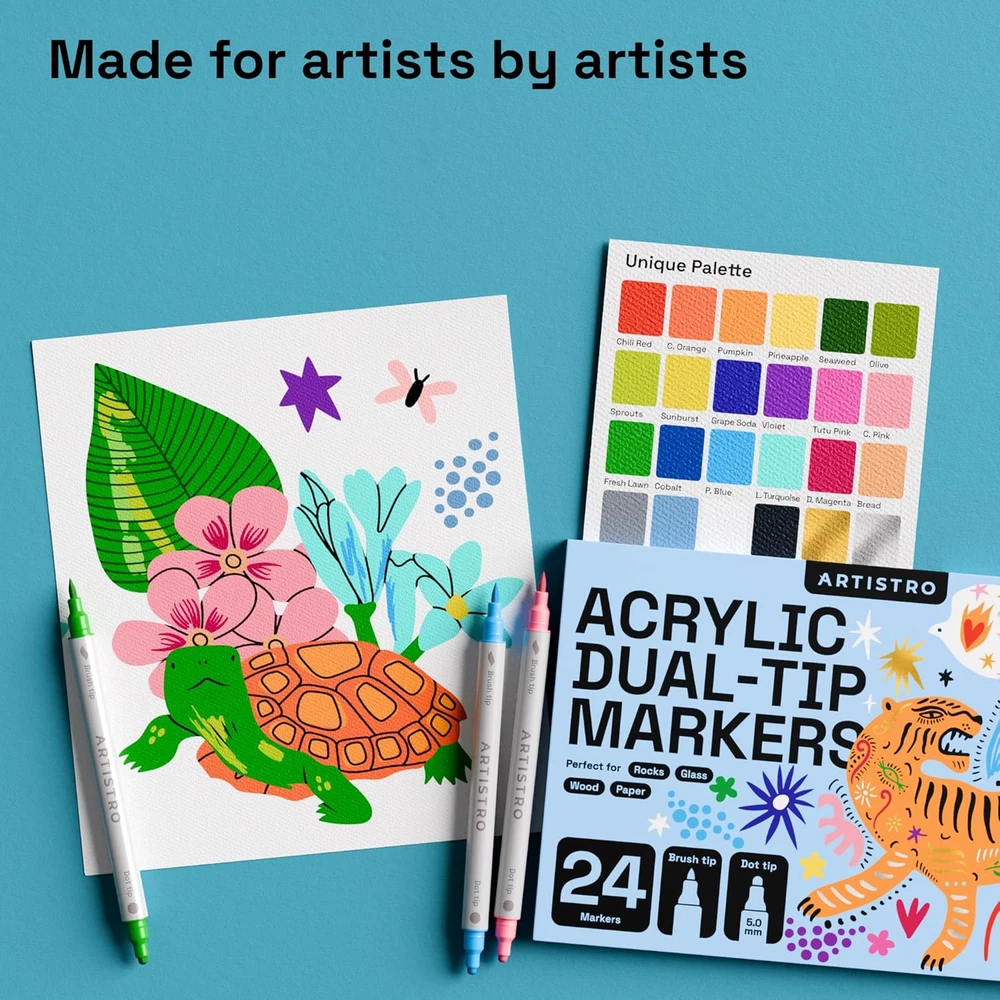 Store New Arrivals Add to Favorite View Feedback Contact Fast deliveries to the customer's home Quality customer service John Make the customers happy! Acrylic Paint Pens, Acrylic Paint Markers Dual Tip Markers, Acrylic Markers for Fabric, Canvas, Rock, Glass, Wood, Paper, DIY, Paint Markers (Dual Tip Dot + Brush, 24) Description WARNING: Store acrylic markers horizontally to maintain ink flow and prevent drying. DUAL TIP: Our acrylic paint markers come with 2 tips for 2x the fun. The acrylic paint pens are equipped with a dot tip and a brush tip. Get the most out of your paint pens acrylic markers with a vibrant palette of colors! PREMIUM QUALITY: This pack of dual tip acrylic paint pens features high-quality acrylic paint that dries opaque, so you don’t have to make a second layer! The ink in the acrylic paint pens dual tip is water-based and features a durable nib. PRE-ACTIVATED: Unlike usual push down markers, our paint marker set has cotton nibs that are pre-activated, making them perfect for kids! MULTI-SURFACE: Artistro craft markers are perfect for almost any surface. Paint on rocks, wood, glass, or more with these dual brush pens! Or use them as fabric paint pens. PERFECT GIFT: The beautiful package of the paint markers makes it an easy gift to any art-lover, whether beginner or pro, adult or kid! Plus, this dual tip marker set conforms to ASTM D-4236 safety standards. Product Description Item Weight 8.8 ounces Style Dual Tip Dot + Brush Number of Items 24 Color Multicolor Material Type Plastic, Metal Line Size 0.5 millimeters Manufacturer Part Number DTBDA0024 Ink Color Multicolor Recommended Uses For Product Calligraphy, Sketching, Drawing, Coloring, Writing, Painting Point Type Dual Tip Package Dimensions 9.92 x 6.42 x 0.47 inches Size 1 Count (Pack of 24) ABOUT US We offer the best prices around on high quality products. Our E-store includes media such as books, movies, music and games while offering electronics, toys, sporting apparel, clothing, tools, general home, garden items and more. SHIPPING We are always working hard to ensure your package arrives as soon as possible. Please understand that some factors like weather, high postal traffic, and the performance of shipping companies are outside of our control. We offer free shipping to the lower 48 states and ship within 2 business days of payment, usually sooner. We do not accept P.O. Boxes. Please provide a physical address. For shipping outside of the continental USA, we only use eBay's Global Shipping Program. The item is shipped to KY and then sent to the rest of the world. International customers are responsible for all duties and taxes. Continue to 'check out' to calculate costs for shipping the item to your country. Messages regarding eBay's Global Shipping Program MUST be directed at eBay EXCLUSIVELY. RETURNS We offer a 30-Day Return Policy on items in which you are not completely satisfied with. You have the option of a full-refund or an exchange of the item. No returns are available on items shipped outside of the USA PAYMENT We accept PayPal. CONTACT US This page content is yet to come Please ad us to your favorite seller and visit again later Thank You CUSTOMER SATISFACTION We try our very best to make sure every customer is completely satisfied. If there's a problem, message us! We're happy to help. WE ACCEPT