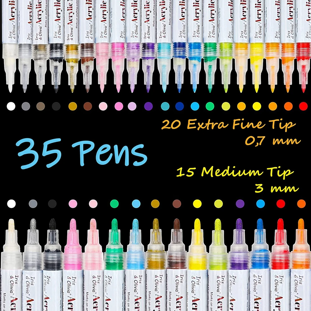 paint pens paint markers, paint pens acrylic markers, acrylic markers paint pens, acrylic paint pen, acrylic paint pens for rock painting, paint markers for rocks, paint for rocks, paint pens & markers, paint marker set, paint pen set, rock painting markers, acrylic marker set, glass tip pens, water based paint markers, odor rocks, acrylic paint markers fine, paint pens, markers & daubers, paint tip pens, plumones acrilicos, acrylic paint pen set, acrylic paint market, paint markers for rock painting, water based acrylic paint pens, acrylic paint markers for canvas painting, acrylic painting pen, paint pins, glass pen glow in the dark ink, paint pens rocks, paint markers large tip, rock paint pens, ceramic paint marker, paint marker for rock painting, paint pens acrylic, acrylic pens for rock painting, acrylic paint pen sets, paint markers for ceramics, marker paint, paint markeers, pasco painting markers, paint to paint rocks, acrylic paint pens medium tip, paint pens for acrylic painting, acrylic paint pens for nails, paint pen markers, paint marker pen, wide tip paint markers, acrylic painter, acrylic marker pens, paint pens acrylic set, arylic paint markers, pens for ceramic, acryllic paint pens, paint oens, marker acrylic, black water based paint pen, acrylic paint markers pens, acrylic pens rock painting DOUBLE PACK -Each package includes both 20 fine tip (0,7 mm) acrylic pens and 15 medium tip (2-3 mm) acrylic paint markers for both detailing and filling large areas. Permanent Water Based Acrylic Pens so the Paint Pens Non Toxic MANY USES - Wine Glass Painting, Rock Painting, Wood, Fabric, Stone, Metal, Plastic, Canvas, Paint for Mugs, for Ceramics and much more for both Smooth and Porous Surfaces. PREMIUM QUALITY - Highly pigmented Color, Vivid, smooth writing Permanent Paint; long lasting nylon tips. Acrylic Pens for Painting Solvent-Free, Fast drying, opaque, Permanent on most Surfaces, Acrylic Markers fit for Indoor and Outdoor use. PERFECT GIFT FOR ALL - Acrylic paint markers set. Acrylic Pen perfect for artists, art students, children, teens and adults to use on arts and crafts projects. Great acrylic marker for paper, ceramic paint pens, rock painting pens, paint pens for wood, glass paint, canvas paint pens, plastic paint. MULTI-PURPOSE - Enjoy creating art projects on a variety of surfaces like Rock painting, pens for glass painting, paint markers for glass painting, fabric markers paint, paint pens for shoes, paint pens for vinyl, Easter plastic eggs, Christmas ornament, Halloween pumpkin painting, custom mugs