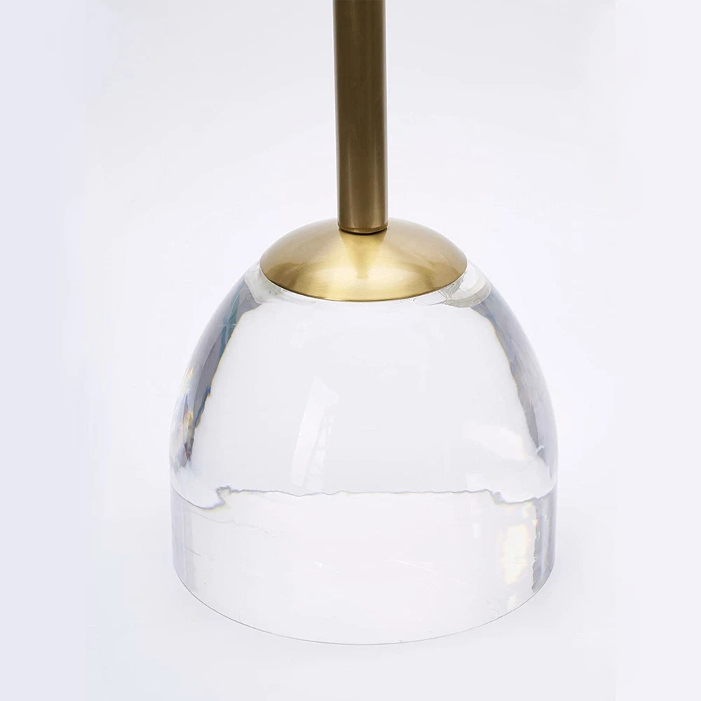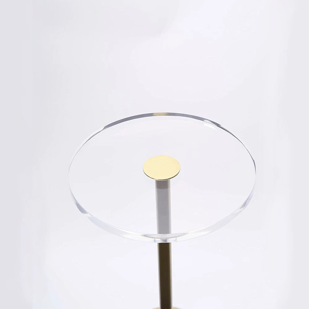 Acrylic tea table with gold brushed frame. This product is not affiliated to any designer and is a reproduction item. Free Shipping Over $49.99* Details Acrylic Side Table - 25"H x 12"W x 12"D Product Description: Acrylic tea table with gold brushed frame. This product is not affiliated to any designer and is a reproduction item.