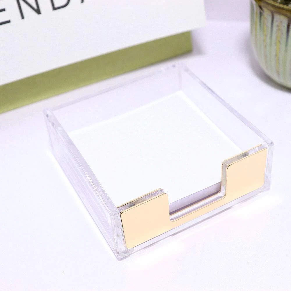 ❣Size: 3.7" L x 3.9" W x 1.3" H (95mm x 100mm x 33mm); ❣Application: desk organizer, helps personalize your desk area, sleek and professional. ❣Compatible with Notes Pad (3" x 3") ❣Minimal simplicity meets perfect suitability in a compact, gorgeous post-it notes tray. Designed to hold pop-up notes or any type of 3x3-inch post-it notes neatly organized in one place! Pretty square paper never looked this cool and classy! ❣De-Clutter Your Desk❣ Sticky memos are so easy to misplace! One minute they're everywhere; when you need them - they're nowhere! Give them a great-looking ''home'' that will nicely keep them together on your workspace, without the ''brick heavy'' look of cheap, robust cubes. ❣A Stylish Piece of Decor❣ Probably the best way to up-style sticky notes that come in all rainbow colors! Our transparent-style sticky note holder can keep the original color of your post-it notes well, clearly and conspicuously. Equally perfect for businessmen, teens, professionals, home desks for classrooms. ✨Modern & Stylish: This crystal clear acrylic note pad holder has a very modern and stylish design that is aesthetically pleasing and universally suitable for any room or desk décor. ✨SIZE: The outer dimensions of the note pad holder are approximately 3.95” x 3.95” x 1.75”. Any 3 x 3 inch post it notes, fun sticky notes, mini memo sheets, memo cube paper, memo cube pads or self-stick notes FIT PERFECTLY INSIDE! Just place them in it & simply pull off the notes when you need them. ✨4 anti-skidding mats on the buttom, can stay firmly on your desk or drawer, without damaging the surface. ✨Enjoy quick access to your favorite sticky notes 3x3 or paper notes. This post it tray makes them always handy when you need to leave notes to yourself or reminders to others, capture wow ideas and short to-do lists! ✨Package: 1 x Clear black/gold/rose gold/colorful tone sticky notes holder( No pads included)