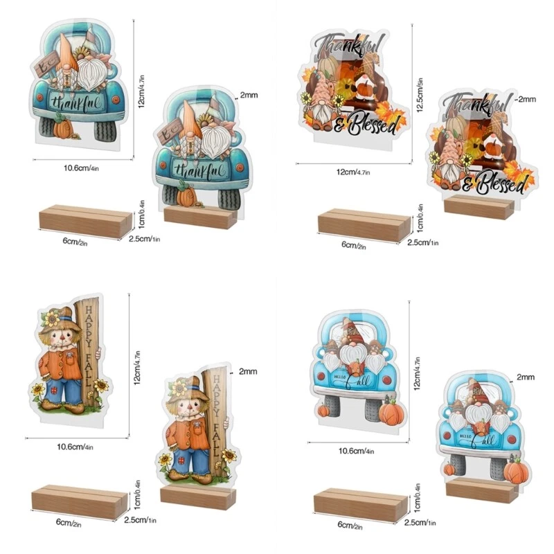 Features: Elevating your fall decor with these thanksgiving acrylic ornaments! Featuring pumpkins, turkeys, and gnomes, these durable decorations will enhances any space. Make from quality acrylic material, single sided printing, these thanksgiving table centerpieces signs are reliable and safe to use, easy to clean. With their smooth surfaces and stable bases, they will stand firmly on any table, bringing a warm and inviting atmospheres to your space. Whether you're decorating your home, office, or commercial space, these decorations will create a festive atmospheres that everyone can enjoy. Place on your table or cabinet to instantly transform any space into a festive gathering perfect for Thanksgiving parties, shop displays, or office decorations. Their vibrant colors make a versatile decoration for any occasion, whether it is Thanksgiving, fall themed parties, or simply adding touches of warmth to your everyday decor. Specifications: Material: Acrylic, Type: 2, 3, 4 (optional) base: Approx. 6x2.5x1cm/2x1x0.4inch Size: Approx. 10.6x12cm/4.0x4.7inch, 12x12.5cm/4.7x5inch Package Includes: Set Thanksgiving Acrylic Tabletop Ornament note: Please allow 1-2cm errors due to manual measurement. Please allow for slight color differences due to different display resolution.