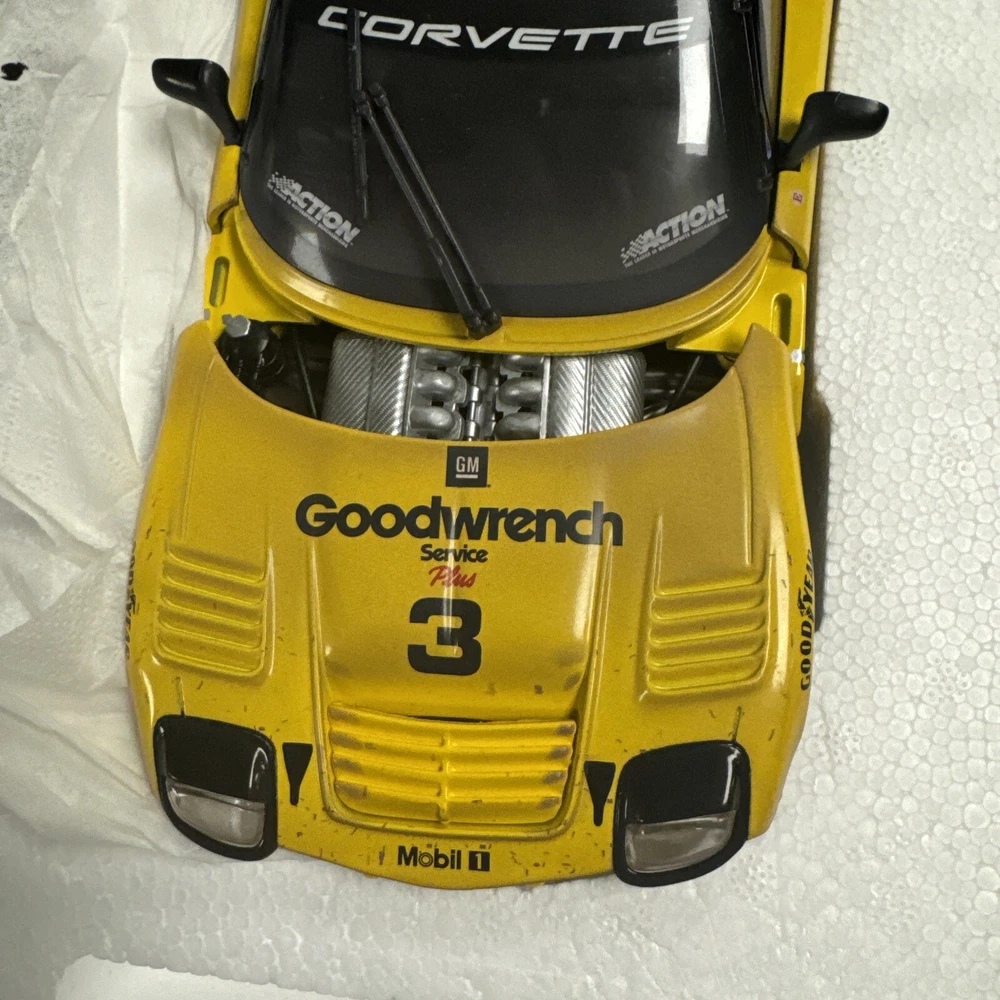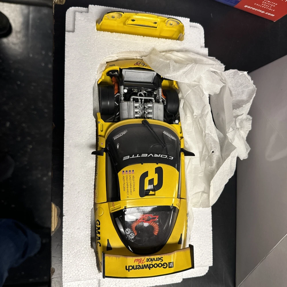 Own a piece of racing history with this limited edition 1:18 diecast model of the iconic Chevrolet Corvette C5-R. This yellow grand touring race car is inspired by the legendary car driven by Dale Earnhardt in the 2001 season. The model features intricate details and comes with a protective box, making it a perfect addition to any collection. Celebrate the glory of Americana with this Action Racing Collectables series model. The corvette is beautifully crafted and captures the essence of the legendary car. This model is a must-have for any diecast car collector or fan of the iconic Chevrolet Corvette.